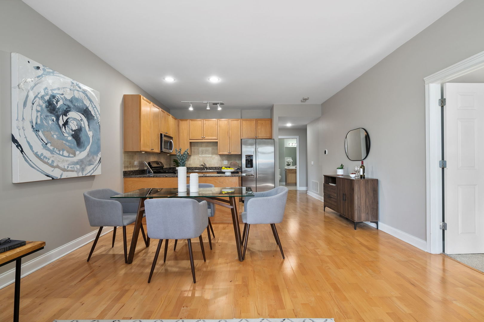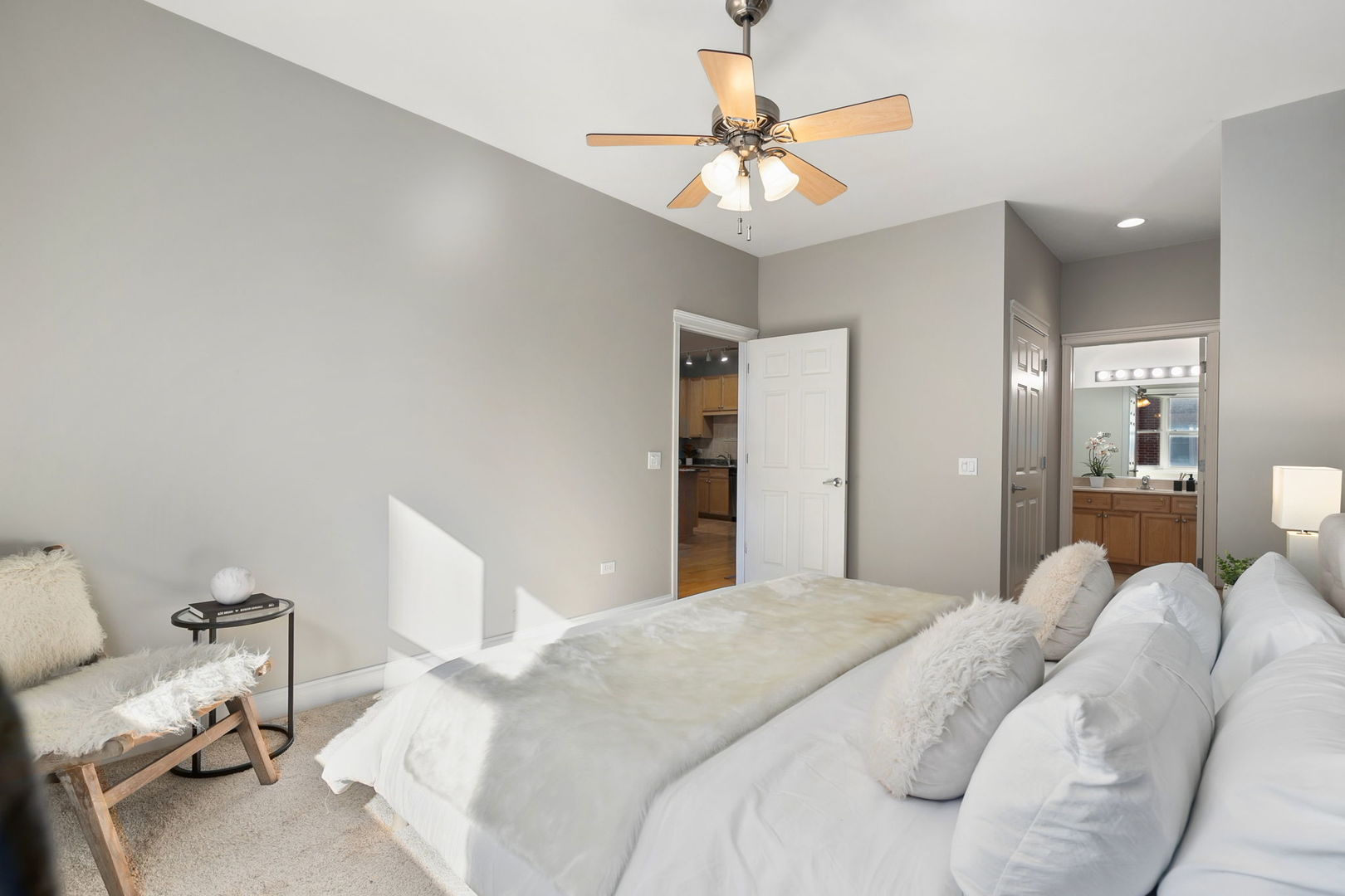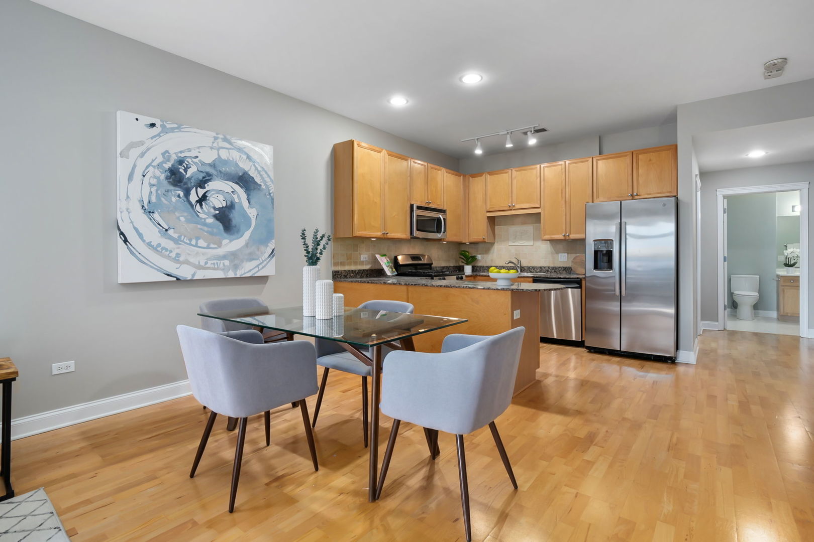 Welcome home to this sun-drenched 2 bed, 2 bath condo in one of Bucktown’s most desirable boutique elevator buildings. Enter through the formal foyer with large closet that enters into to the spacious open living concept that leads to a great sized balcony that overlooks the 606 which is perfect for entertaining. The U-shaped kitchen features stainless steel appliances, granite counter tops, and stone backsplash. The kitchen opens up to the living space that allows for enough room for full dining table, large sectional, and is highlighted with a gas fireplace. This corner unit features desirable split floor-plan with a huge master suite that includes a walk-in closet and nice size en-suite bathroom. The second bedroom is a great size that allows tons of flexibility. Secured gated parking space for $15,000 and additional storage for added connivence. The professionally managed association is well run with beautiful landscaping, and a shared private courtyard space. Enjoy the unbeatable location just steps from Bucktown’s best shopping, dining, coffee shops, and nightlife, two blocks to the Blue Line and easy access to the 606 Trail at Milwaukee Ave.