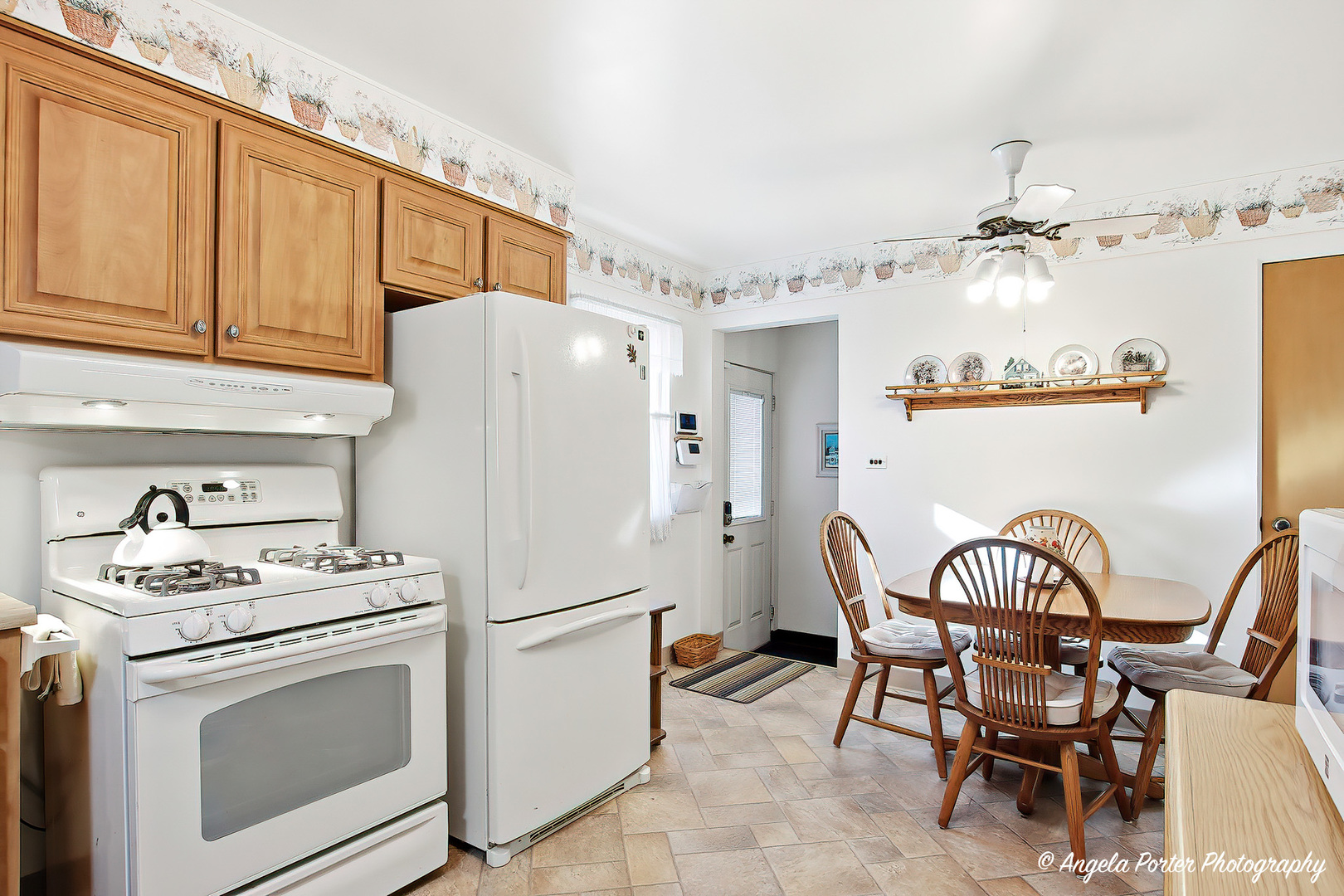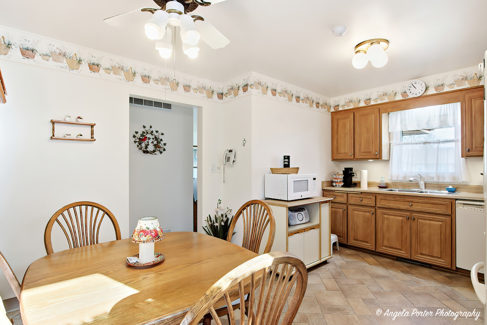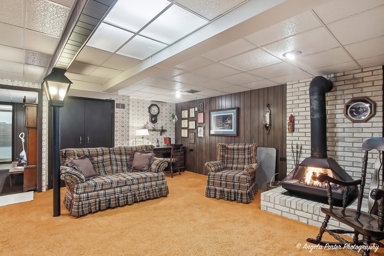 Super clean, well-maintained and keeping with the times ranch home in nice northside location! Good curb appeal here, concrete drive, covered entry . . . Open the front door to a large living room, convenient coat closet to your right. Brand new front bay window Dec. 2025 lets in all the sunshine! Around the corner you will find another bright room – the sharp eat-in kitchen with quality kitchen cabinets, all appliances, plenty of room for table, pantry closet – shows very well. There are 3 bedrooms on the main floor, good closet space (3d BR now used as some storage/sorting space prior to Estate sale). Per seller, hardwood under all carpet main floor. Neutral full bath here. The basement is finished with fun family room, large 18 x 16, with free-standing gas fireplace, wet bar, room for desk/office area – many memories made here! Den/office could be 4th BR IF escape window installed. 2nd full bath, plus work room, laundry room w/slop sink – all extras for this home! Outside you will find a 22 x 24 (2 car) detached garage, large deck for summer fun, shed to the side – imagine your warm weather fun entertaining here. See this one soon!
