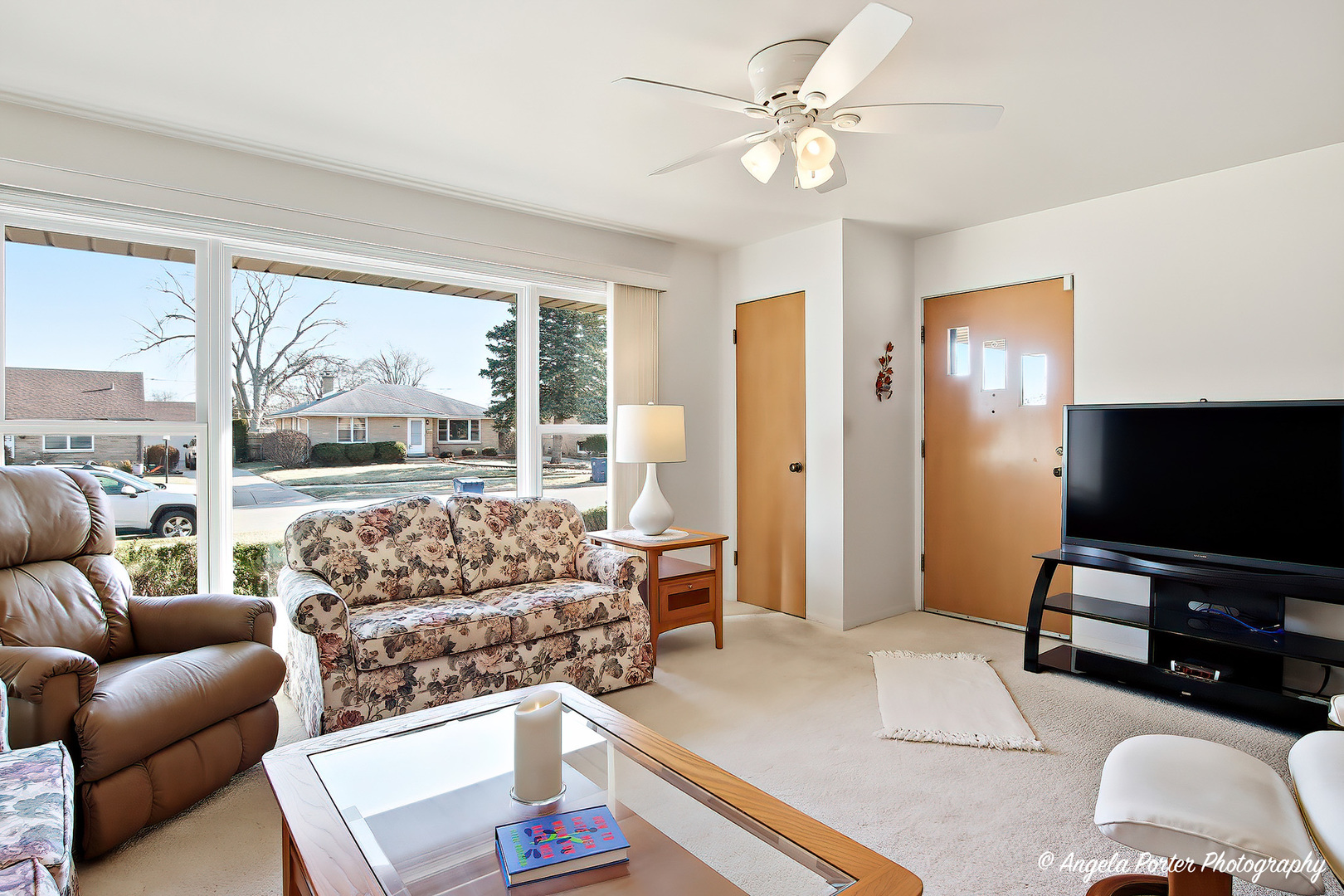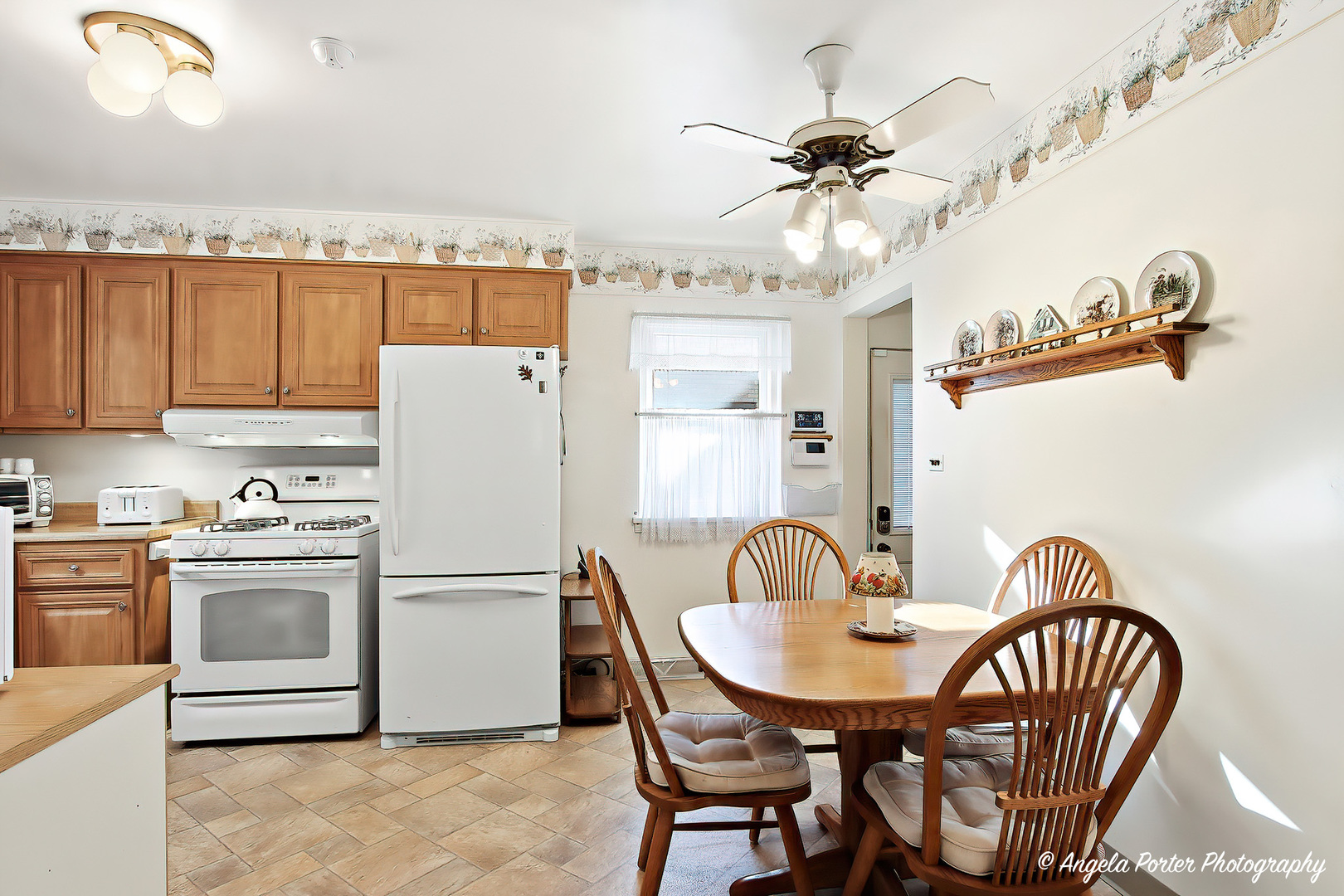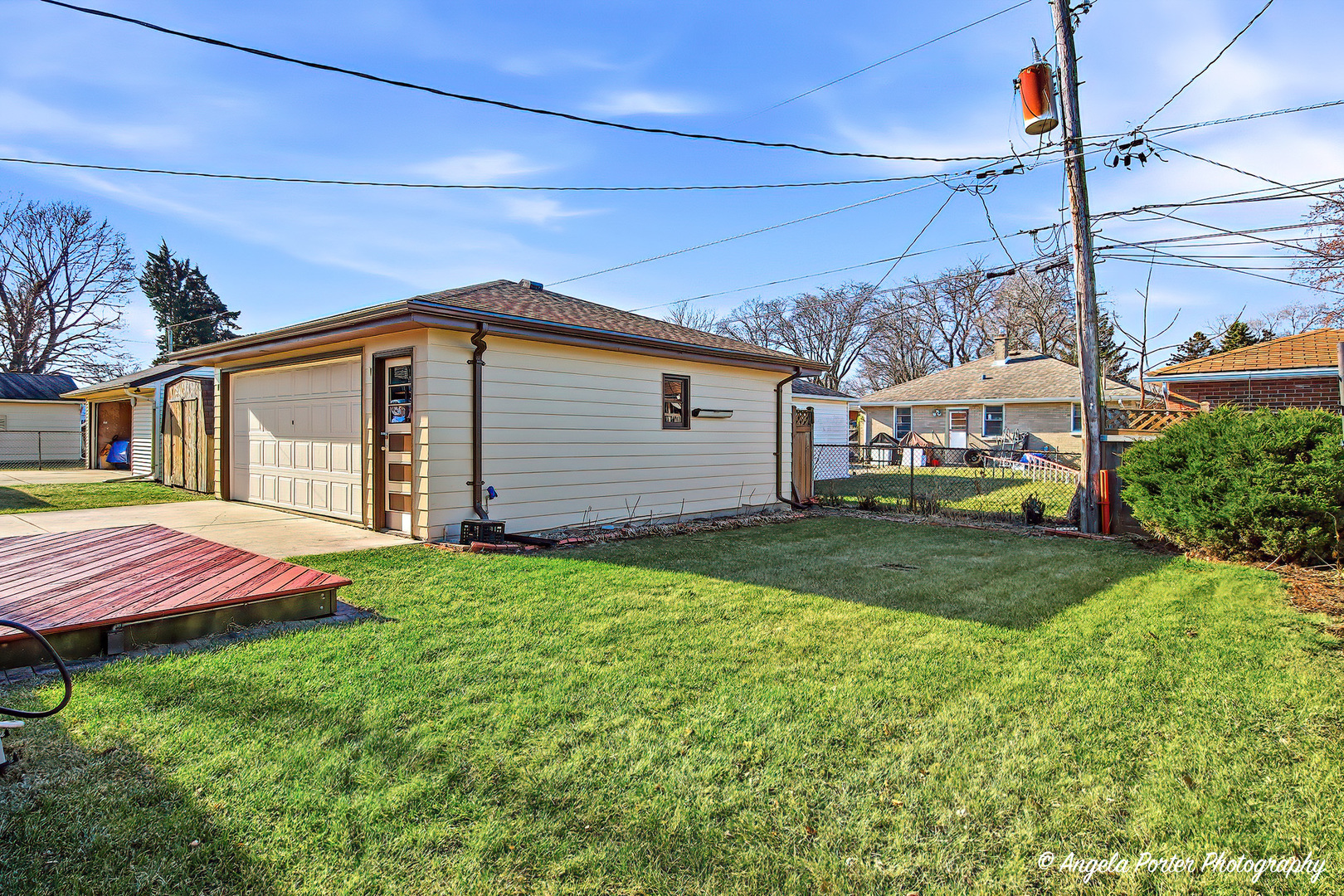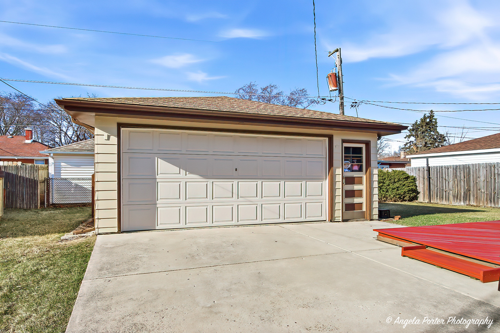 Super clean, well-maintained and keeping with the times ranch home in nice northside location! Good curb appeal here, concrete drive, covered entry . . . Open the front door to a large living room, convenient coat closet to your right. Brand new front bay window Dec. 2025 lets in all the sunshine! Around the corner you will find another bright room – the sharp eat-in kitchen with quality kitchen cabinets, all appliances, plenty of room for table, pantry closet – shows very well. There are 3 bedrooms on the main floor, good closet space (3d BR now used as some storage/sorting space prior to Estate sale). Per seller, hardwood under all carpet main floor. Neutral full bath here. The basement is finished with fun family room, large 18 x 16, with free-standing gas fireplace, wet bar, room for desk/office area – many memories made here! Den/office could be 4th BR IF escape window installed. 2nd full bath, plus work room, laundry room w/slop sink – all extras for this home! Outside you will find a 22 x 24 (2 car) detached garage, large deck for summer fun, shed to the side – imagine your warm weather fun entertaining here. See this one soon!