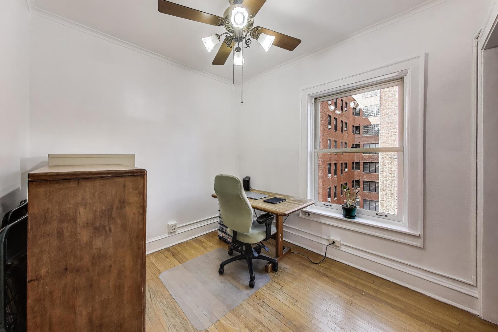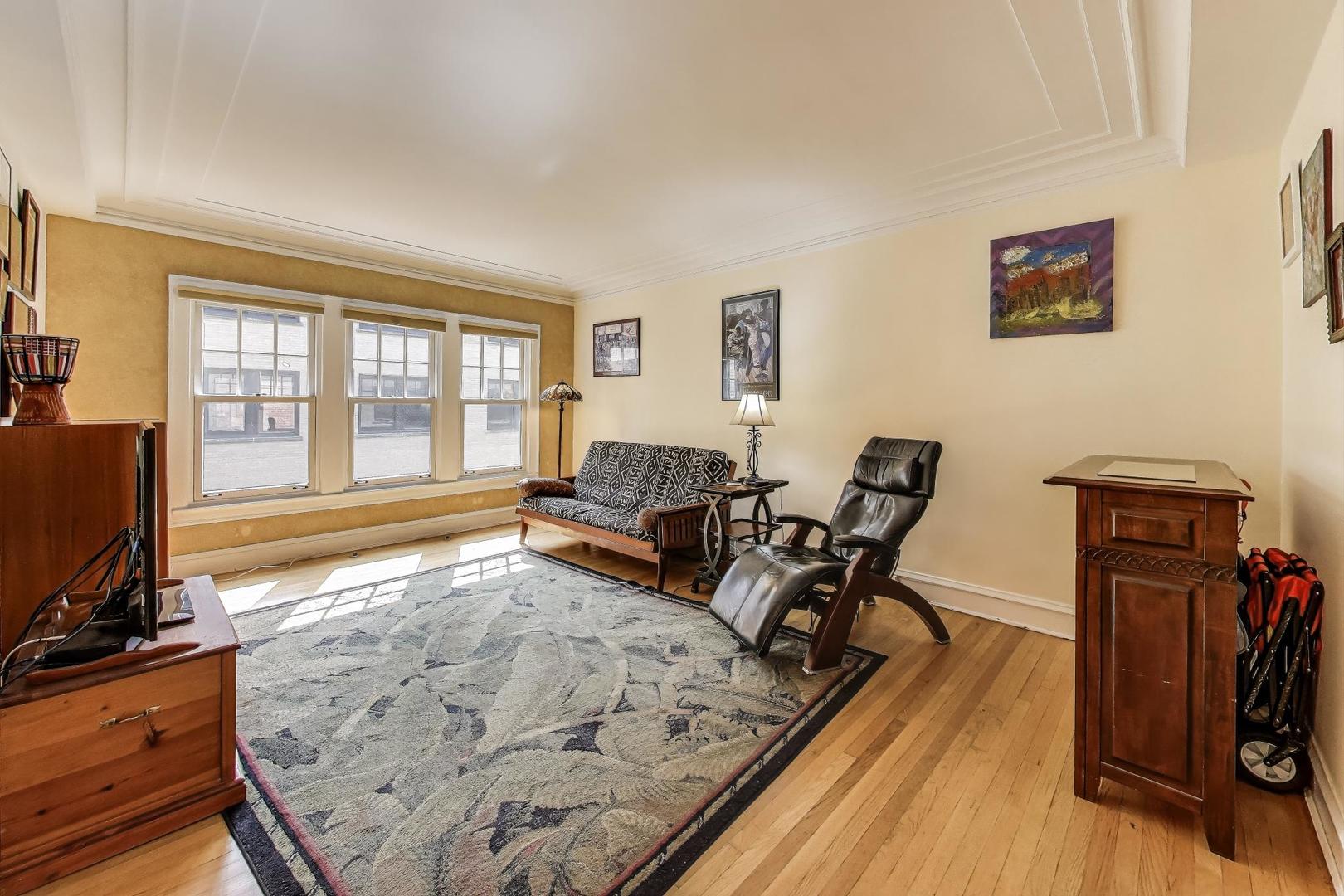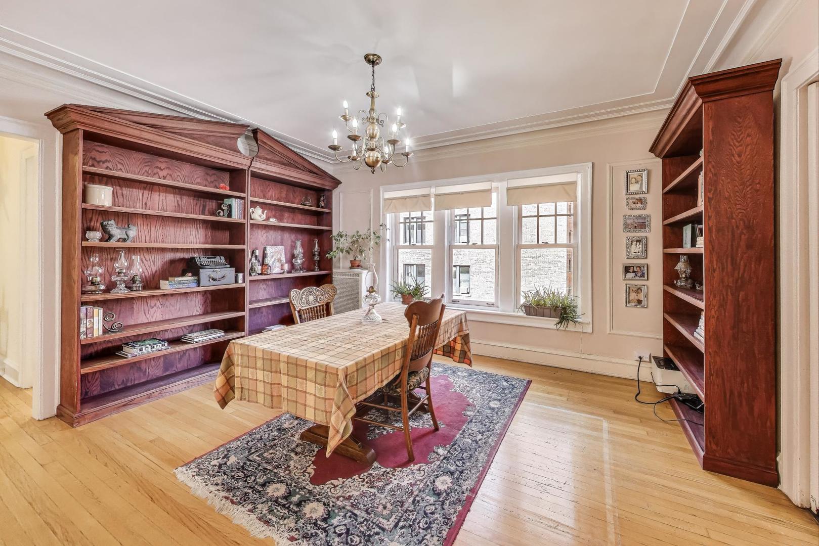 This quaint courtyard, elevator building sits in the heart of highly desirable East Lincoln Park. Just steps away from the Lake, North Pond, the Lincoln Park Zoo and the Green City Farmer’s Market, this 2 bed, 1 bath home is a dream! Commonwealth is an exclusive and beautiful tree-lined street with mature trees and classic Chicago courtyard buildings lining the street. This 4th floor home features incredibly spacious and bright rooms with the morning sun shining in from the east-facing windows in the dining room, kitchen and second bedroom, while the afternoon glow streams into the living room and spacious primary bedroom. Just two units per floor in this tier allow for boutique living where you know your neighbors, yet still live in the heart of one of our city’s most beloved neighborhoods. When you enter this home, you are greeted by a foyer with coat closet. From there, you enter the spacious living room with three large windows and a layout that will allow for any furniture setup. This flows in a large formal dining room with built-in bookshelves. From there stems a split floor plan with the kitchen, second bedroom and laundry room to the south, and the bathroom and gracious primary bedroom to the north. Beautiful vintage features including crown molding with ceiling details, original trim and hardwood floors throughout. All unit windows are newer, replaced approximately 10 years ago. In-unit laundry. Hardwood floors throughout. Low HOA fees (very reasonable for LP!) include heat, which brings significant cost savings during Chicago’s cold winters. And thanks to cooling lake breezes and ample windows, this home stays very comfortable during the summer months. SpacePak can be added, but this unit comes with two AC window units to use as needed. Lincoln Elementary school and Lincoln Park high school district. A truly unbeatable Lincoln Park Location: easy 10-minute walk to the lakefront path and Lincoln Park Zoo, with iconic local favorites like the Lincoln Park Conservatory and Peggy Notebaert Nature Museum less than two blocks away. Top-tier local dining favorites such as North Pond, Mon Ami Gabi, S.K.Y. and many other cafes and restaurants are an easy walk. Boutique shopping, grocery stores, and parks are all nearby as well. Quick downtown access via express CTA bus on Lake Shore Drive. Street permit parking available, with leased garage options nearby. Building is professionally managed with solid reserves and a live-in engineer, plus storage, bike room, and additional coin laundry. New roof coming November 2025, seller will cover in full. This home offers the perfect mix of classic Chicago architecture, historic details, financial value, and an enviable Lincoln Park lifestyle.