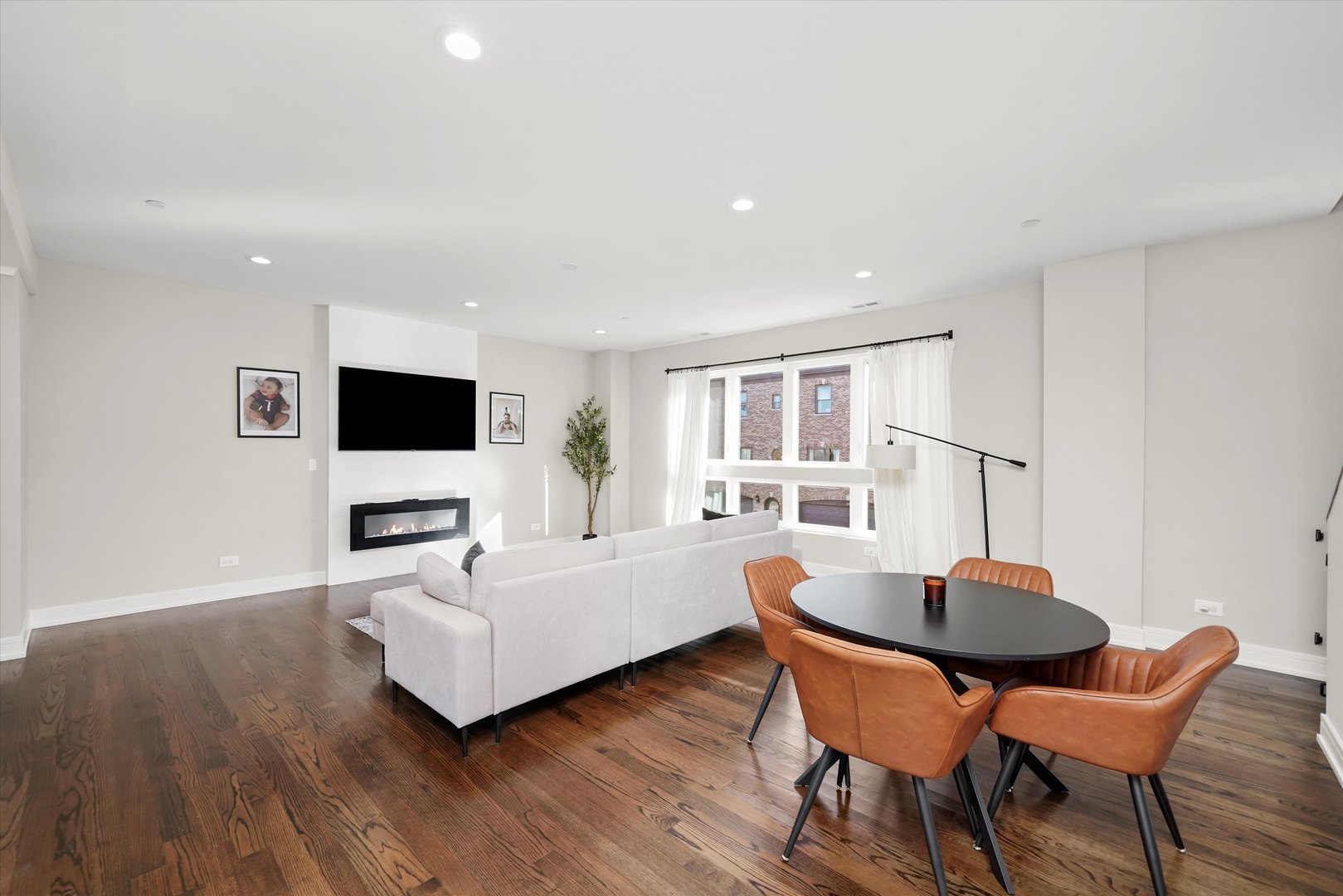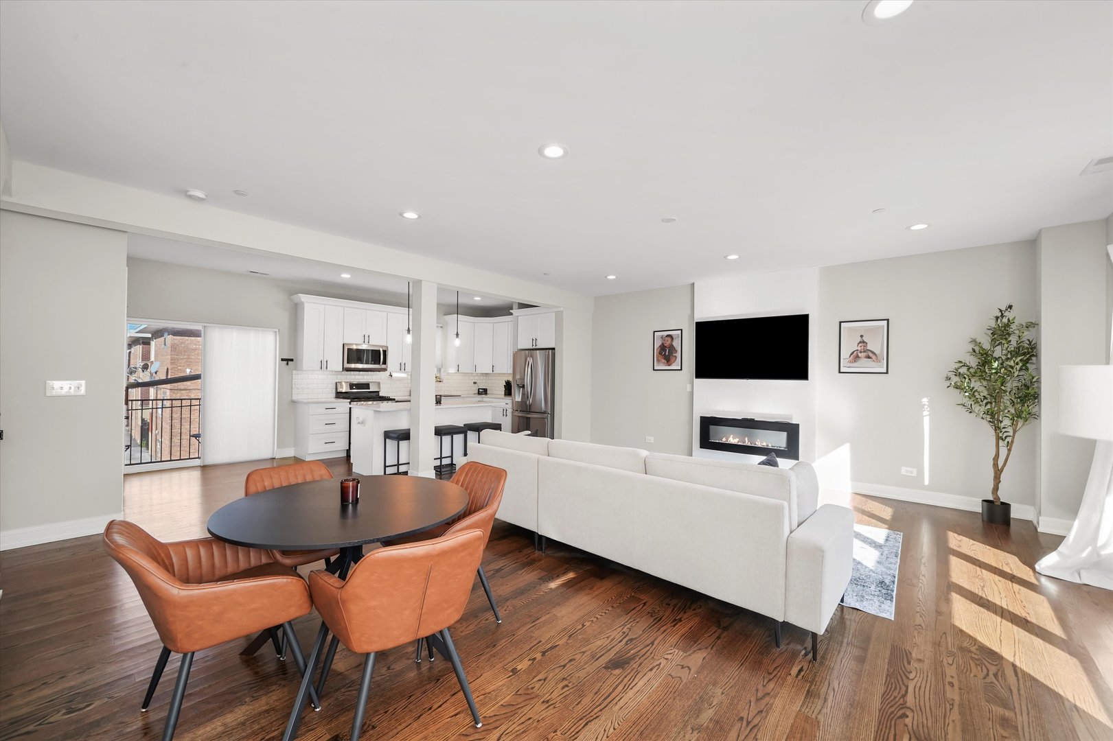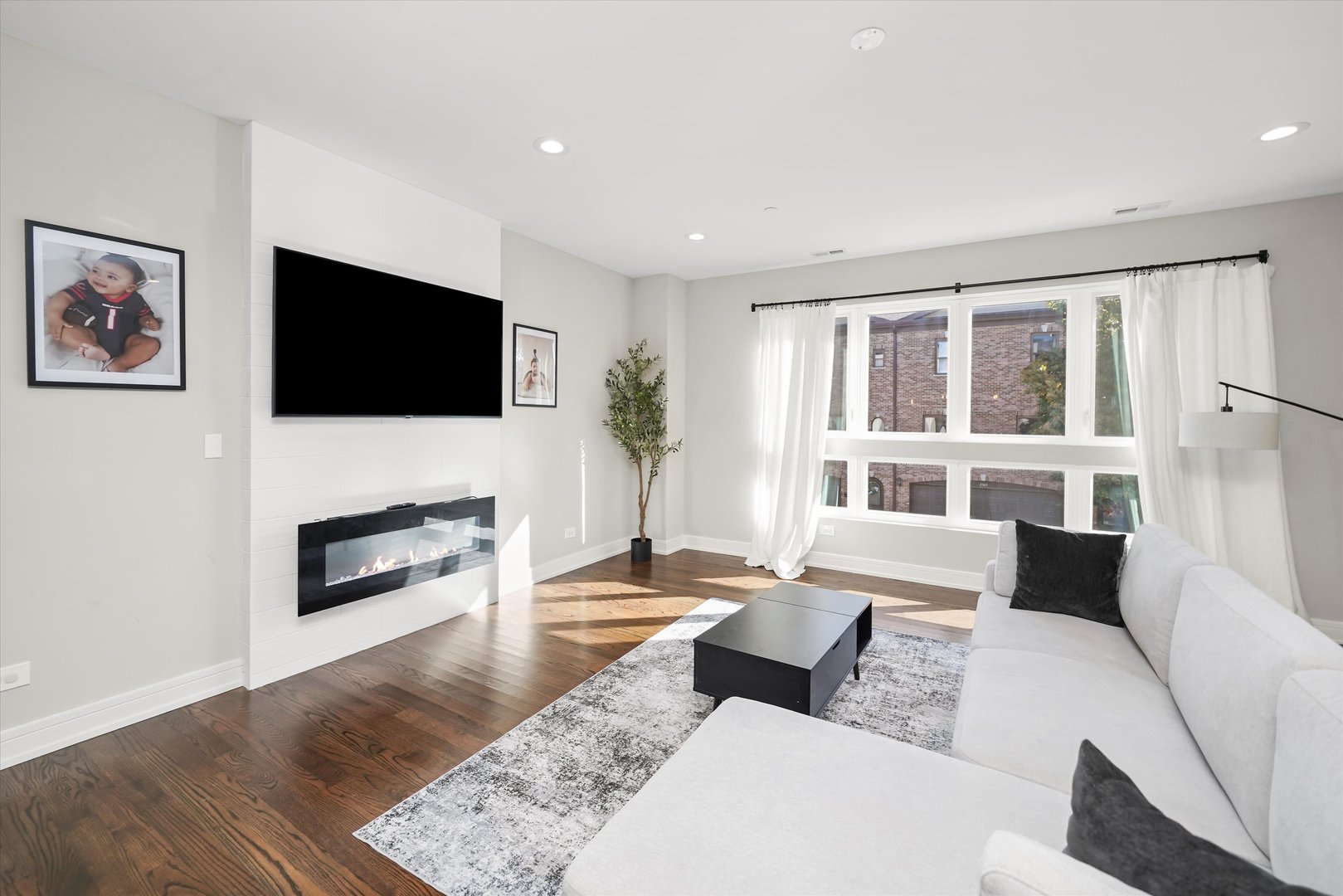 Modern Luxury in the Heart of Elmwood Park Sleek and sophisticated, this stunning home newly built in 2020. Featuring 3 bedrooms, 3.5 baths, and an attached 2-car garage with an electric vehicle charger and extra parking pad, this home perfectly blends modern design with everyday functionality. The smart and versatile layout begins with a first floor bedroom and full bath ideal for guests, a home office, or a private retreat. The second level impresses with an open concept living, dining, and kitchen area centered around a stylish 50″ electric fireplace with elegant tile surround. The sleek kitchen features Shaker cabinetry, quartz countertops, and an LG appliance package. A convenient half bath and spacious deck off the main living area make this space perfect for entertaining. Upstairs, the primary suite is a true retreat featuring a spa-like bath with an oversized rain and body-spray shower with bench, double vanity, and luxury finishes. An additional bedroom and full bath with a jetted soaking tub complete this level. High-end finishes are found throughout, including rich stained oak hardwood floors, solid-core doors, a tankless water heater, high-efficiency HVAC, and a built-in fire sprinkler system for safety and peace of mind. Additional highlights include existing weights and gym equipment that can stay. The HOA covers common insurance, landscaping, and snow removal making this home truly move-in ready. Schedule your appointment today!