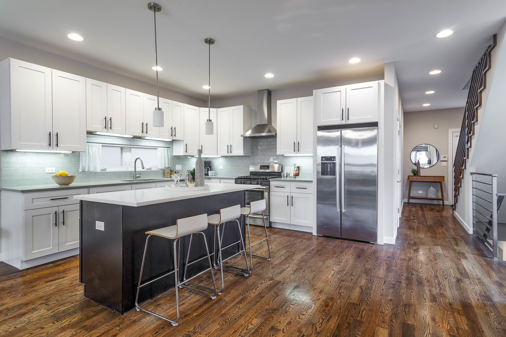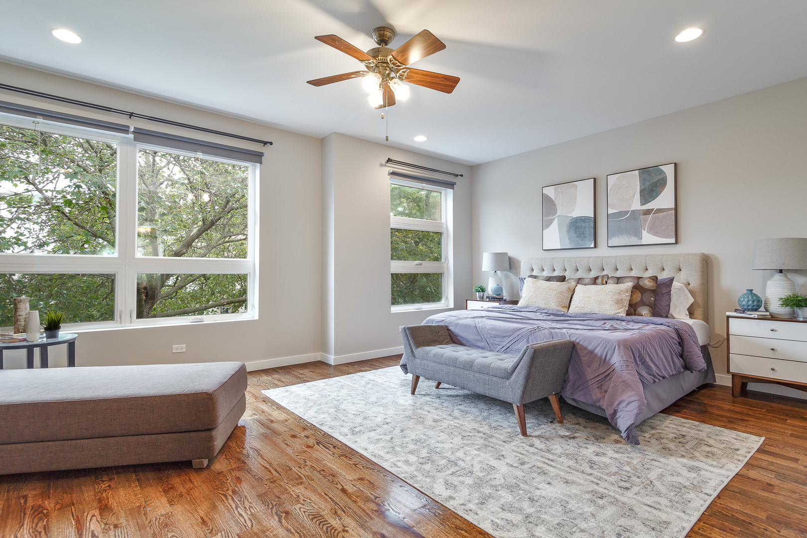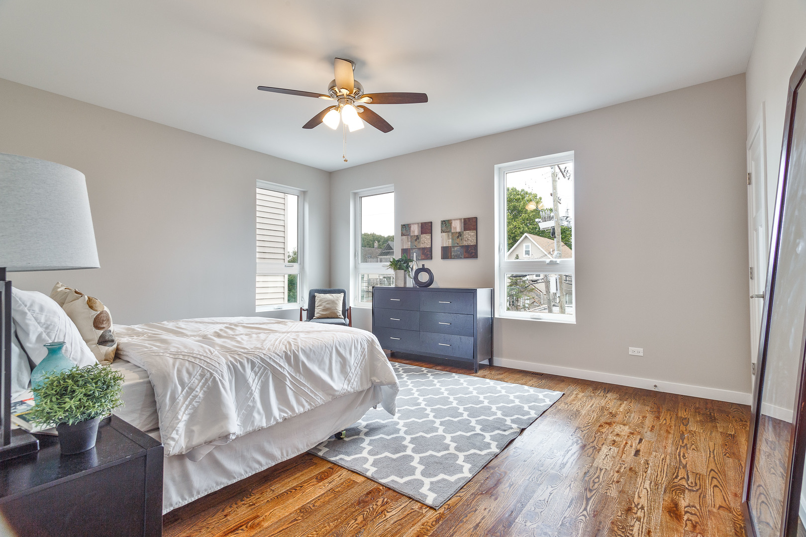 Bright and spacious 4 bed, 3.1 bath single family home on an extra-wide 30′ lot in Logan Square! Contemporary facade, fenced in corner lot, and fresh landscaping. Expansive, open concept main level floor plan with hardwood flooring, great natural light, and on trend kitchen with white shaker cabinetry, quartz countertops, island with bar seating, and stainless Bosch appliances. Main level bedroom and full bath. Upper level primary suite with private bath featuring dual sinks and frameless glass shower + WIC with custom organizers. Two additional bedrooms, full bath, and laundry with washer/dryer complete the upper level. Finished lower level features new carpeting, nice ceiling heights, huge recreation room, half bath, utilities, and second laundry with washer/dryer. Fresh paint throughout! Enclosed backyard with large paver patio and detached two-car garage. Prime Logan Square location with easy access to all your favorite restaurants, shopping, night life, public transportation, and more. Just over 5 mins to the Healy metra!