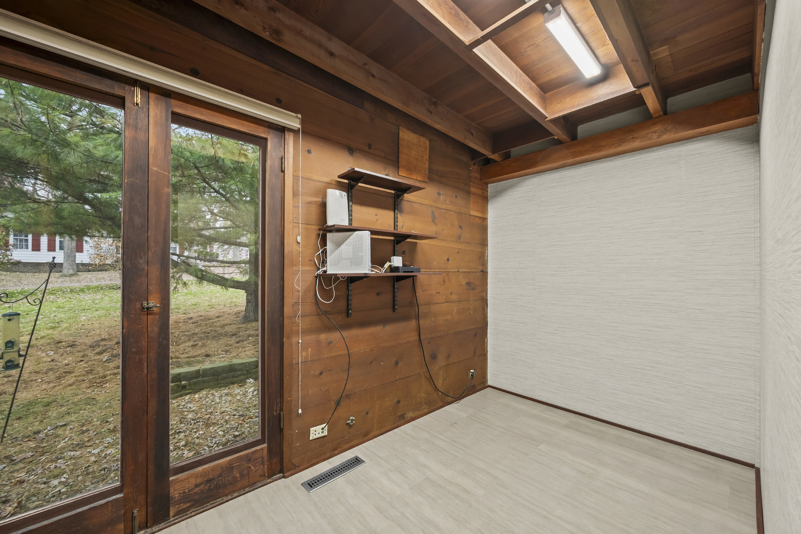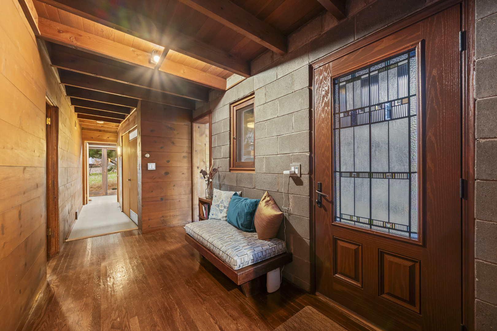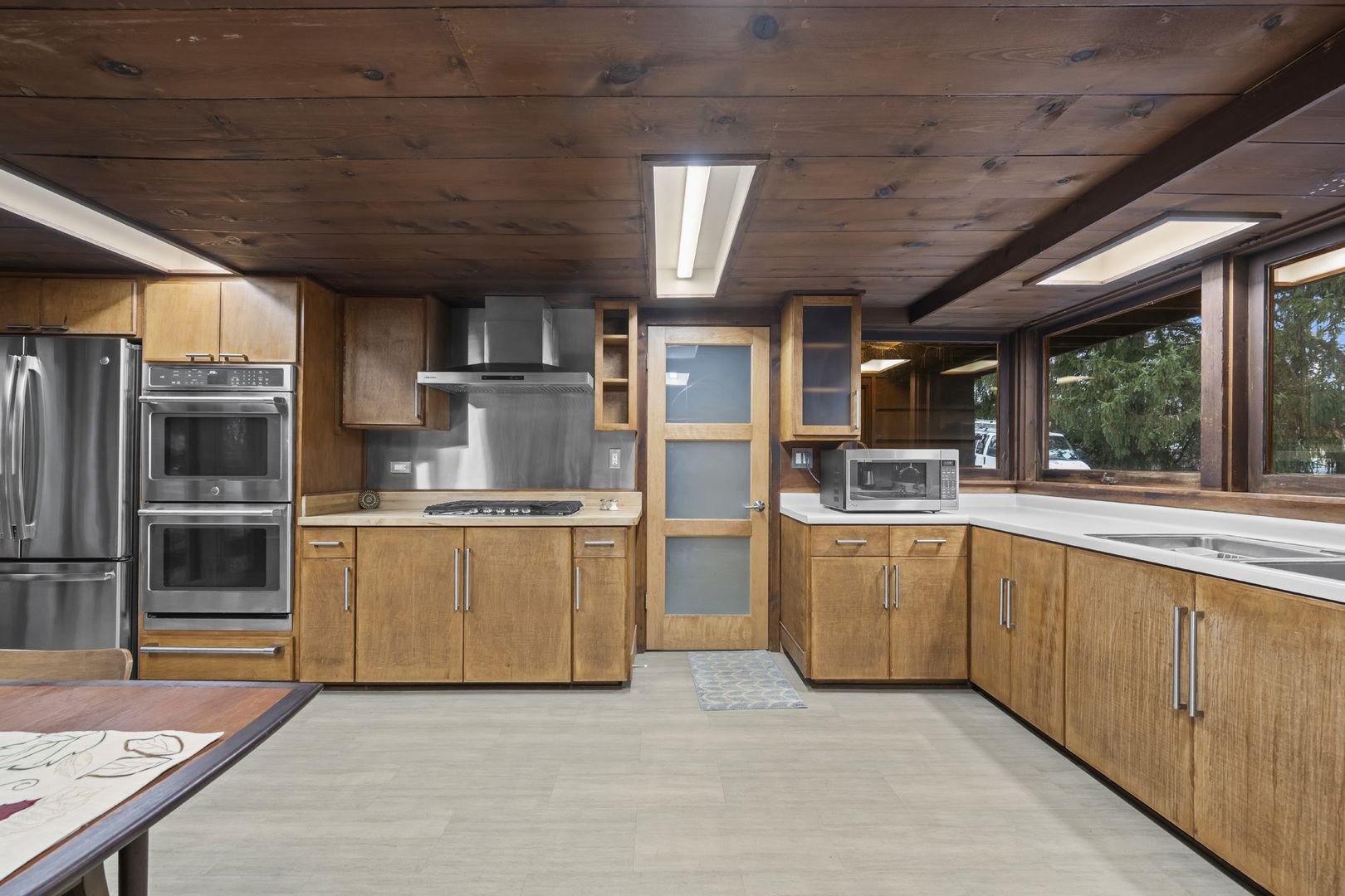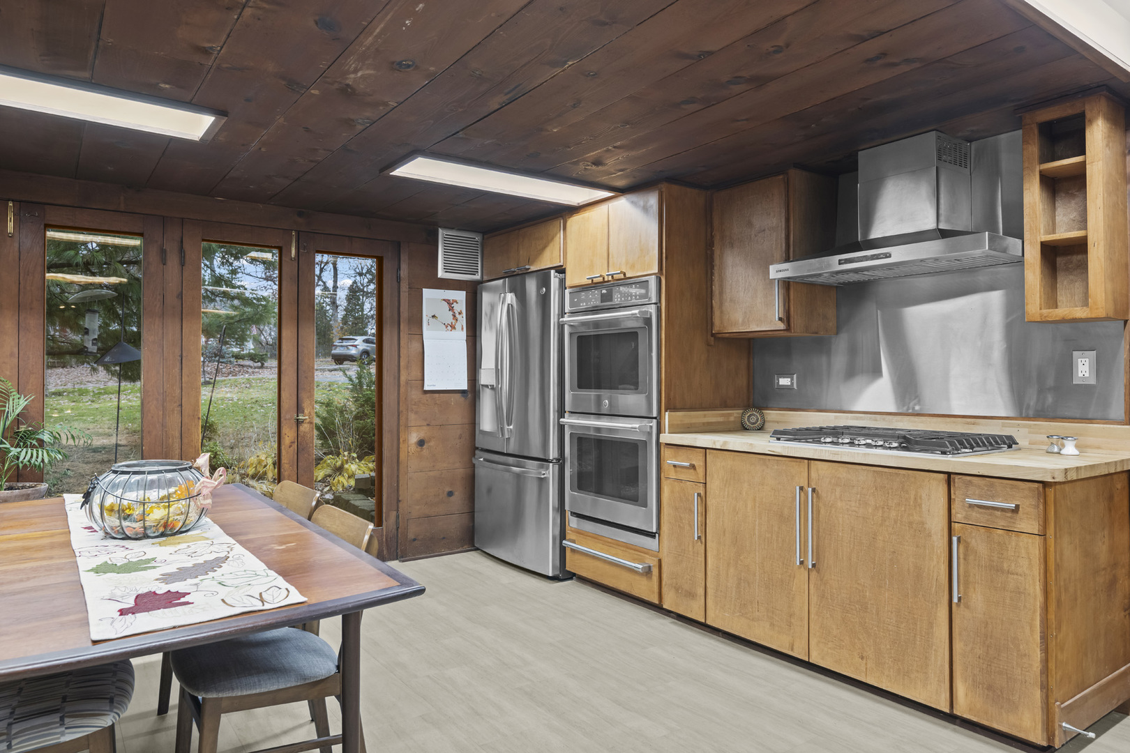 First time on the market! This fantastic 1953 Mid-Century Modern ranch designed by Edward Humrich has been in the same family since it was built! Sitting on a gorgeous lot of almost an acre, and backing to the Bonnie Brook Golf Course, this MCM beauty will delight with it’s classic Midwest mid-century features like walls of windows, wood paneled walls, plank & beam ceilings, modular block fireplace and more. Fantastic living room with fireplace and great modernist details will include the 2 sofas and 5 coordinating tables. The home was expanded in the past with the addition of a new two-car garage in the exact same style as the rest of the house, with the former carport enclosed and converted into a large kitchen & dining area that features all stainless appliances as well as heated floors and additional storage. In addition to the three bedrooms (all with hardwood floors) and two bathrooms you’ll find a laundry area, large storage closet, a small office and a screened-in porch on the south side of the house. Outside, you’ll love the huge lot and the fantastic 40,000 gallon heated pool – 9 feet at the deepest end, and complete with diving board. The lot slopes gently toward the Bonnie Brook Golf Course, and enjoys privacy from numerous mature trees. Partial basement has a 1/2 bath that’s also plumbed for a shower, and offers great storage space and access to the outside. Mid-Century Modern homes have increased significantly in value over the past 5 years, so this home represents a fantastic opportunity to get into a modern home designed by a notable architect for a great price and in a beautiful setting! New AC this year. Half bath in basement refreshed in 2025 as well. Two main level baths remodeled in 2021. Furnace replaced in 2017. Washer & Dryer replaced in 2018. Dishwasher replaced in 2020. Modbit roof redone in 2009 with chimney flashing upgraded in 2022. Garage door opener replaced 2025.