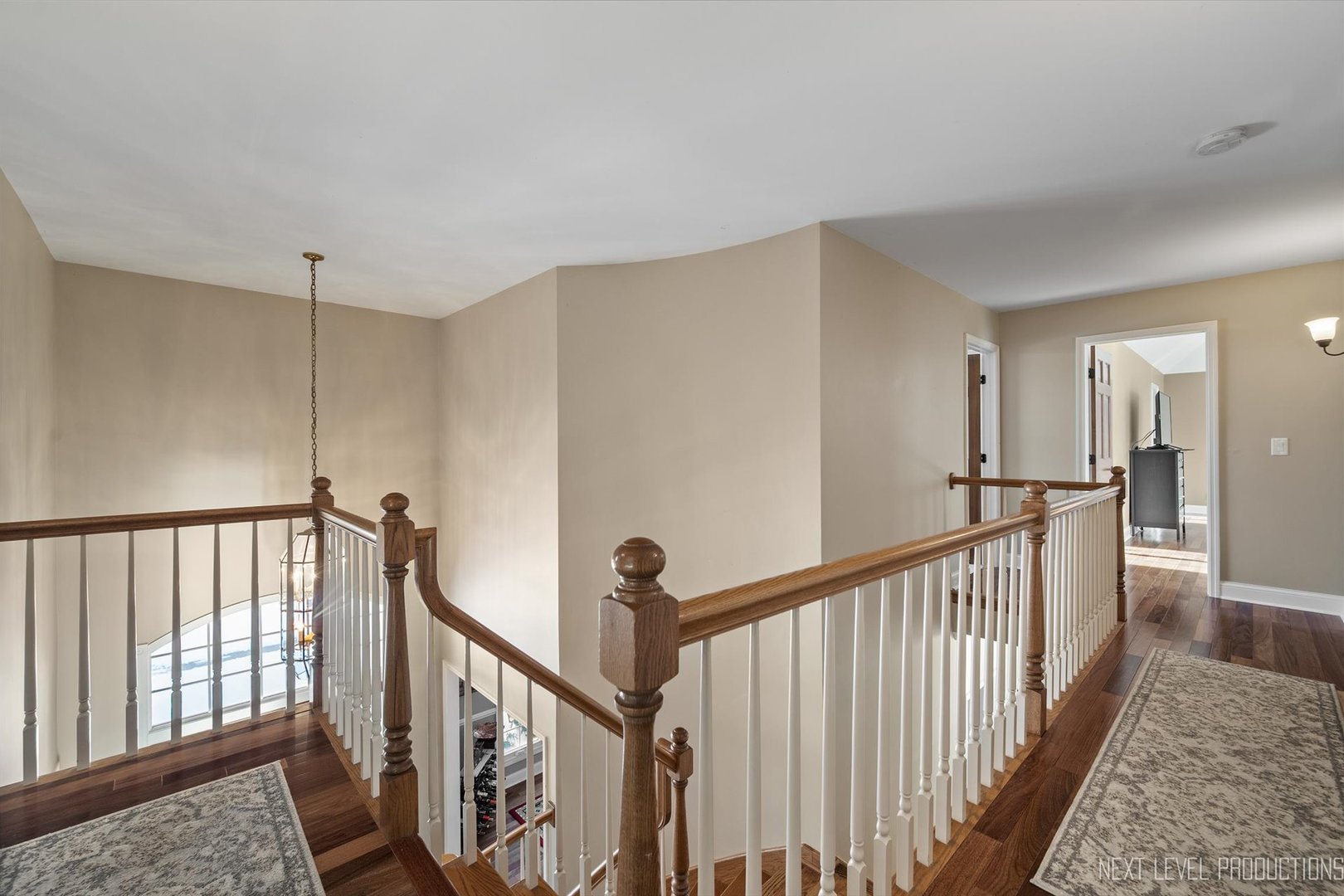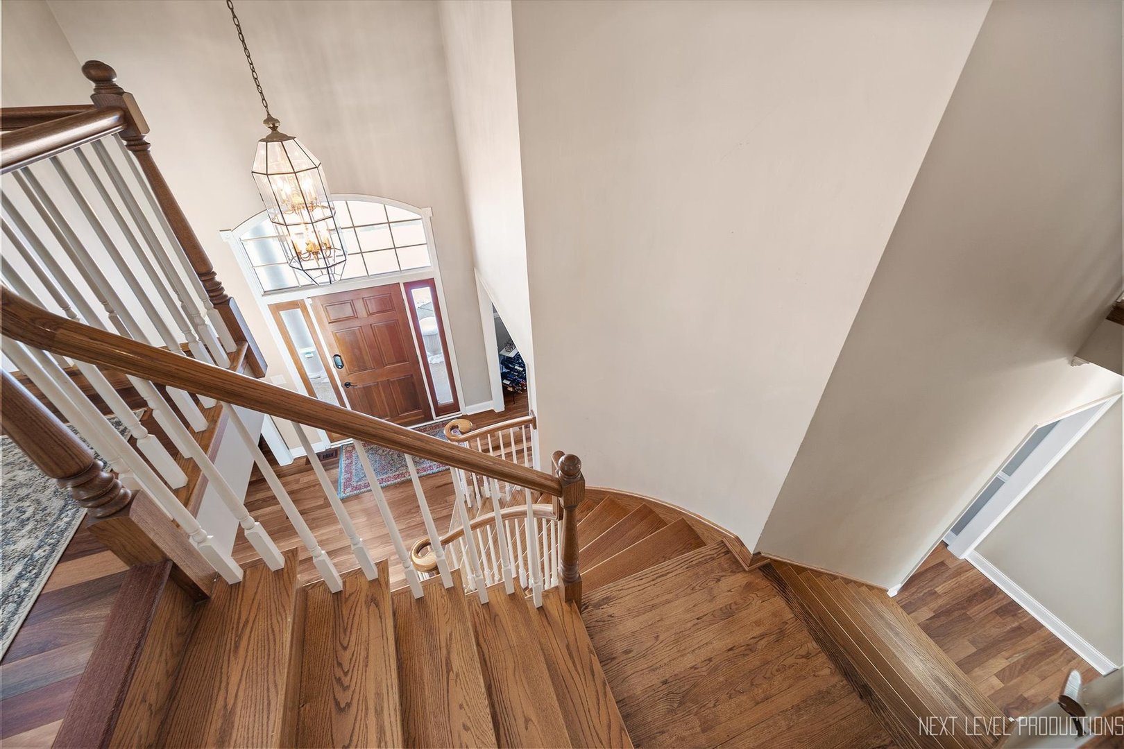 Beautifully updated custom built 3800 square foot home is ready for its next family! Welcoming two story foyer with curved split staircase & Brazilian cherry hardwood floors! Formal living & dining rooms with crown molding. Tastefully remodeled sunlit eat-in kitchen with all JennAir SS appliances, breakfast bar island, quartz counters & abundant cabinets open to the family room with attractive masonry fireplace. 1st floor den/office/bedroom#5 near full bath could easily be an in-law suite. First floor laundry with cabinets, utility sink & exterior door. Master bedroom suite with tray ceiling has 22×9 walk-in closet & 15×14 turret sitting room. Newly renovated luxury vaulted bathroom has heated floors, heated towel racks, double sinks, soaking tub & big walk-in shower with full body spray. Generous bedroom #2 with private brand new full bath plus 2 more bedrooms & an additional hall bath complete the second floor. Spacious maintenance free trex deck for outdoor entertaining. Huge unfinished basement and 3 car garage. So many new quality amenities & upgrades including: Master bath ’24, kitchen ’20, Roof ’22, Sierra Pacific windows ’19, dual HVAC & humidifier ’23, Hardie board exterior ’18, Brazilian cherry hardwood floors 1st floor & master ’20, H2O heater ’25, softener ’23. Great location close to STC East HS, Wredling middle school, parks, shopping, dining, bike trails, Fox River, award winning park district & all that downtown St. Charles has to offer! Move right in and enjoy everything this fantastic home and neighborhood has to offer!