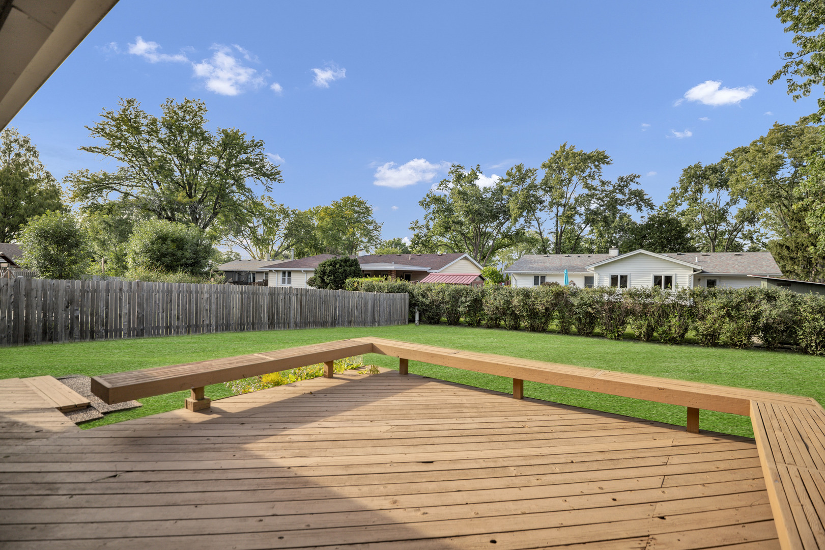 Welcome home to this charming all-brick ranch in the heart of Elk Grove Village, just steps from Clearmont Elementary School and Fairchild Park! This well-maintained 3-bedroom, 1-bath home is truly move-in ready, offering comfortable living with thoughtful updates throughout. Perfect for first-time buyers or those looking to downsize, major improvements include a newer roof (2017), furnace (2019), central air (approx. 2019), and water heater (2022)-providing peace of mind for years to come. Inside, you’ll love the light and bright living room with a large picture window, a spacious dining area, and a functional kitchen with plenty of cabinet space. The laundry room is conveniently located just off the kitchen. Three comfortable bedrooms and a full bath complete the floor plan. Step outside to enjoy the private, beautifully landscaped and professionally maintained backyard featuring a large deck ideal for outdoor entertaining or simply relaxing. All this including the highly rated Elk Grove Schools District and easy access to Busse Woods, Woodfield mall, O’Hare Airport, expressways and so much more!