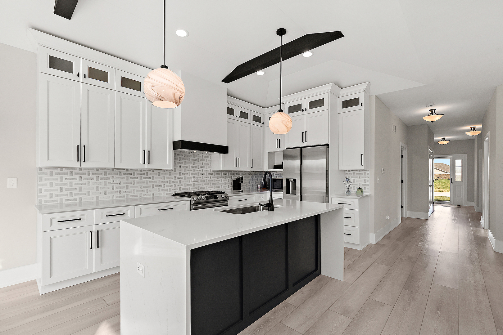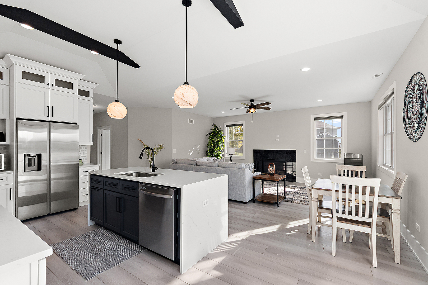 Welcome to Sunset Lakes Townhomes in beautiful Manhattan. This like-new, two-year-old townhome offers a perfect balance of modern luxury, thoughtful design, and peaceful surroundings. Situated on a quiet dead-end street, this residence features two bedrooms & DEN (potential 3rd bedroom), two full bathrooms, and an attached finished two-car garage, all crafted with attention to detail and high-end finishes throughout. Step inside and experience a bright, open layout filled with natural light and neutral colors that create a warm and welcoming atmosphere. The foyer greets you with two closets-one ideal for coats and the other perfect for linens or extra storage. Two bedrooms and a full hall bath are conveniently located near the entry, offering flexible options for guests, a den, home office, or a hobby room. The bath includes upgraded finishes and a tub-and-shower combination. Just a few steps away, you’ll find the main-level laundry room with a utility sink and direct access to the garage for everyday convenience. The heart of the home is the open-concept living area, where the living room, dining space, and kitchen flow seamlessly together. The living room showcases a gas-burning fireplace and large windows that fill the space with natural light. The kitchen features white cabinetry, 42-inch upper cabinets, an island with a sink and breakfast bar, stainless steel appliances, marble countertops, a tile backsplash, and elegant accent beams. This combination of style and function makes it ideal for cooking, entertaining, or simply enjoying quiet evenings at home. The primary suite is designed as a true retreat, offering peace and privacy with a walk-in closet, an additional standard closet, and a luxurious en suite bathroom featuring a double vanity, soaking tub, walk-in shower, and beautiful high-end finishes. Step outside to a patio and enjoy a calming view with no neighbors directly behind you, perfect for relaxing mornings or evening gatherings. This home also includes luxury vinyl planking flooring, and an instant-heat tankless water heater with a water softener and laundry sink. The concrete patio, full exterior landscaping, and concrete driveway make outdoor maintenance easy and enjoyable. With 36-inch doorways for accessibility, this home is built for comfort today and convenience for years to come. Also, handicap accessible. The Sunset Lakes community offers a tranquil setting nestled across from the Will County Forest Preserve, providing a permanently protected natural environment that ensures privacy, serenity, and scenic open spaces. Despite the peaceful surroundings, you’ll find everything you need nearby, including grocery stores just 2.5 miles away, Downtown Manhattan and community festivals 4.7 miles away, retail along Route 30 in New Lenox just over 5 miles away, and easy commuter access to I-80 and Silver Cross Hospital within minutes. Experience the perfect blend of modern comfort, natural beauty, and small-town charm in this exceptional Manhattan townhome. Discover why Sunset Lakes is one of the area’s most sought-after communities. Don’t delay, show today!!!!!