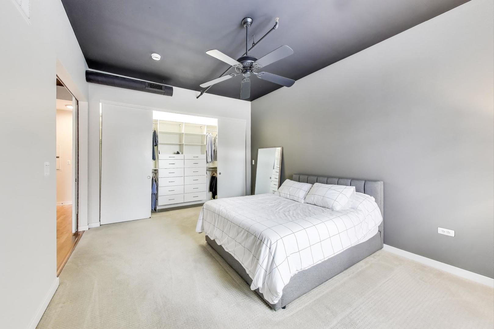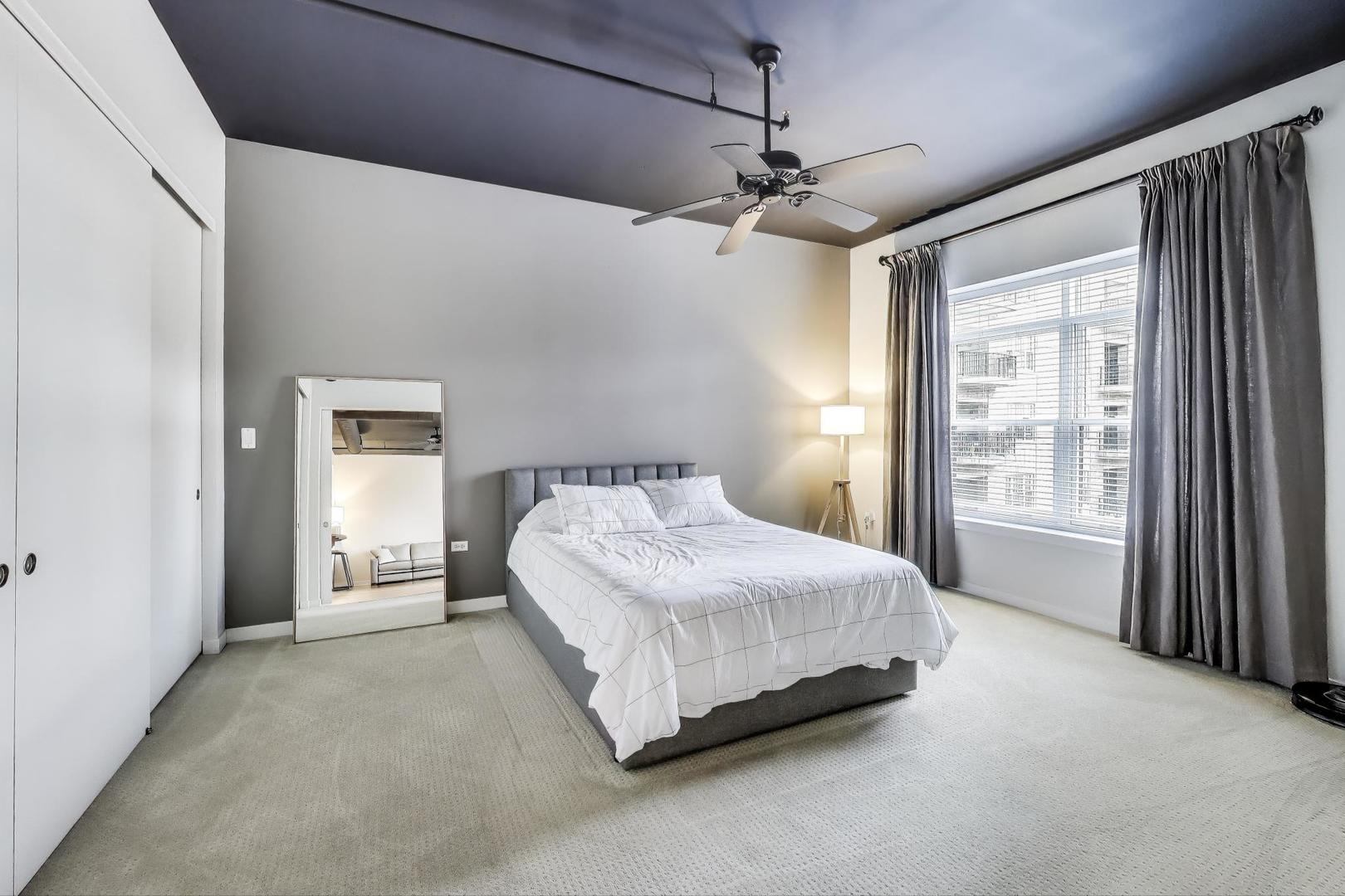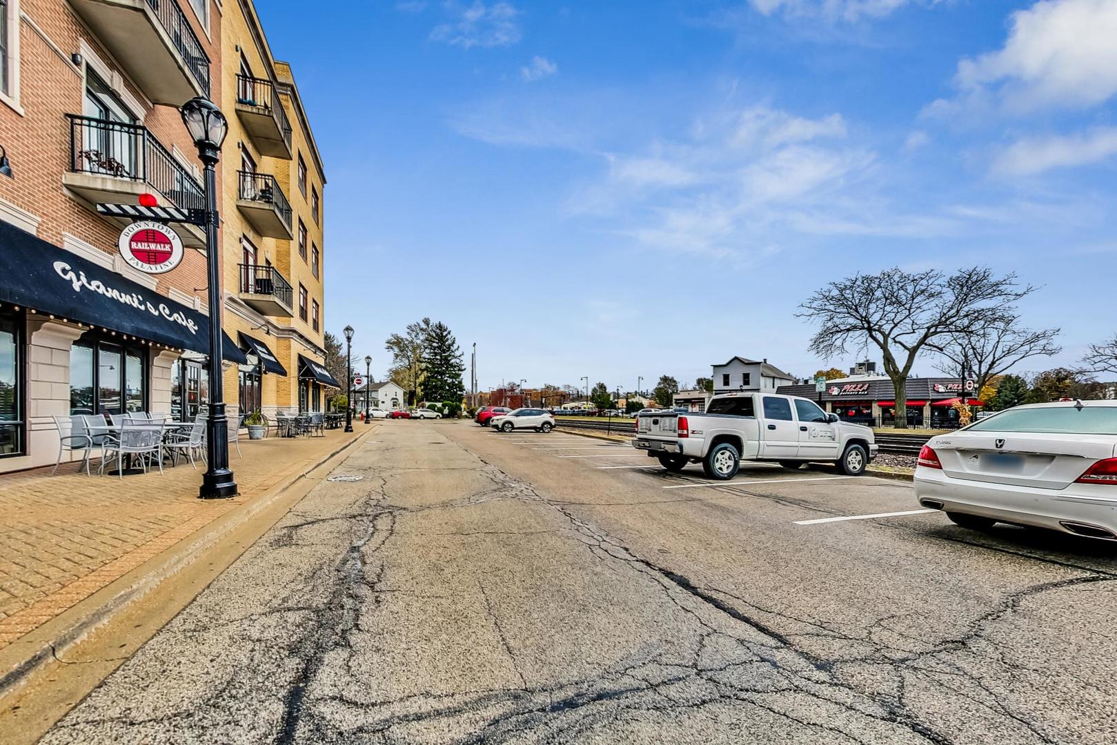 Ideally located in the heart of Downtown Palatine, this spacious top-floor loft offers unmatched convenience just steps from the Metra, restaurants, shopping, parks, and the terrific Saturday Farmer’s Market. This is the largest one-bedroom layout in the building, and one of only three units across the hall from the expansive landscaped rooftop deck with lovely views. Designed with style and comfort in mind, the open floor plan features soaring 10-foot exposed ceilings, hardwood floors in the main living area, ceiling fans, and in-floor heating along the exterior wall. The kitchen boasts 42″ cherry cabinets with crown molding, granite countertops, stainless steel appliances including a Sub-Zero refrigerator with custom panel, gas range, and accent lighting. The bathroom is beautifully appointed with a double vanity, storage towers, crown molding, and a large, tiled shower with 84″ frameless glass doors. The bedroom includes a wall of closets with California Closet organizers and plush carpeting. A private balcony with a retractable screen overlooks the courtyard. Building amenities include a party room, sundeck, and receiving room. Additional perks include a heated underground parking space and a private storage locker. Experience the best of urban living in this exceptional Downtown Palatine residence where location, style, and convenience come together seamlessly.