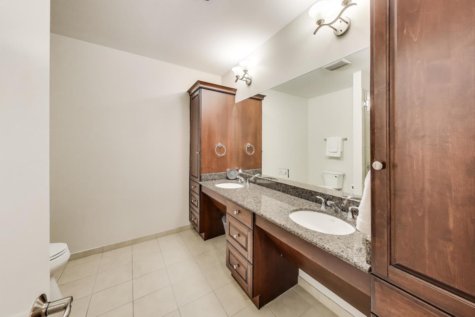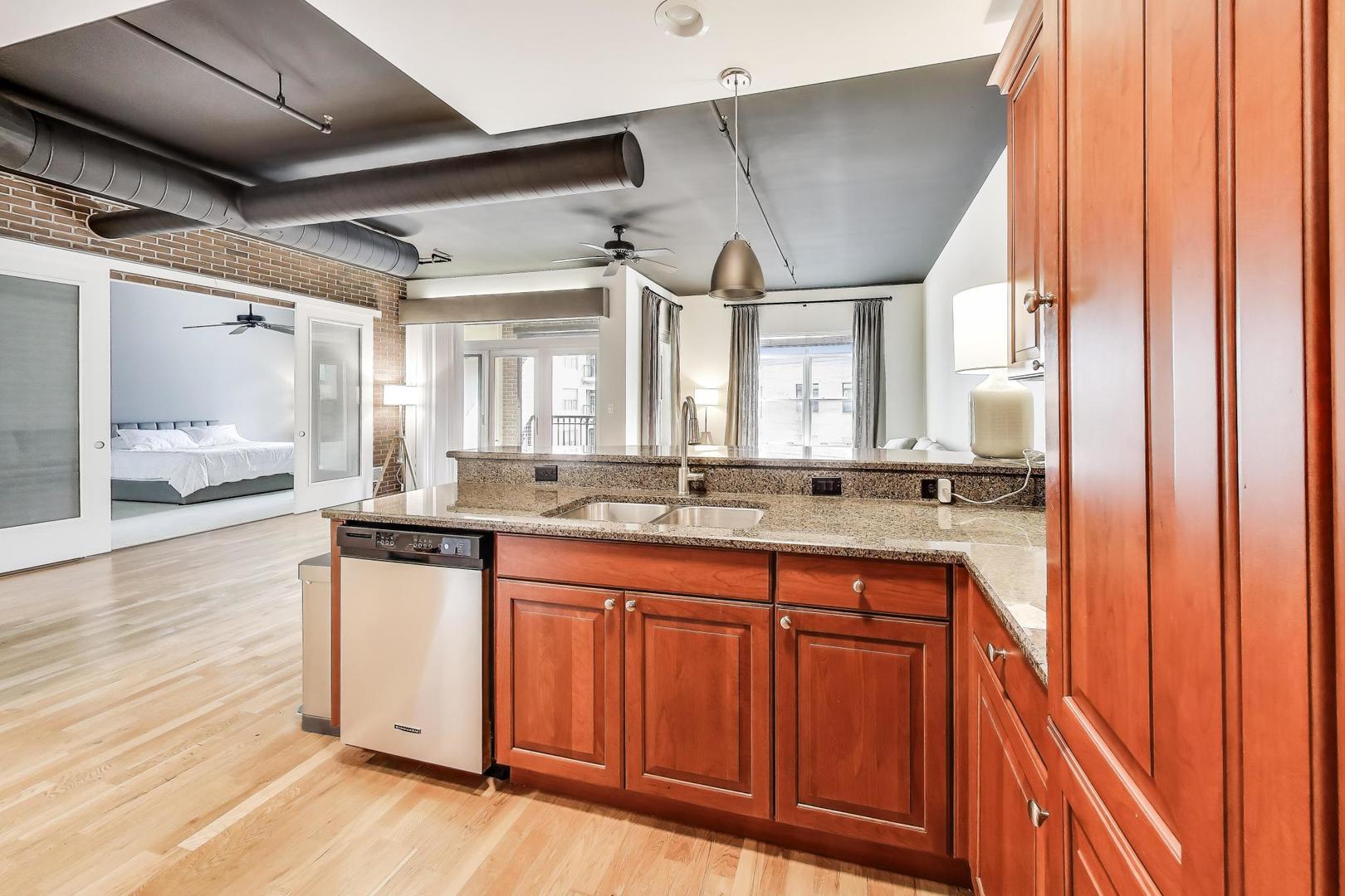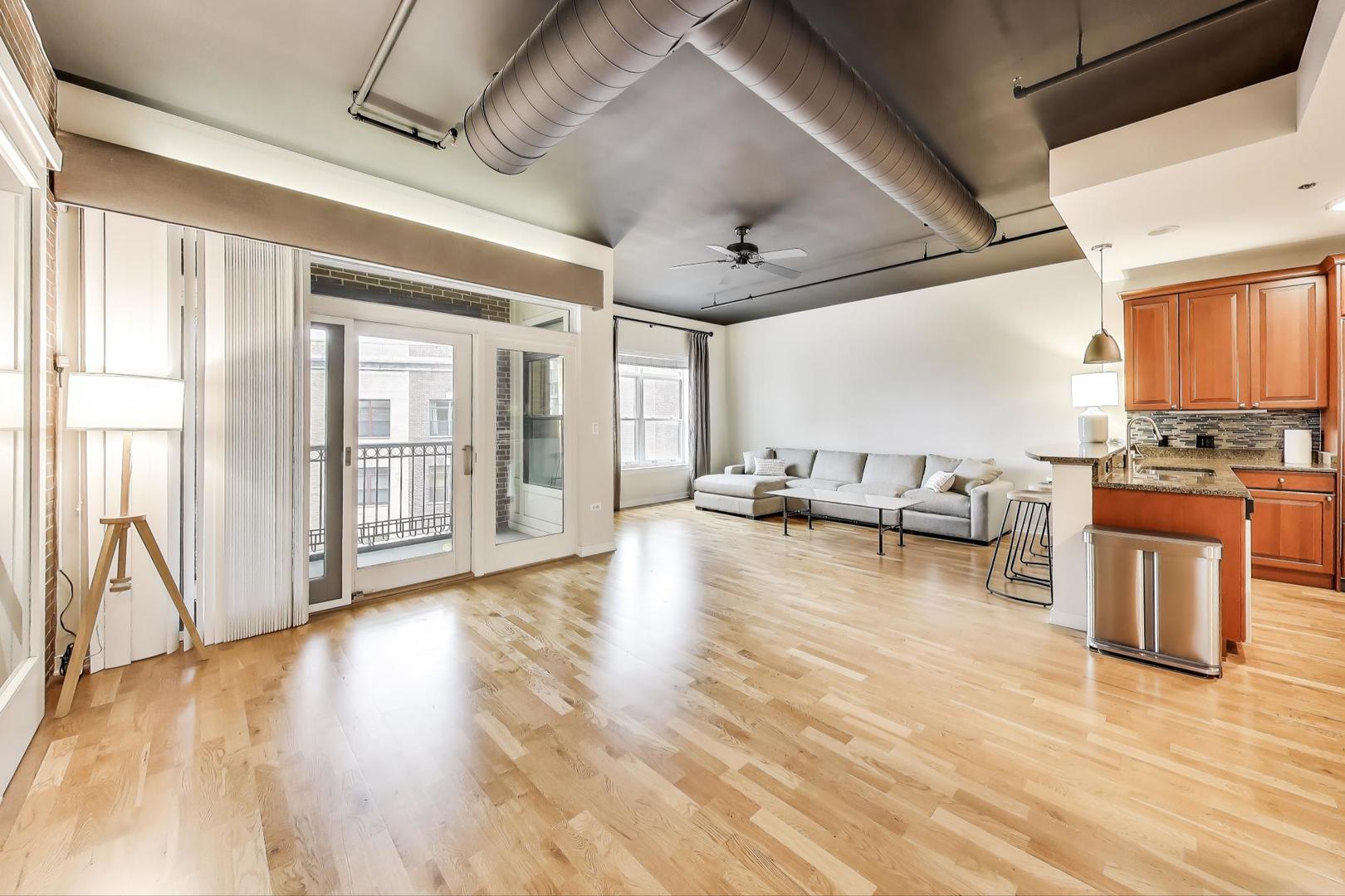 Ideally located in the heart of Downtown Palatine, this spacious top-floor loft offers unmatched convenience just steps from the Metra, restaurants, shopping, parks, and the terrific Saturday Farmer’s Market. This is the largest one-bedroom layout in the building, and one of only three units across the hall from the expansive landscaped rooftop deck with lovely views. Designed with style and comfort in mind, the open floor plan features soaring 10-foot exposed ceilings, hardwood floors in the main living area, ceiling fans, and in-floor heating along the exterior wall. The kitchen boasts 42″ cherry cabinets with crown molding, granite countertops, stainless steel appliances including a Sub-Zero refrigerator with custom panel, gas range, and accent lighting. The bathroom is beautifully appointed with a double vanity, storage towers, crown molding, and a large, tiled shower with 84″ frameless glass doors. The bedroom includes a wall of closets with California Closet organizers and plush carpeting. A private balcony with a retractable screen overlooks the courtyard. Building amenities include a party room, sundeck, and receiving room. Additional perks include a heated underground parking space and a private storage locker. Experience the best of urban living in this exceptional Downtown Palatine residence where location, style, and convenience come together seamlessly.