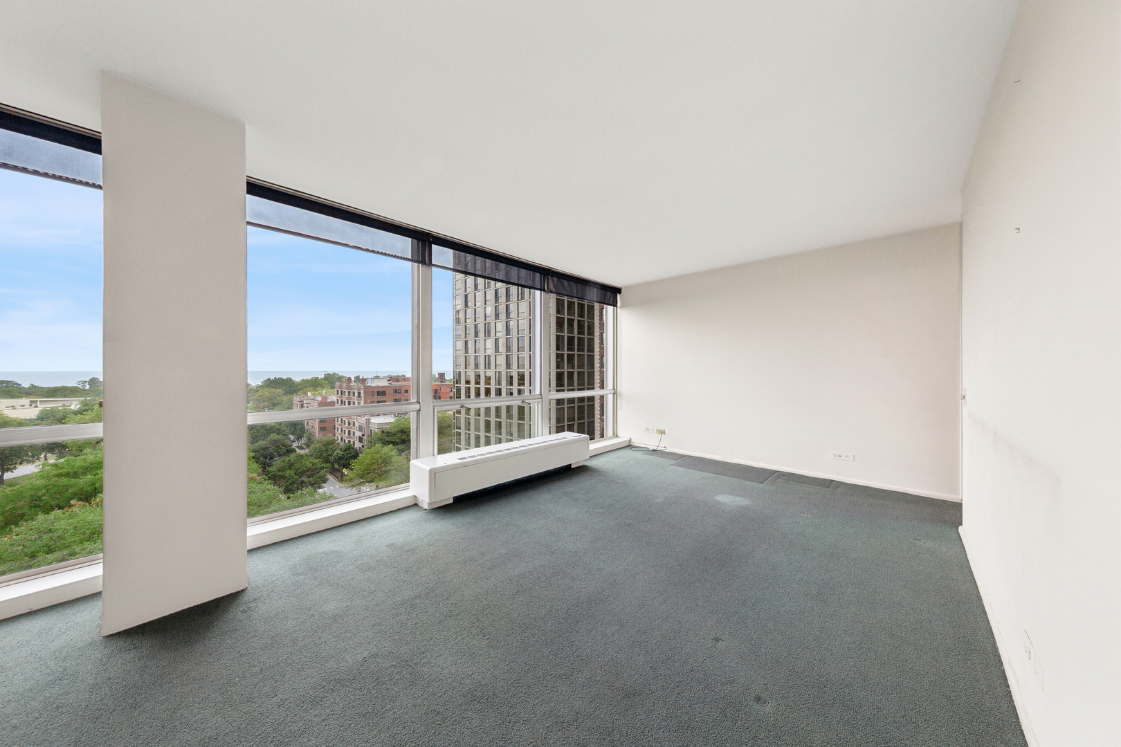 This stunning one bedroom condo offers breathtaking, floor-to-ceiling east-facing windows framing panoramic views of Lake Michigan and Lincoln Park. Flooded with natural light, the spacious open layout provides a perfect flow for both entertaining and everyday living, featuring a true dining area and an oversized living room. The large corner bedroom, with east and south exposures, includes custom built-in shelving and drawers for ample storage. The sleek, remodeled kitchen boasts quartz countertops and modern finishes, while the bright white bathroom features a walk-in shower. Brand-new carpet installed on 10/28/2025 adds the finishing touch to this stylish, move-in-ready home. Some photos do NOT reflect new carpeting.