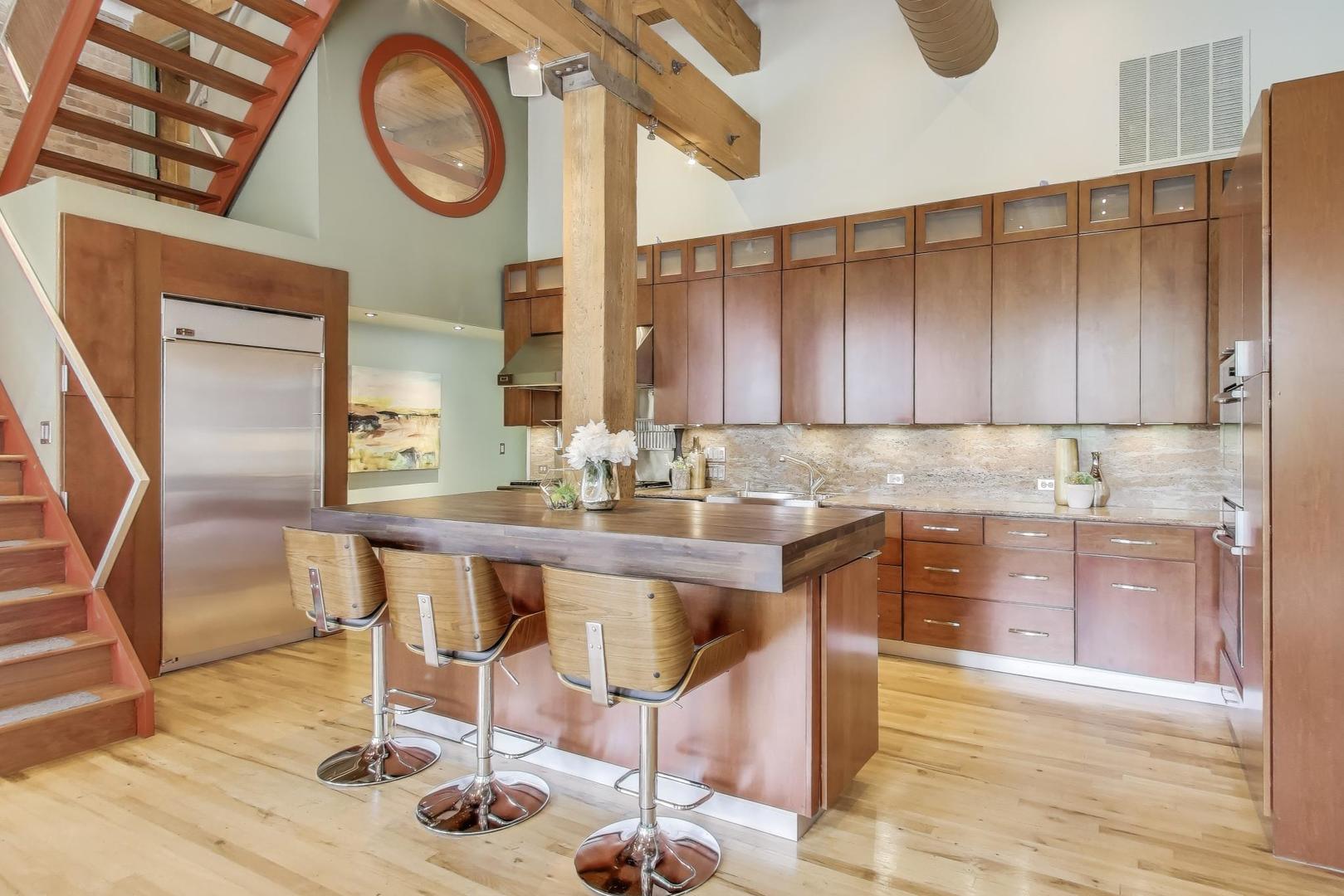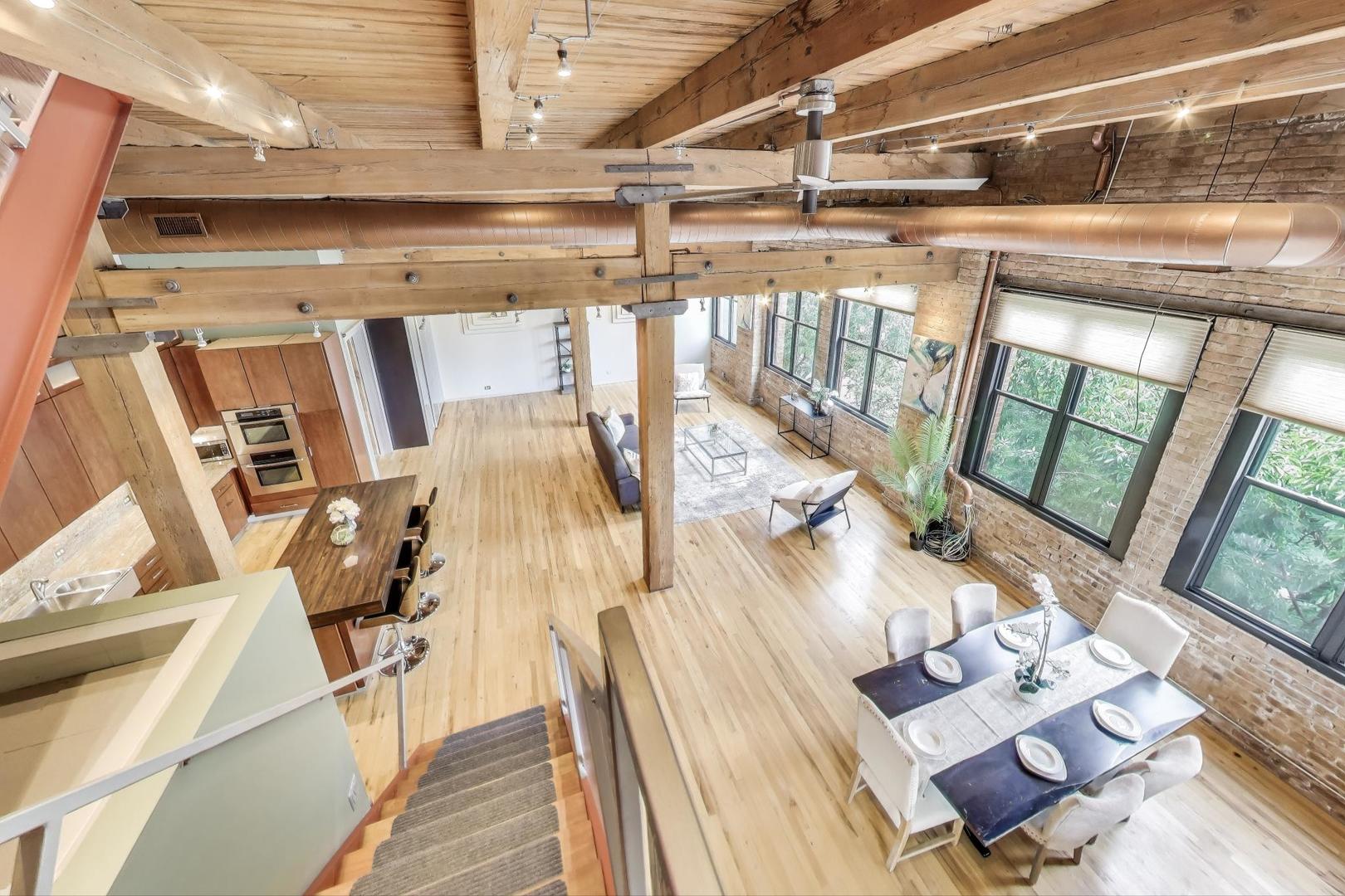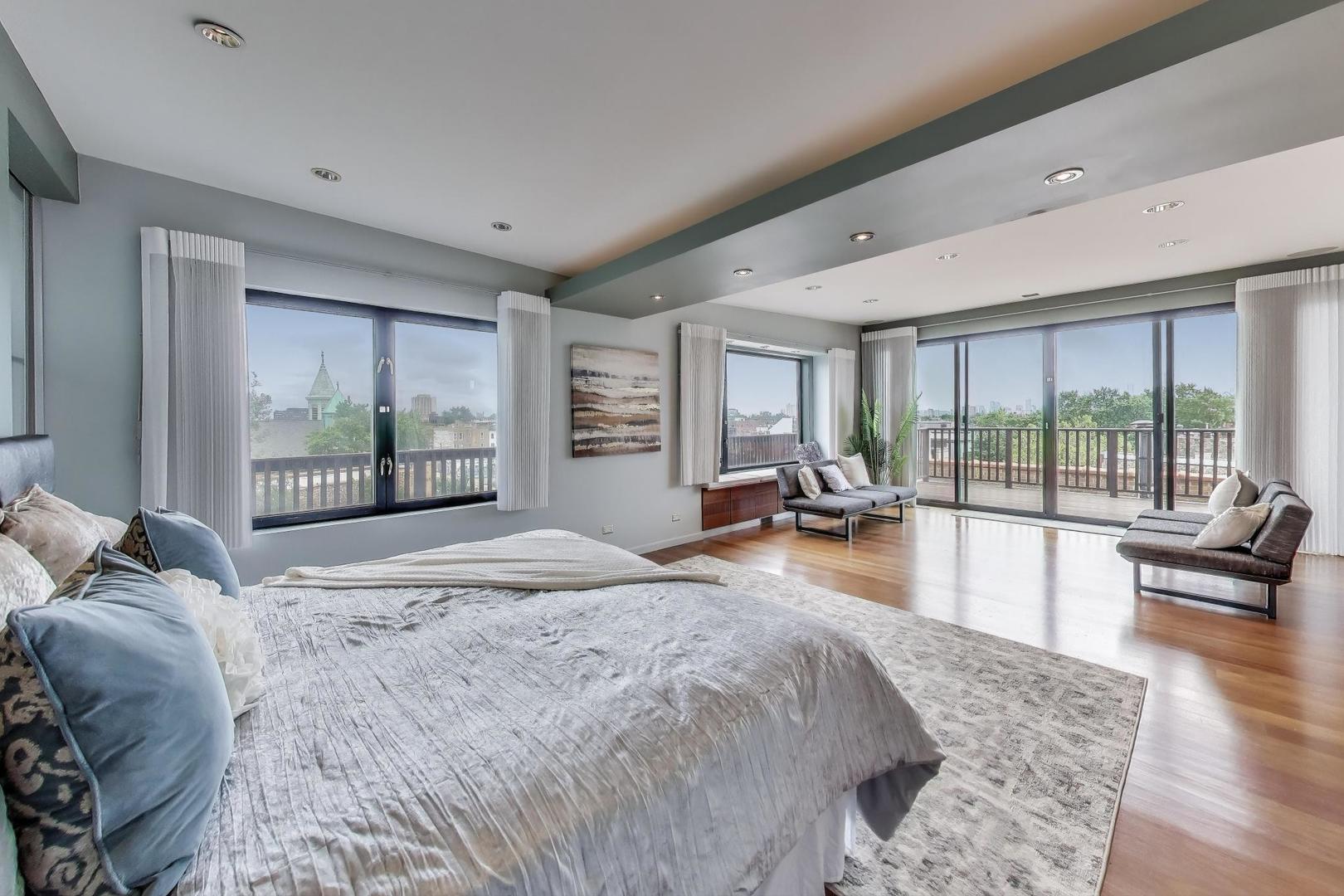 Welcome to 2401 W Ohio #31 – a show-stopping, top-floor 4 bed / 2 bath penthouse duplex in a boutique building in Ukrainian Village/Smith Park. This expansive, light-filled corner unit spans over 3,000 sq ft and showcases true loft character with soaring 16’+ timber ceilings, exposed brick, oversized factory-style windows, and 50’+ of interior width. The main level offers a dramatic open-concept layout featuring a chef’s kitchen with Thermador and Bosch appliances, granite countertops, a large island with breakfast bar, and custom cabinetry. The kitchen flows into a massive living room and formal dining area-ideal for entertaining. A spacious main-floor bedroom, full bath, and ample storage complete the first level. Upstairs, you’ll find the true primary suite, complete with a spa bath featuring an oversized walk-in shower, and double vanity. The top floor also includes an additional bedroom, a stylish sitting area, a full laundry room, and access to multiple private outdoor terraces, including a wraparound rooftop deck with panoramic skyline views. Additional features include triple-zoned HVAC, two private exterior storage rooms, in-unit laundry, and exterior parking included. Unbeatable location near Smith Park, public transit, top restaurants, and quick access to 90/94 and all that West Town has to offer.