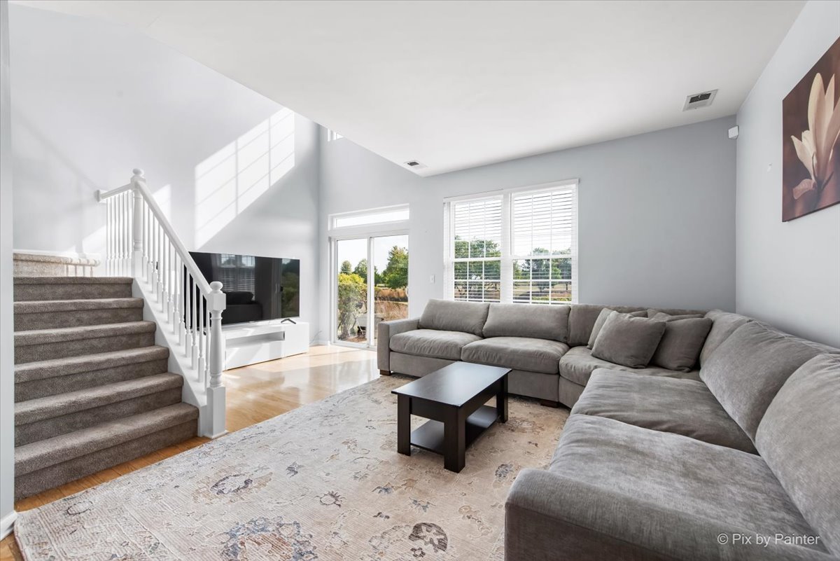 Fantastic 2-story townhome in the Villages at Heritage Meadows subdivision offers 2 bedrooms, 2.1 bathrooms and peaceful views of the pond from the backyard! Starting with curb appeal, the beautiful landscaping welcomes you inside the private entrance. Spacious living/dining area with big windows and tons of natural light and glass sliders to the concrete patio. Great kitchen offers ample cabinets and counterspace, eat-in area and interior access to the attached garage. Head upstairs to the master retreat with tray ceiling, soft carpet, walk-in closet and ensuite bath with extended vanity and shower over tub combo. A second sizable bedroom, full hall bath and laundry room complete the upstairs. Relax outdoors on the concrete patio or in the common green space with a lovely water view. Value-added features: (2025) Upper level blinds, upper hall bath light fixture, kitchen sink and faucet; (2024) Hood fan, vent fan, microwave; (2023) Roof and gutters; (2021) Water heater, humidifier; (2019) AC, furnace; (2018) Refrigerator, washer; (2017) Dryer.