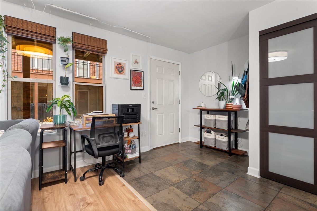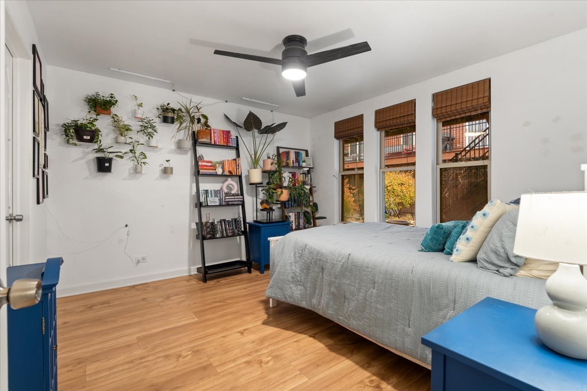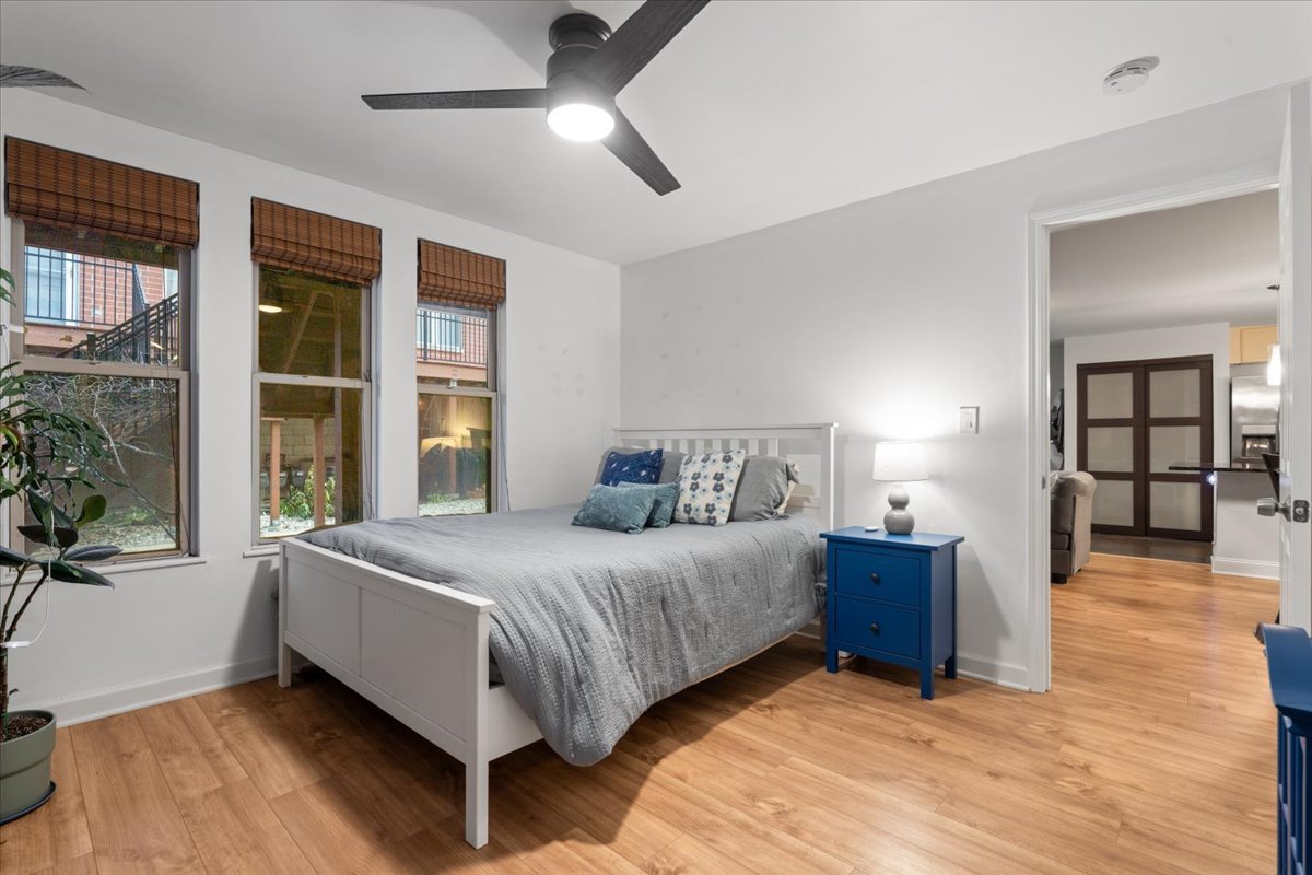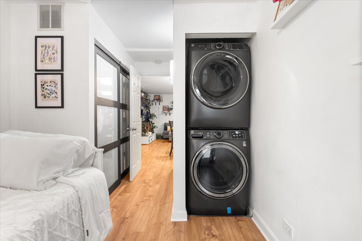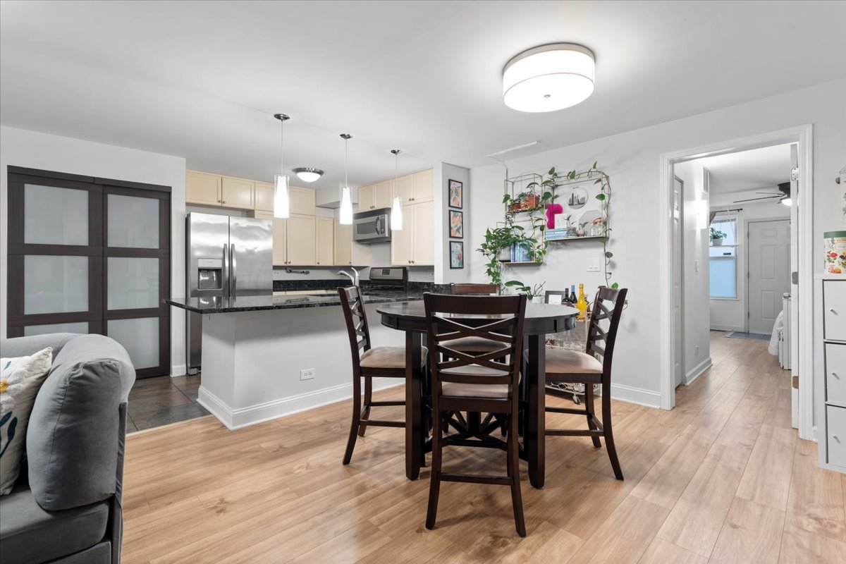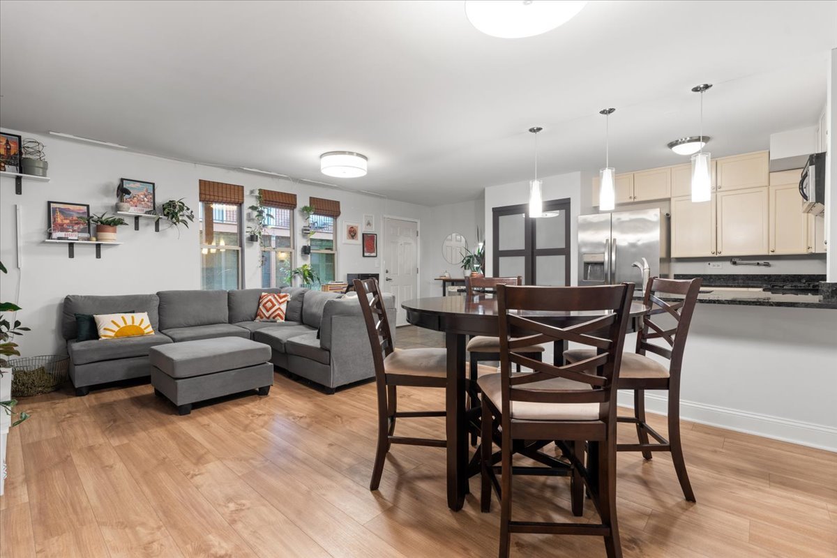 Welcome to this beautifully updated 2-bedroom, 1-bath condo with garage parking included, ideally located in the Tri-Taylor neighborhood near the Medical District. The open, functional layout is perfect for both everyday living and entertaining. The kitchen features white cabinetry, stainless steel appliances, granite countertops, a large eat-in island, space for a full dining table, and an oversized pantry. Wide-plank flooring adds warmth throughout the main living area. The newly updated bathroom offers a modern vanity, refreshed lighting, and a stylish walk-in shower. Two well-sized bedrooms provide flexibility for sleeping, working from home, or hosting guests, and in-unit laundry adds everyday convenience. Enjoy a private patio set within a quiet, landscaped courtyard. Transit is a major perk-close to the Blue and Pink Lines, multiple bus routes, and with immediate access to I-290 for quick trips to the Loop or suburbs. Near UIC, Little Italy, and the West Loop, this move-in-ready home blends comfort, convenience, and an easygoing city lifestyle.