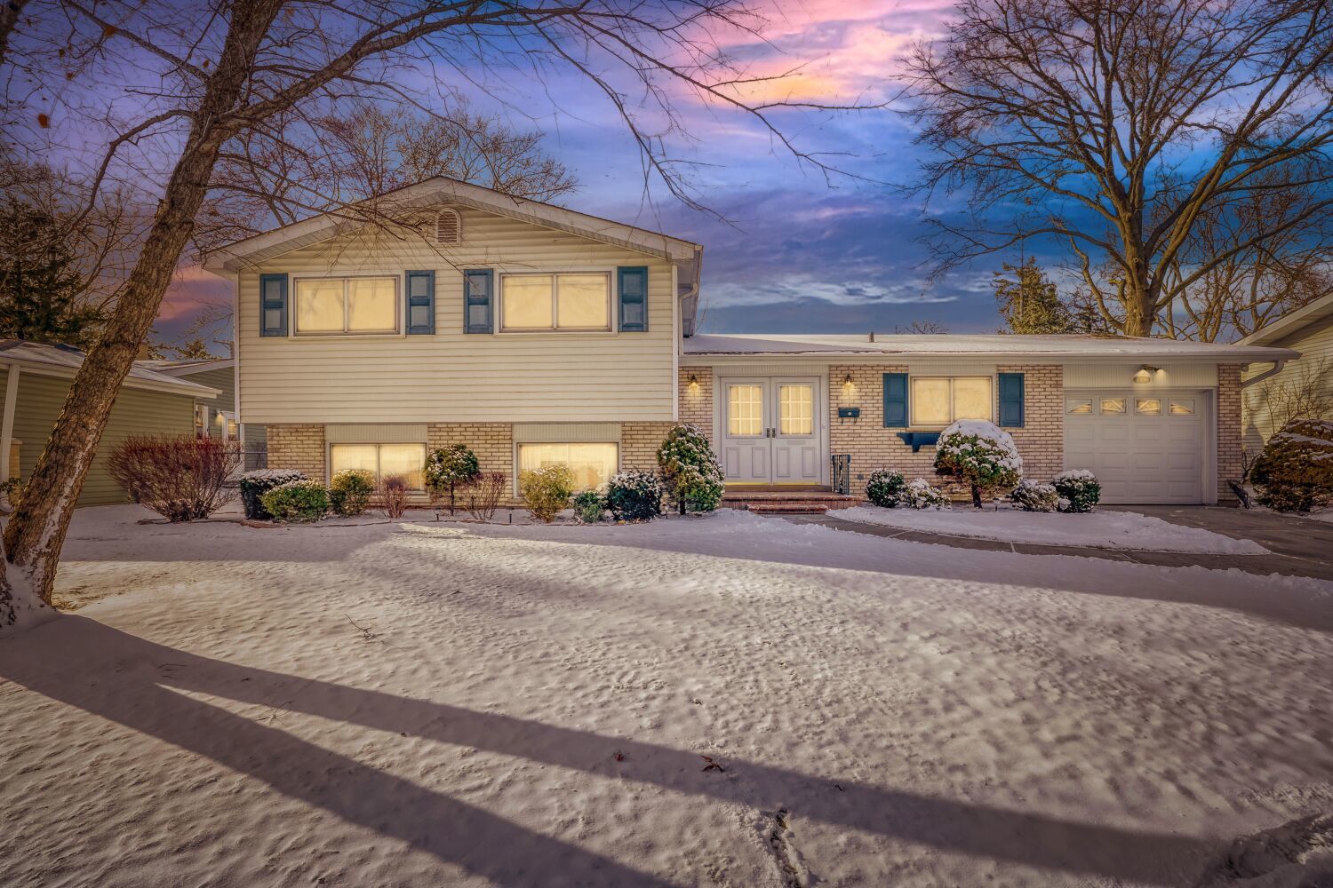 Immaculately maintained 3-bedroom, 1.5-bath split-level home with a flexible layout and the option for a 4th bedroom, offering over 1,400 square feet of well-designed living space in the desirable Greenbrier neighborhood. This home has been exceptionally well cared for, and it truly shows. Hardwood floors enhance most of the living areas and all bedrooms, while the family room addition and lower level offer comfortable, carpeted, flexible living space. The thoughtfully designed layout includes an eat-in kitchen, a generously sized dining room, and a welcoming sitting/living room that flows seamlessly into a spacious family room addition. The dining room, conveniently located next to the kitchen, offers the potential to be opened up for a more open-concept layout if desired. The family room features a gas log fireplace that can be converted back to wood-burning, creating an inviting space for everyday living and entertaining. The lower level provides versatile space that works beautifully as an additional family room or home office and can easily be converted back into a 4th bedroom. A half bath on the lower level offers the opportunity to be expanded into a full bath, adding even more functionality and long-term value. Storage is a standout feature throughout the home, with excellent closet space in all bedrooms and a huge cemented crawl space offering exceptional storage capacity. The backyard is serene and thoughtfully landscaped, featuring a beautiful brick paver patio ideal for entertaining, along with a fully fenced yard. Major updates include a high-efficiency furnace with multi-speed fan and central air conditioning (approximately 2 years old), water heater (approximately 8 years), and a roof that is approximately 15 years old and recently inspected by the homeowner’s insurance company and noted to be in great condition with a 30-year warranty. Additional highlights include all copper plumbing, a recently rebuilt chimney with stainless steel liner, and a newer sump pump with lifetime warranty and battery backup. The home offers a 1.5-car garage along with a wide driveway that easily accommodates two or more vehicles. Conveniently located near award-winning Greenbrier Elementary, Thomas Middle School, and Buffalo Grove High School. Happiness Park is just a couple of blocks away, with Frontier Park nearby offering extensive recreational amenities. Just minutes from downtown Arlington Heights with dining, entertainment, outdoor summer events, and Metra access, plus easy access to Route 53. Don’t miss this exceptional opportunity.