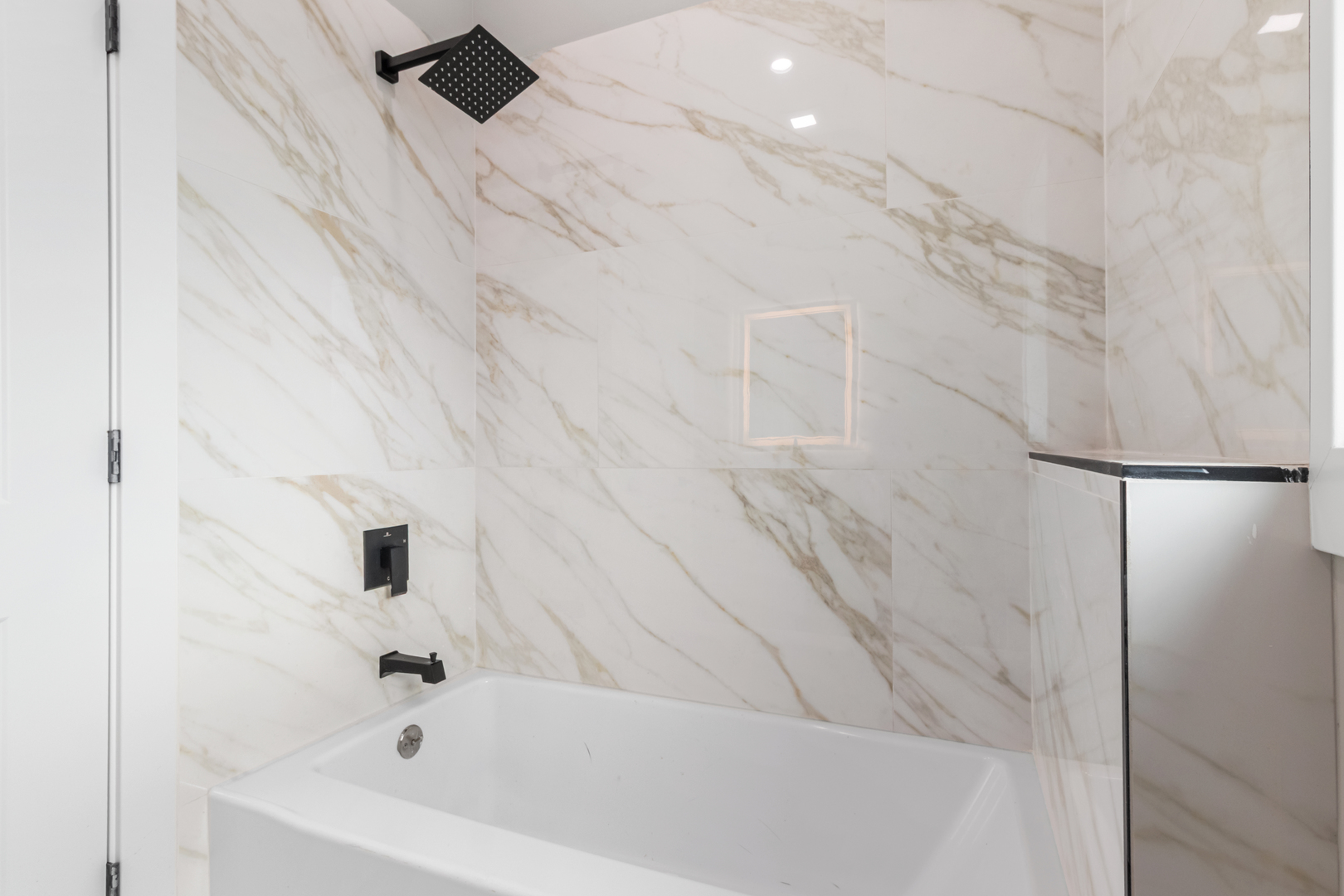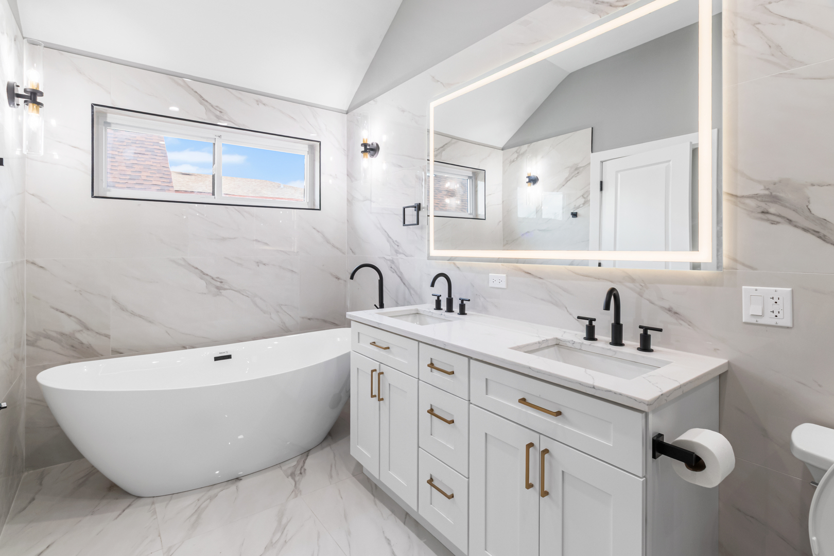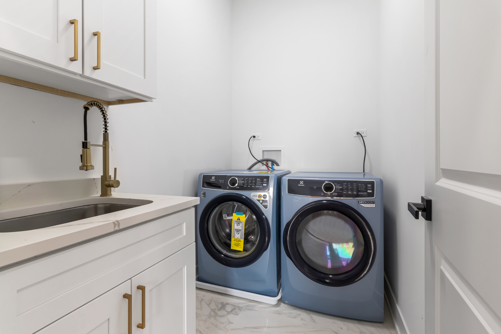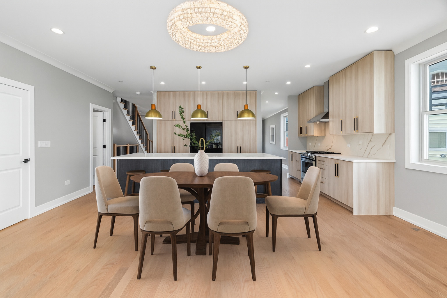 BRAND NEW CONSTRUCTION! Discover this exceptional 5-bedroom, 3.5-bath new construction home showcasing an open-concept layout with bright airy rooms and high-end finishes throughout. The gourmet kitchen is a chef’s paradise, featuring sleek quartz countertops, top-tier stainless-steel appliances, a spacious island, and a cozy eating nook. The main level also includes a modern powder room along with large and welcoming living room and electric LED fireplace. Upstairs, the lavish master suite is a true retreat, complete with expansive walk-in closets and a private ensuite featuring a double-sink vanity and soaking tub. The second floor also includes three additional bedrooms, offering plenty of space for family and guests. The fully finished basement extends the living area with a wet bar, a large recreation room, a fifth bedroom, and another full bath-perfect for entertaining or hosting visitors. Step outside into the fenced yard with a charming deck, creating a peaceful outdoor oasis for relaxation or activities. The added convenience is a brand new 2-car garage and additional 1 space – exterior carport. With its prime location near the train station, shopping and dining this home offers both luxury and convenience.