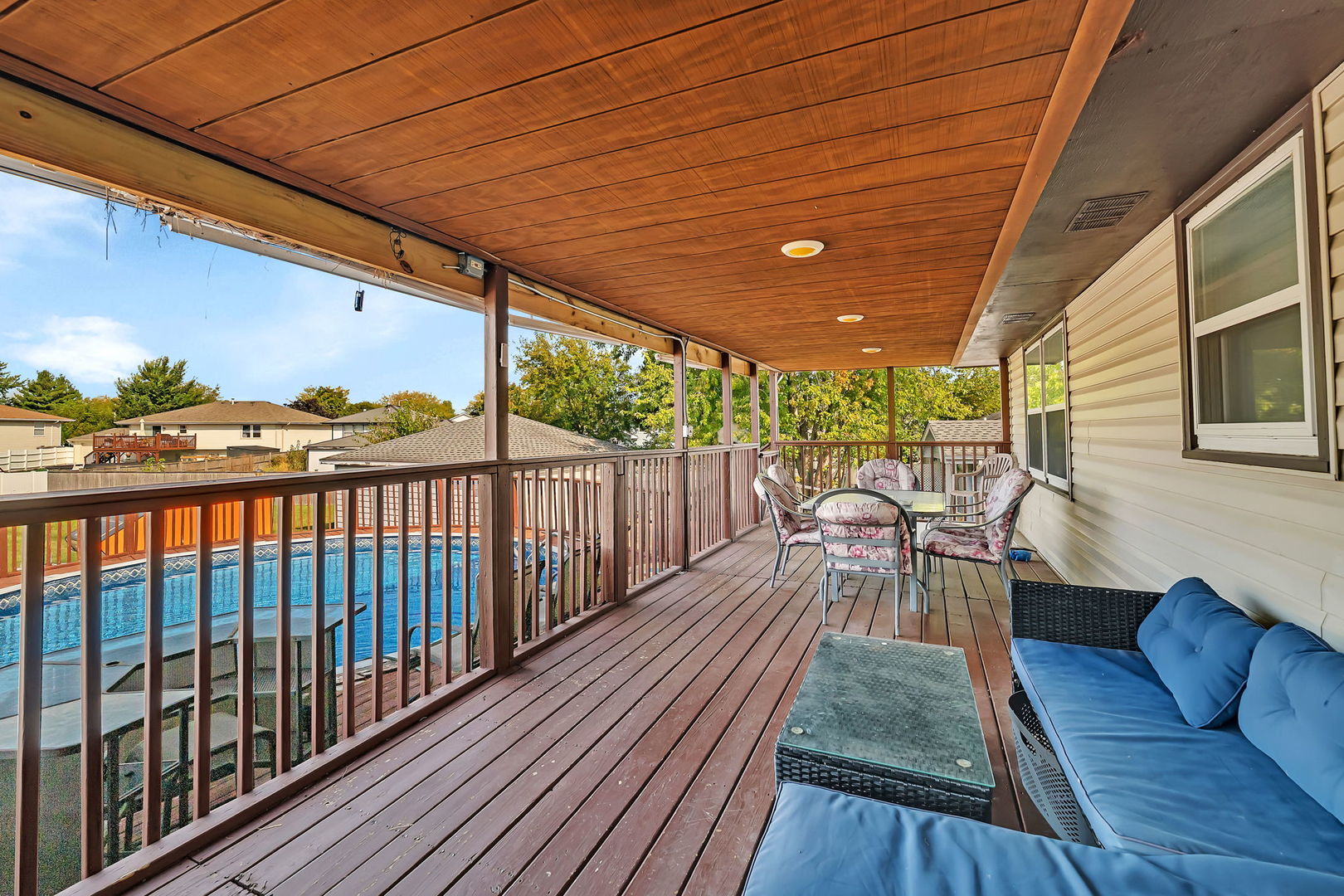 Welcome home! This beautifully redone 4 bedroom 2.5 bath home sitting on .39 acres is one of a kind. Offering a 660 sq ft drive through garage with central heat, trench drains, car lift, bathroom, concrete driveway, pool, and deck makes for a backyard paradise. Featuring newer hardwood floors, main floor bathroom and kitchen remodel with new appliances 2024, roof and gutters 2022, walkout basement complete remodel 2025 and newer front windows. Don’t wait, this one won’t last! SHOWINGS BEGIN 10/7. MUST HAVE 24 HOUR NOTICE.