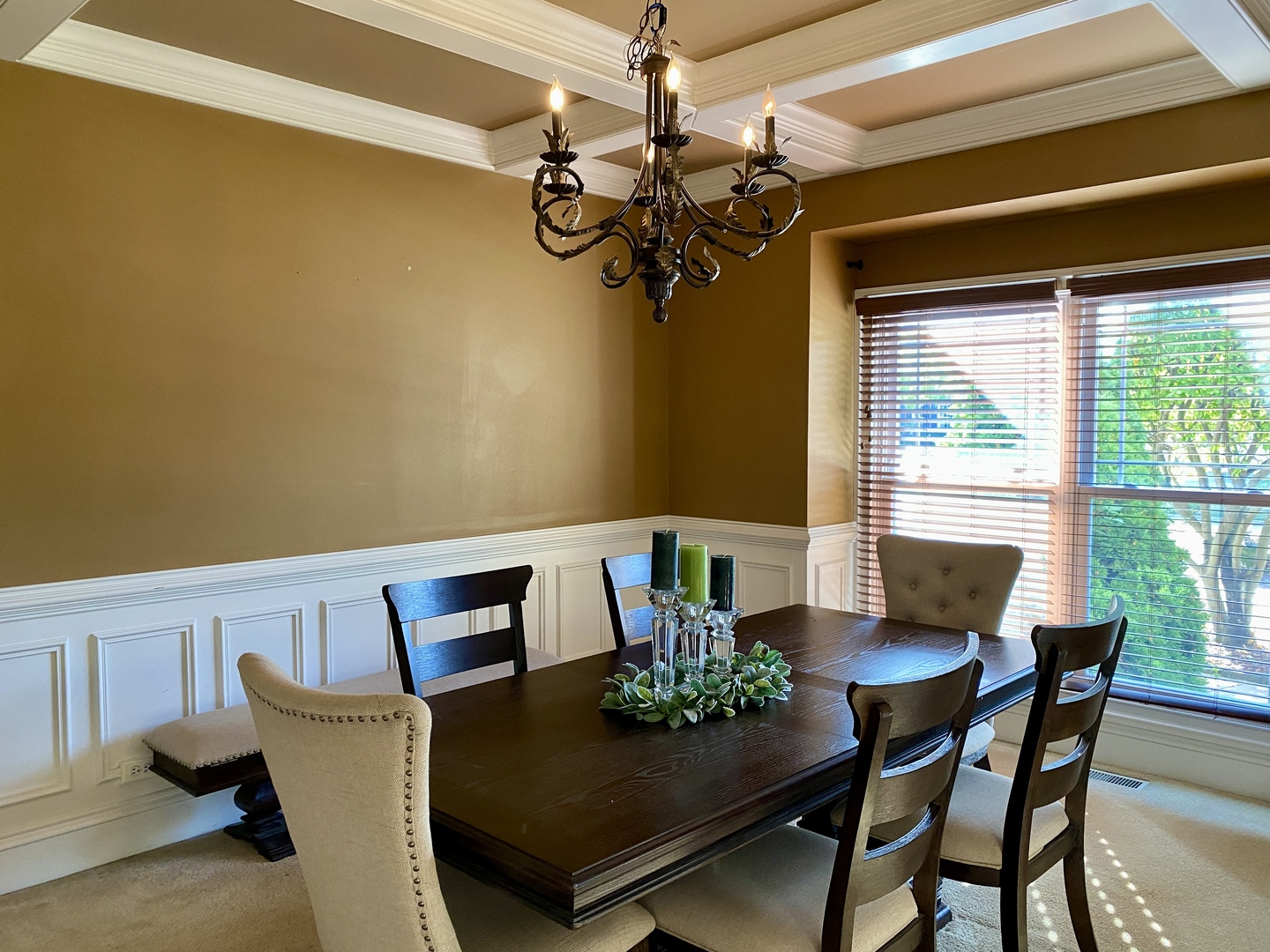 Welcome to this Big Bright Beautiful home. The ceilings are tall and the rooms are big. the house has an ethernet HUB from an in house router and multiple routers in each room. You greet your guests in the formal living room and turn to see a beautiful coffered ceiling dining room . Look up to a lofty hallway leading to 3 bedrooms and an amazing Master with very high ceilings, his and hers walk in closets, double sinks and a jacuzzi. Awesome kitchen with stainless appliances and a walk in pantry. You can view the huge family room with a big TV, gas fireplace and soaring ceilings. The basement is unfinished with high ceilings. It’s a gym right now until you make it yours! Fully fenced yard. 2 car garage with a heater has a 3rd space with a bar , Kegerator, and atmosphere!