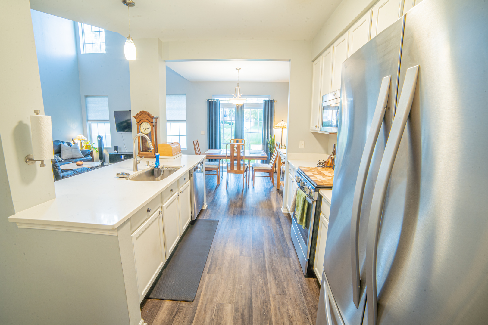 Move right into this updated 2 bedroom 2 1/2 bath townhomes. As you walk in the front door you will feel as you are home. The foyer leads to the two-story Family room with so much natural light! The beautiful spacious kitchen with stainless appliances, island with beautiful quartz counter tops and a walk-in pantry. The dining area is located off the kitchen. Walk out your sliding door to your adorable patio. The second-floor boosts of a 2nd floor laundry room. Vaulted master suite with walk-in closet, private bathroom with large vanity and soaking tub. The 2nd bedroom/ office, a full bathroom and a loft. Don’t forget about the 2-car garage. This home is located close to parks, ponds, restaurants, shopping and expressway. (List of updates 2019: Renovated kitchen, new flooring throughout, renovated 1/2 bath, painted interior, trim, and railings. Blackout shades in Master and New Shades in living room. Newer roof by Assocation) Don’t let this one get away!