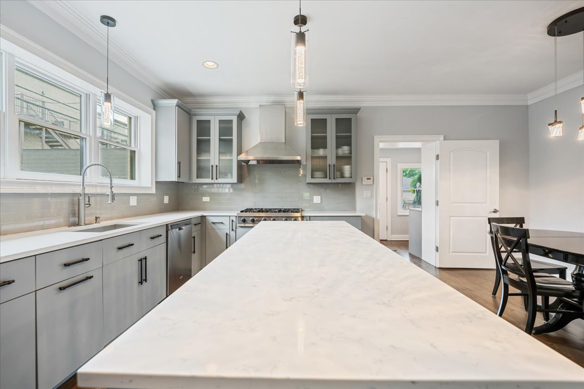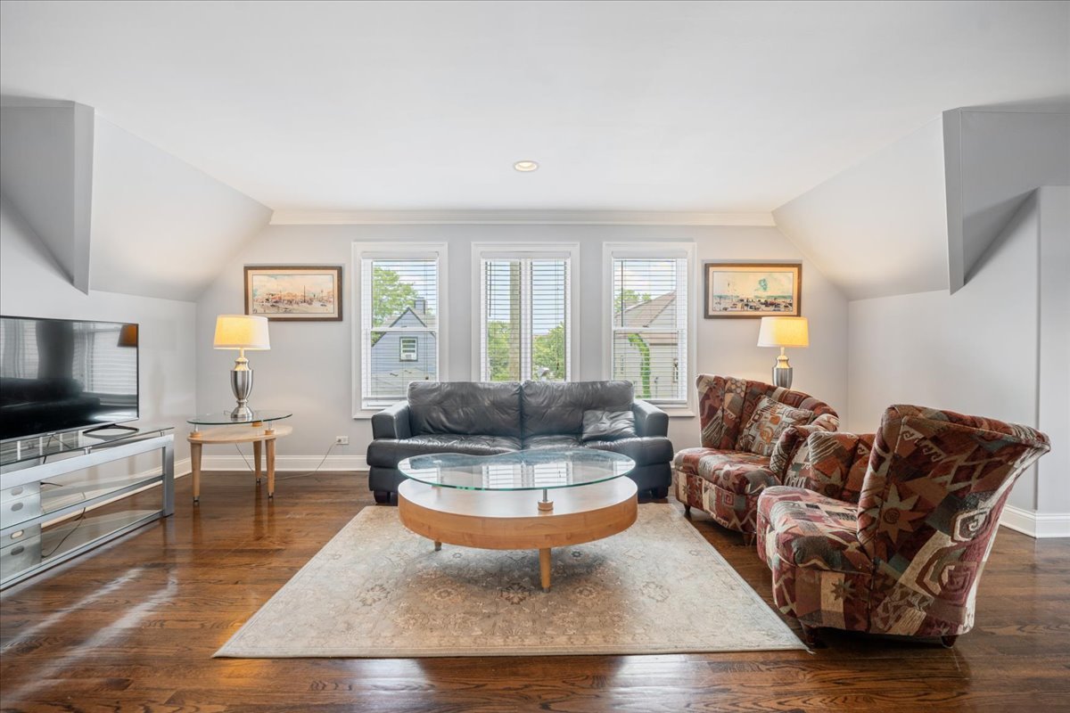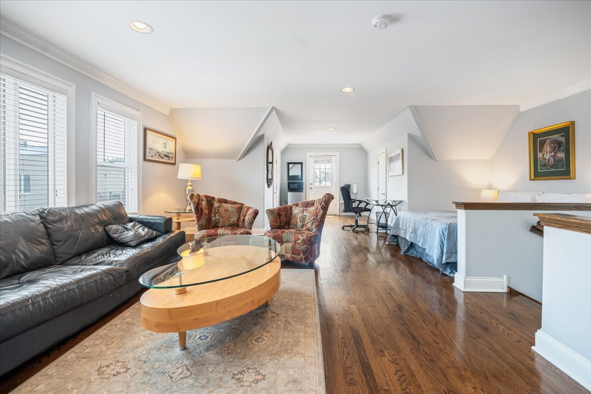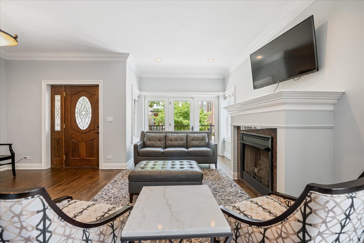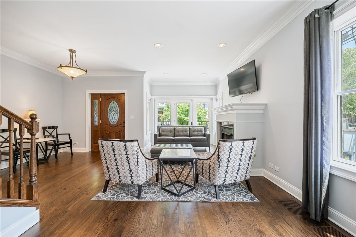 Updated 5-bedroom, 4.1-bath single-family home offering four levels of flexible living space in the highly rated Coonley School District. Features include a sun-filled open main level with hardwood floors, a chef’s kitchen with quartz countertops, oversized island, and a spacious mudroom/laundry room ideally situated just off the kitchen. The second level boasts a large primary suite with walk-in closet, spa-like walk-in shower, dual vanity, and direct access toa beautiful sun porch and a private deck. Two additional bedrooms and a full bath complete this floor. The standout third level offers a full private suite ideal for guests, older children, or work-from-home comfort. It includes a Jacuzzi soaking tub, and a private balcony – all with its own dedicated entrance, creating a true oasis. The finished lower level includes a generous family room, full bath, additional bedroom, and a second kitchen – perfect for multigenerational living, nanny quarters, or long-term guests. Enjoy four private outdoor spaces: a deck off the main floor, balconies on the upper levels, and a rooftop garage deck. Additional features include dual-zoned HVAC, a 2-car garage, and a quiet, tree-lined street just steps from Welles Park, Horner Park, the Brown Line, and the restaurants and shops of Lincoln Square and Roscoe Village.