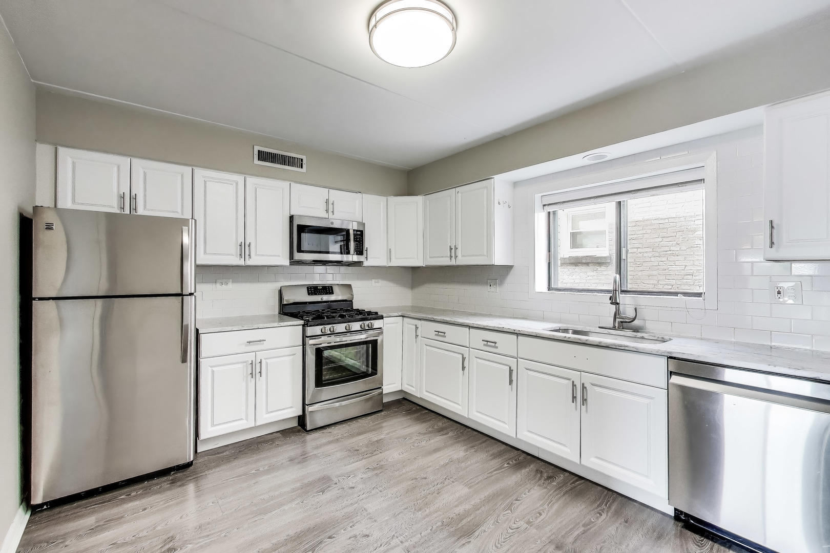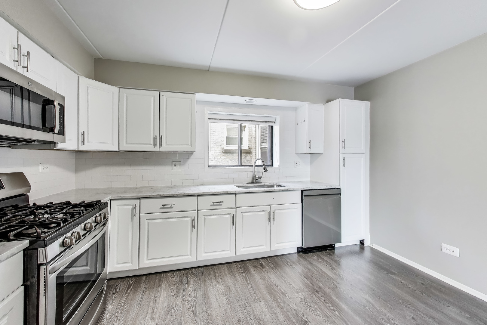 Gorgeous Lincoln Square condo! This three bedroom two bath condo has been freshly painted throughout. Upgraded kitchen with Carrera Marble counter-tops, white cabinets and stainless steel appliances. Enjoy the bright open living room and dining room that has access to the private balcony. Custom built cabinetry with beverage bar and fridge. Spacious master suite with private bath and full wall of closets. Hall bath features a whirlpool tub. Full size in unit washer/dryer. Huge 11×14 private room in the basement for storage/workout room/etc. Parking on site, one assigned parking space with additional guest parking. Walk to local parks, restaurants and shopping. Close to the beautiful Chicago lakefront! This is a great place to call home!