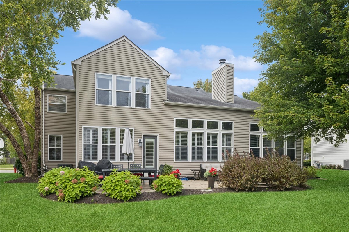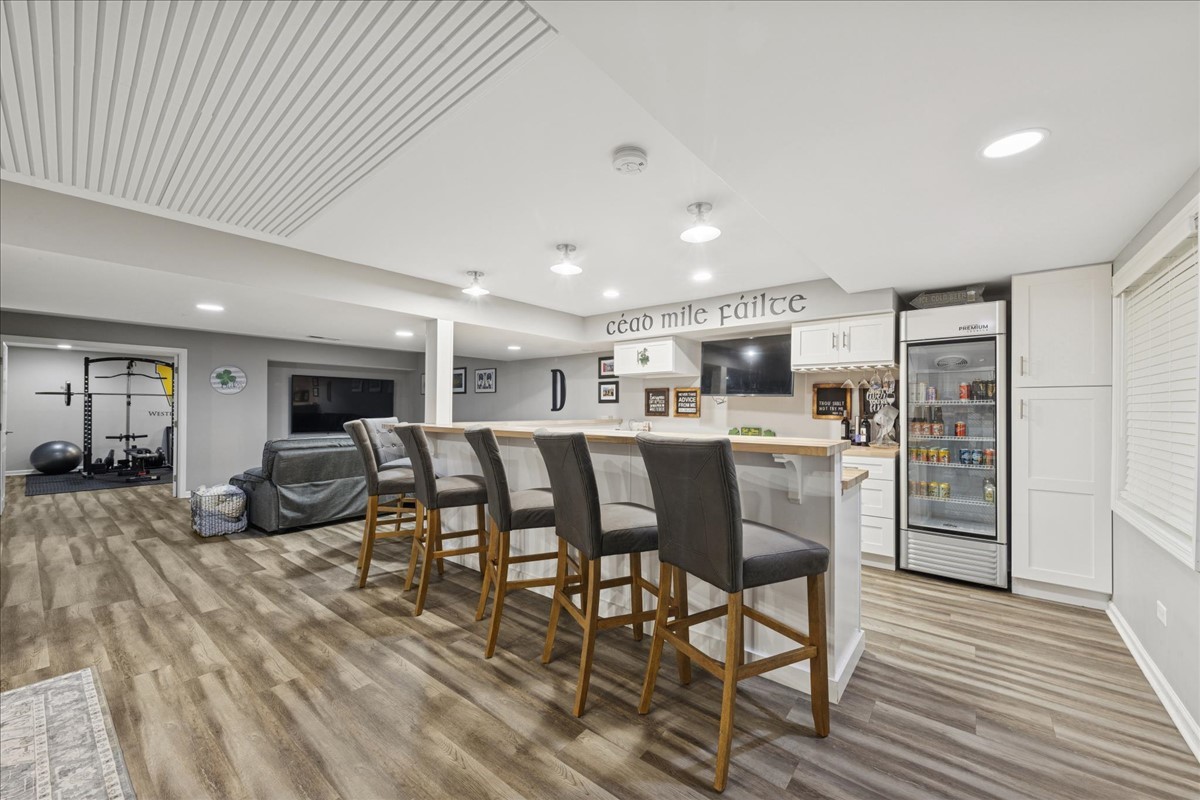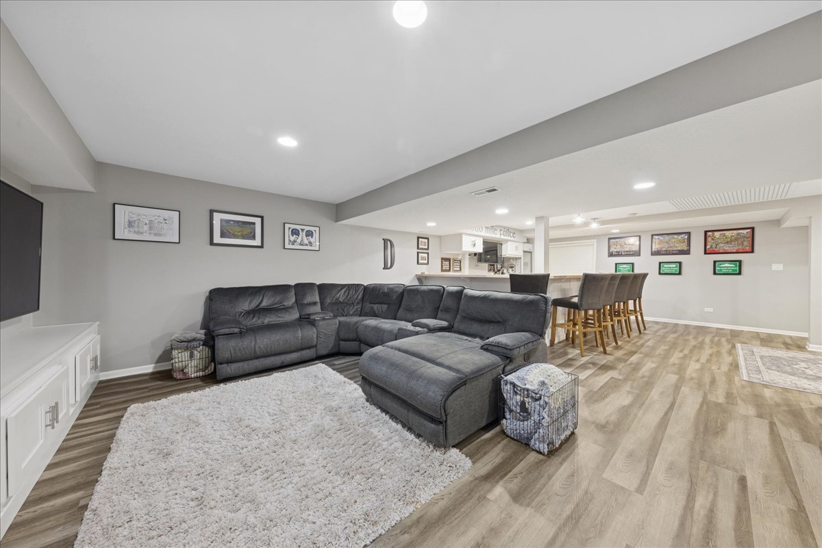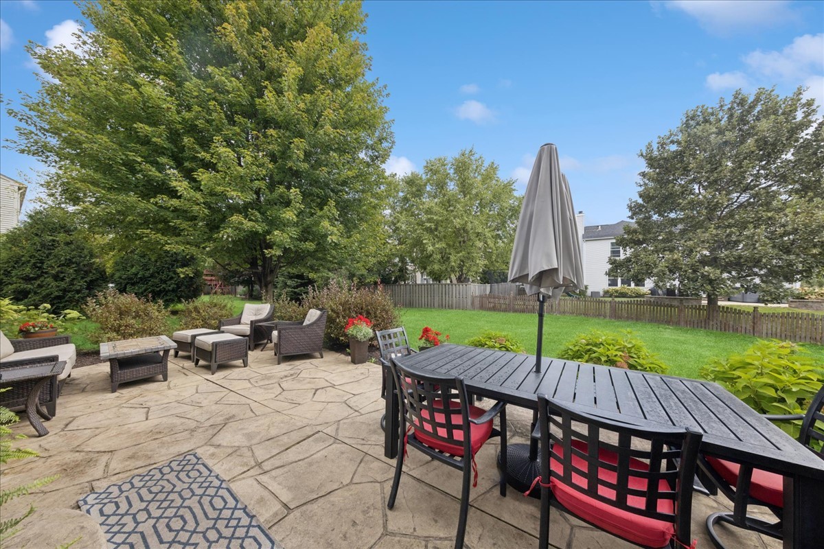 Updated and upgraded North Plainfield home in Kensington Club pool/clubhouse community boasts open floor plan. Gourmet kitchen w/42″ white cabinets, granite counter tops & stainless steel appliances. Dual sided fireplace separates large family room from separate sunroom, both w/vaulted ceilings. Formal living/dining rooms + 1st floor den. Hardwood flooring & plantation shutters throughout most of 1st floor. Dual staircases lead to 2nd floor w/vaulted primary suite. Large primary bath w/dual vanities, separate soaking tub & shower + massive walk-in closet. Good sized bedrooms share hall bathroom. Full, finished basement is an entertainer’s dream features a large recreation room, amazing bar w/glass front refrigerator wine chiller, dishwasher & ice maker, 5th bedroom/gym, game area w/built-in cabinets + oversized laundry room. LVP flooring throughout basement. 1st floor mud room w/access to 2 car garage has custom lockers + add’l laundry hookups behind wall. 9′ 1st floor ceilings, newer HVAC. Big backyard w/stamped concrete patio & extensive landscaping. Plainfield North High School boundaries. Walking distance to pool & clubhouse w/fitness center & park/playground. Great location, convenient to everything including highways, shopping & restaurants.