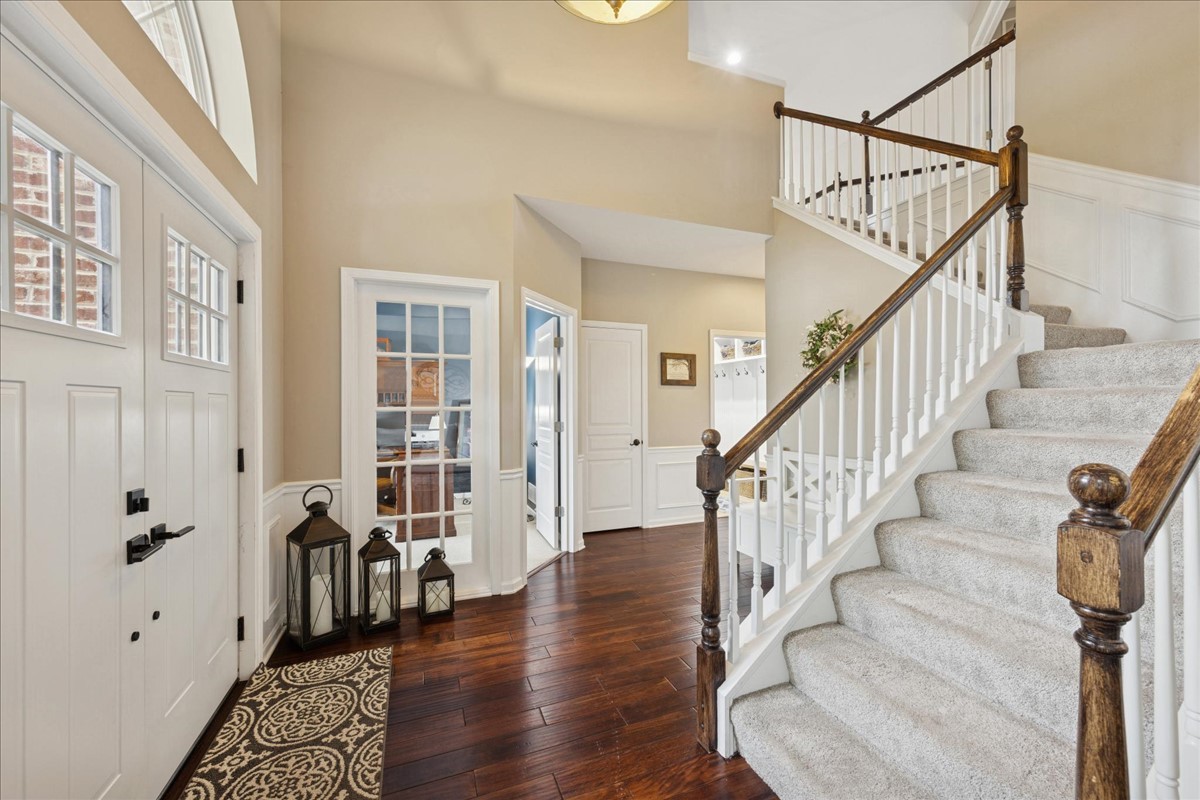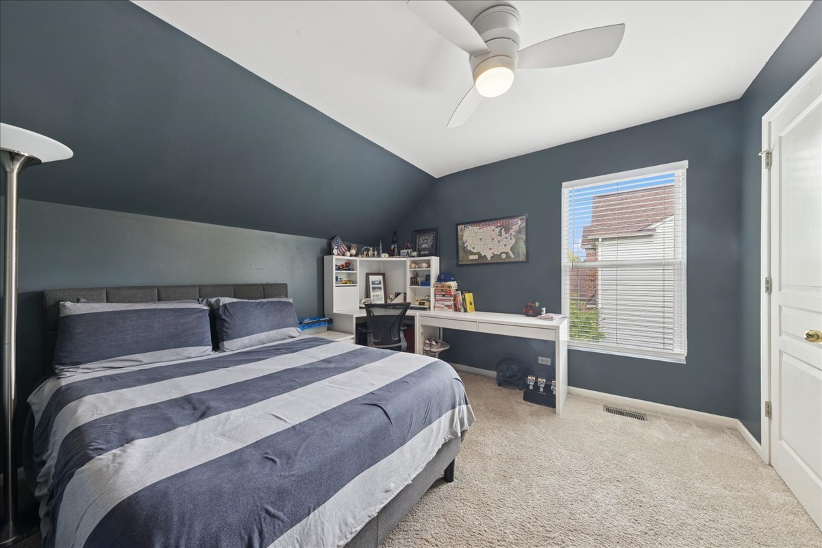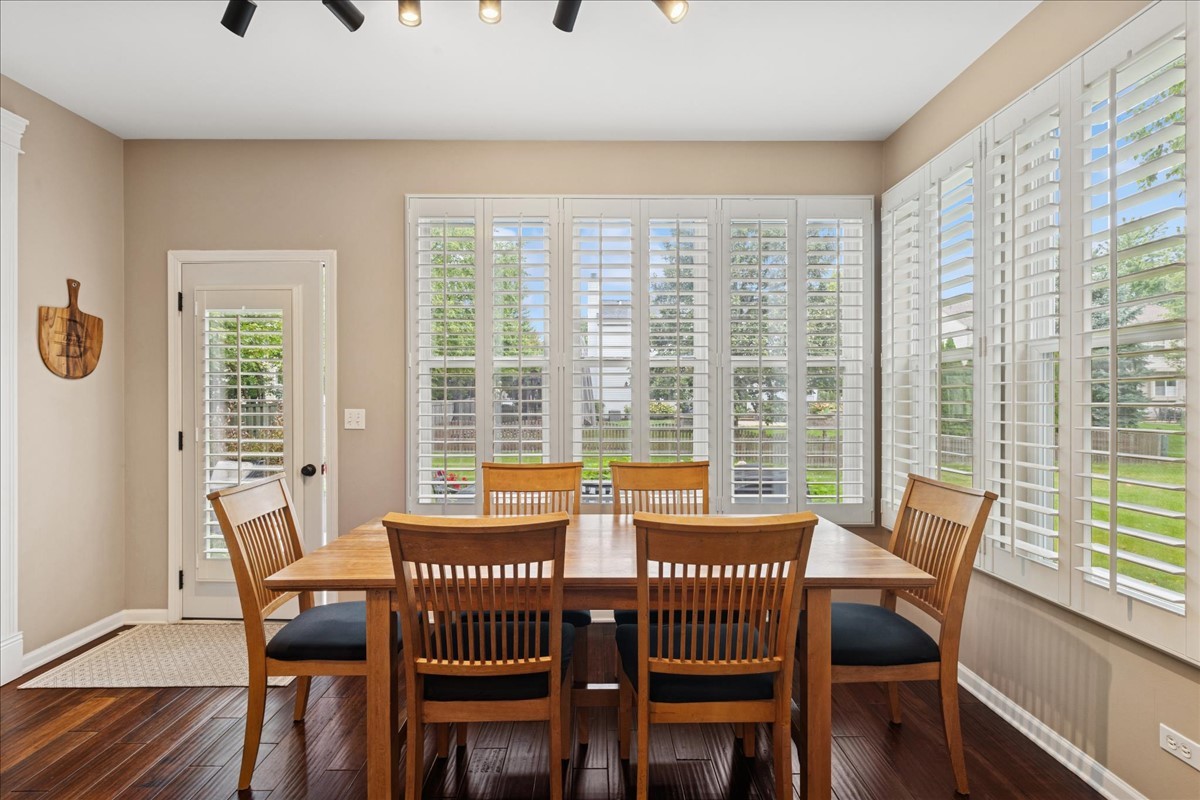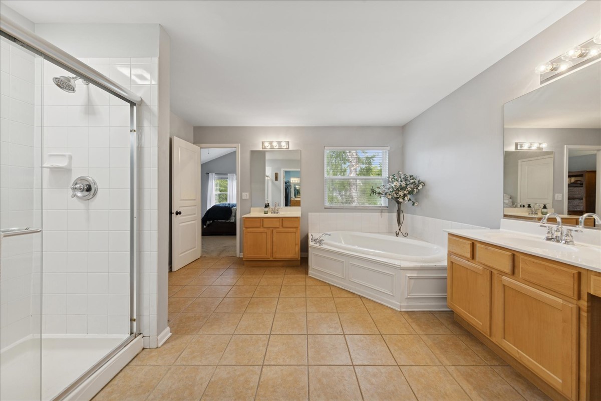 Updated and upgraded North Plainfield home in Kensington Club pool/clubhouse community boasts open floor plan. Gourmet kitchen w/42″ white cabinets, granite counter tops & stainless steel appliances. Dual sided fireplace separates large family room from separate sunroom, both w/vaulted ceilings. Formal living/dining rooms + 1st floor den. Hardwood flooring & plantation shutters throughout most of 1st floor. Dual staircases lead to 2nd floor w/vaulted primary suite. Large primary bath w/dual vanities, separate soaking tub & shower + massive walk-in closet. Good sized bedrooms share hall bathroom. Full, finished basement is an entertainer’s dream features a large recreation room, amazing bar w/glass front refrigerator wine chiller, dishwasher & ice maker, 5th bedroom/gym, game area w/built-in cabinets + oversized laundry room. LVP flooring throughout basement. 1st floor mud room w/access to 2 car garage has custom lockers + add’l laundry hookups behind wall. 9′ 1st floor ceilings, newer HVAC. Big backyard w/stamped concrete patio & extensive landscaping. Plainfield North High School boundaries. Walking distance to pool & clubhouse w/fitness center & park/playground. Great location, convenient to everything including highways, shopping & restaurants.
