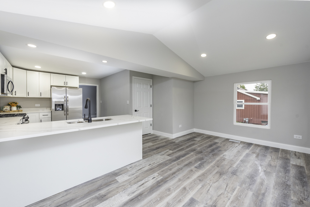Don’t miss out again!! Buyers financing fell through at no fault of the seller. This gorgeous house is ready to go! NEW kitchen with quartz cabinets and stainless appliances. Large living room with wood burning fireplace. Dining area with vaulted ceilings leads to 2 tiered deck and large private yard. Gorgeous full bath with tile surround, new sink and toilet, and main floor guest bedroom. Upstairs boasts a primary bath with updated bathroom with shower, new sink and toilet. Additional large bedroom. New roof, windows, siding, front doors. Electric and plumbing updated. New flooring, paint, doors, trim, lighting fixtures all new throughout. Full basement is a walkout, new a/c unit, new water heater. 2 driveways and huge oversized 2.5 car garage across the street from sought-after Emmons School. Don’t miss out this won’t last long.