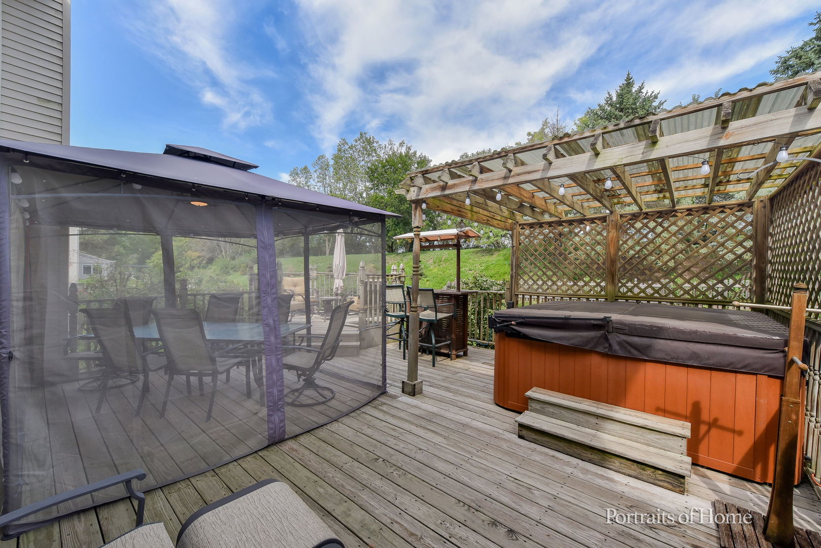 Beautifully maintained 4 bed, 3.5 bath home offering style, comfort, and space throughout. The eat-in kitchen features granite countertops, ample cabinetry, new floors, and updated stainless steel appliances (2023). A bonus room off the kitchen serves perfectly as a home office or playroom. The main-level laundry provides direct deck access for added convenience. Upstairs, you’ll find 4 spacious bedrooms, including a primary suite with a walk-in closet and spa-like bath. The finished basement is an entertainer’s dream with a full bar, pool table, wine fridge, and full bathroom. Step outside to your private backyard retreat with a large deck, pergola, hot tub, and outdoor shower. Additional highlights include two attics (one above the garage), washer/dryer (2023), AC/furnace (2024), water heater (2023), siding and roof (2015), and windows (2017). Prime location near Ashbury Park, I-88, and the Naperville Train Station, within acclaimed District 204 schools. Sold as-is, this home offers exceptional value in a vibrant, amenity-rich neighborhood.