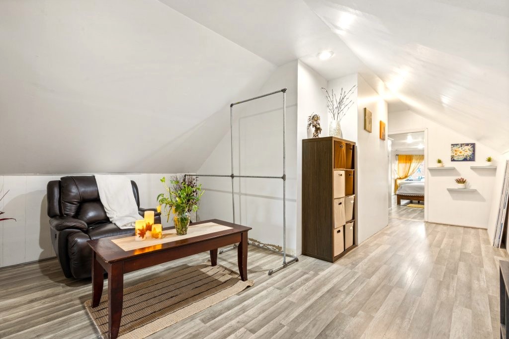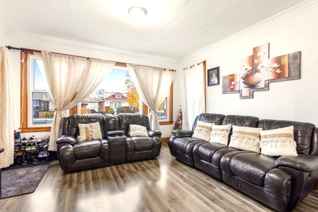 Space, Comfort & Beauty! Move right in. Everything is in excellent condition with NEW roof, NEW windows, and NEW laminate flooring. Main Level has two spacious bedrooms, full bath, separate dining room, and an enclosed porch perfect for an office, sunroom, or flex space. Eat-in kitchen with a generous pantry. Full Finished attic featuring a large bedroom and a cozy relaxation area. Large semi-finished basement offering endless possibilities. Detached 2-car garage. Prime setting on a wide one-way street, just minutes from I-290, schools, shopping, dining, and more. This home combines modern updates with versatile living spaces – ready for you to enjoy!