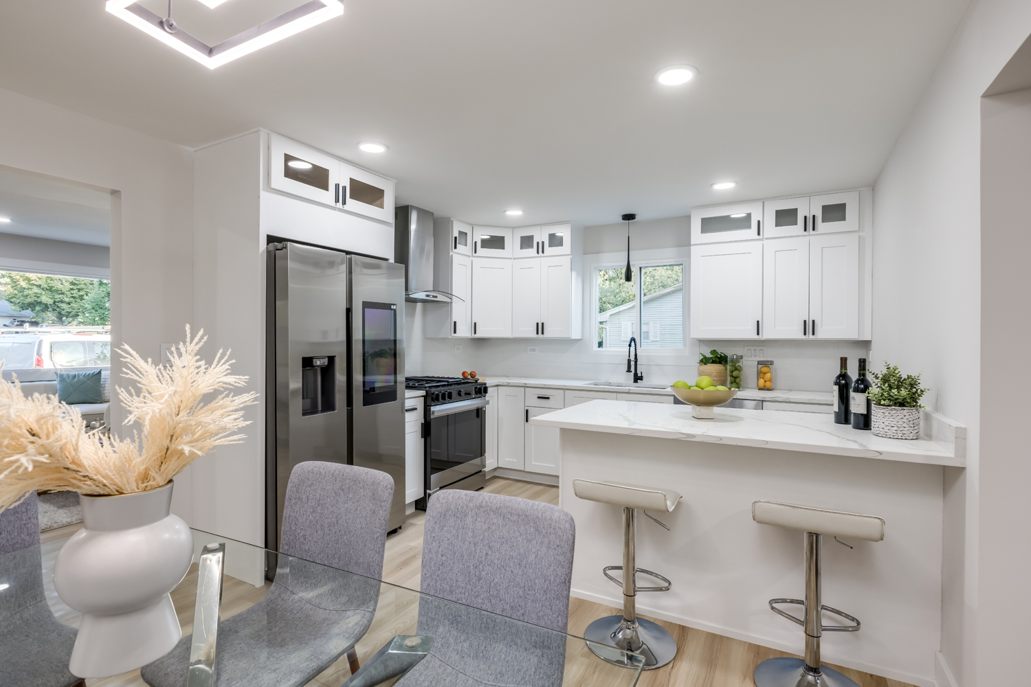 Spacious, fully renovated single-level ranch in a quiet Joliet pocket-featuring 4 bedrooms, 2 full baths, and two separate living rooms for easy everyday living and effortless entertaining. A true primary suite anchors the home with great closet space and a sleek, spa-style bath. The bright chef’s kitchen showcases quartz countertops, full-height backsplash, stainless steel appliances, and a peninsula that flows into the dining and family rooms. Designer lighting, new flooring, and crisp finishes carry throughout. Enjoy a sun room that opens to an oversized yard-perfect for play, pets, and summer gatherings. An attached garage adds convenience. Set on a roomy lot near parks, schools, shopping, and quick access to I-80/I-55-this turnkey ranch blends style, function, and efficiency. Just move in and start living.