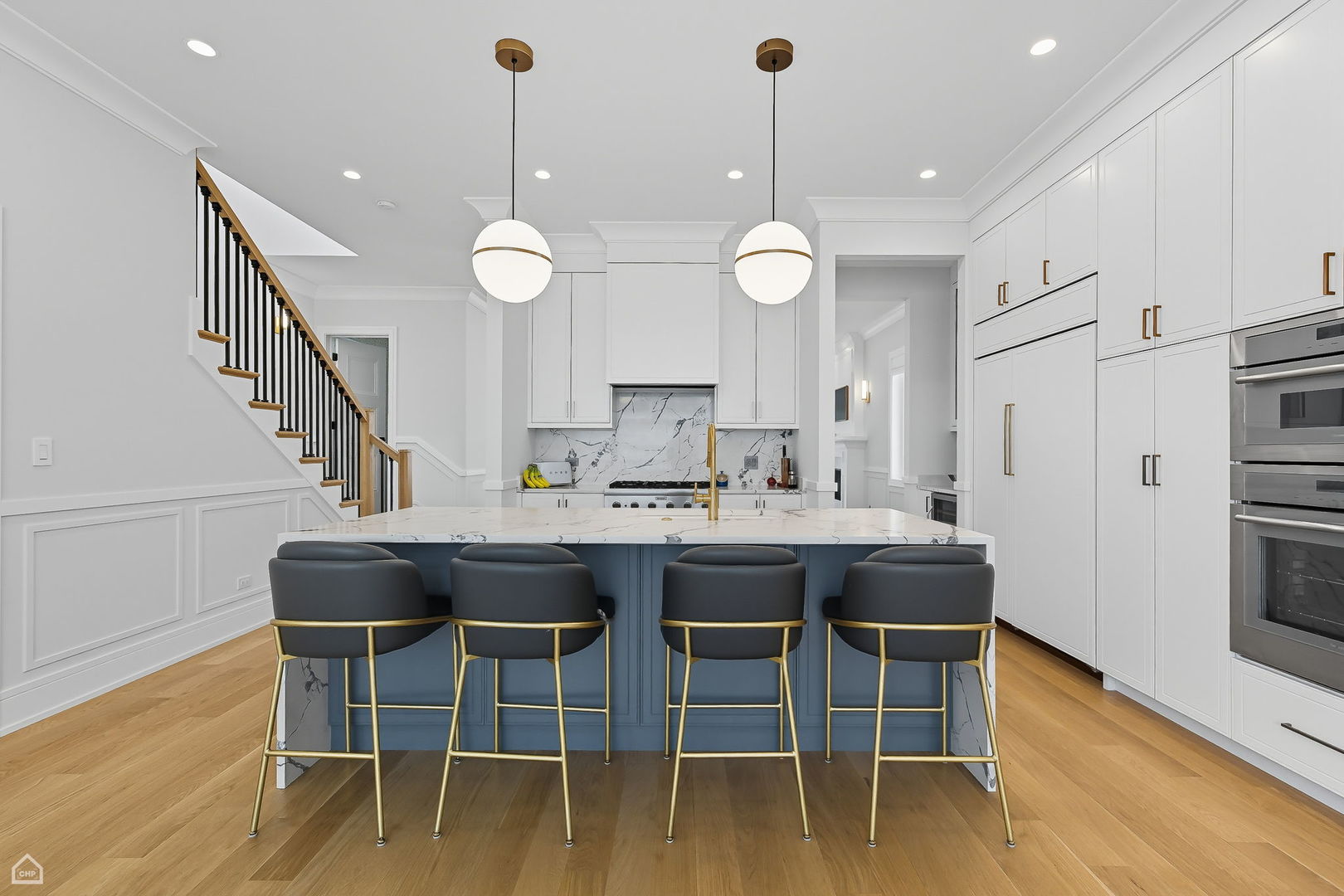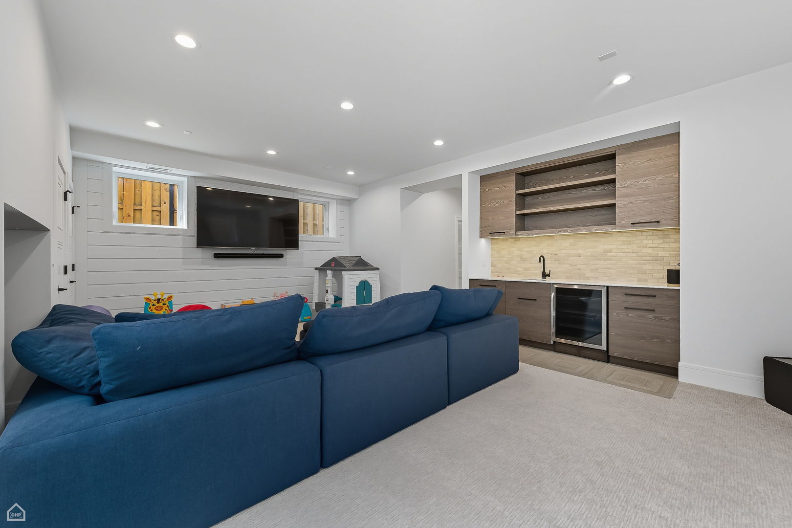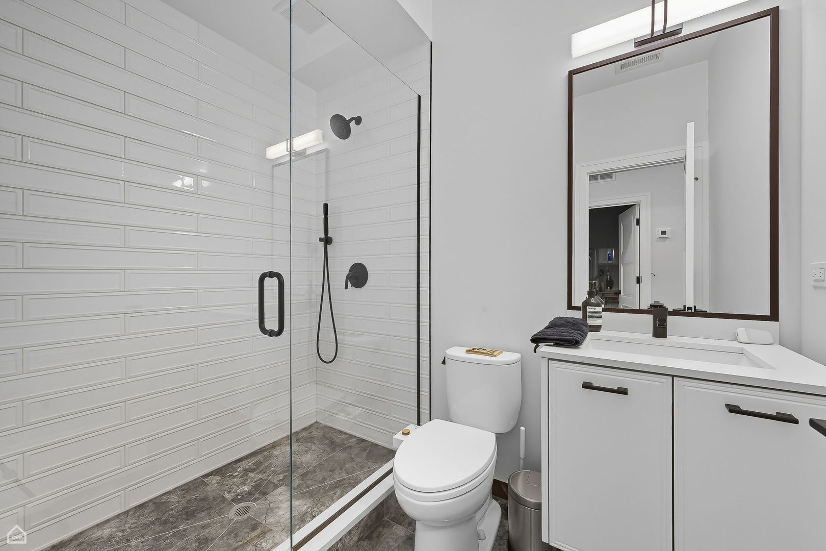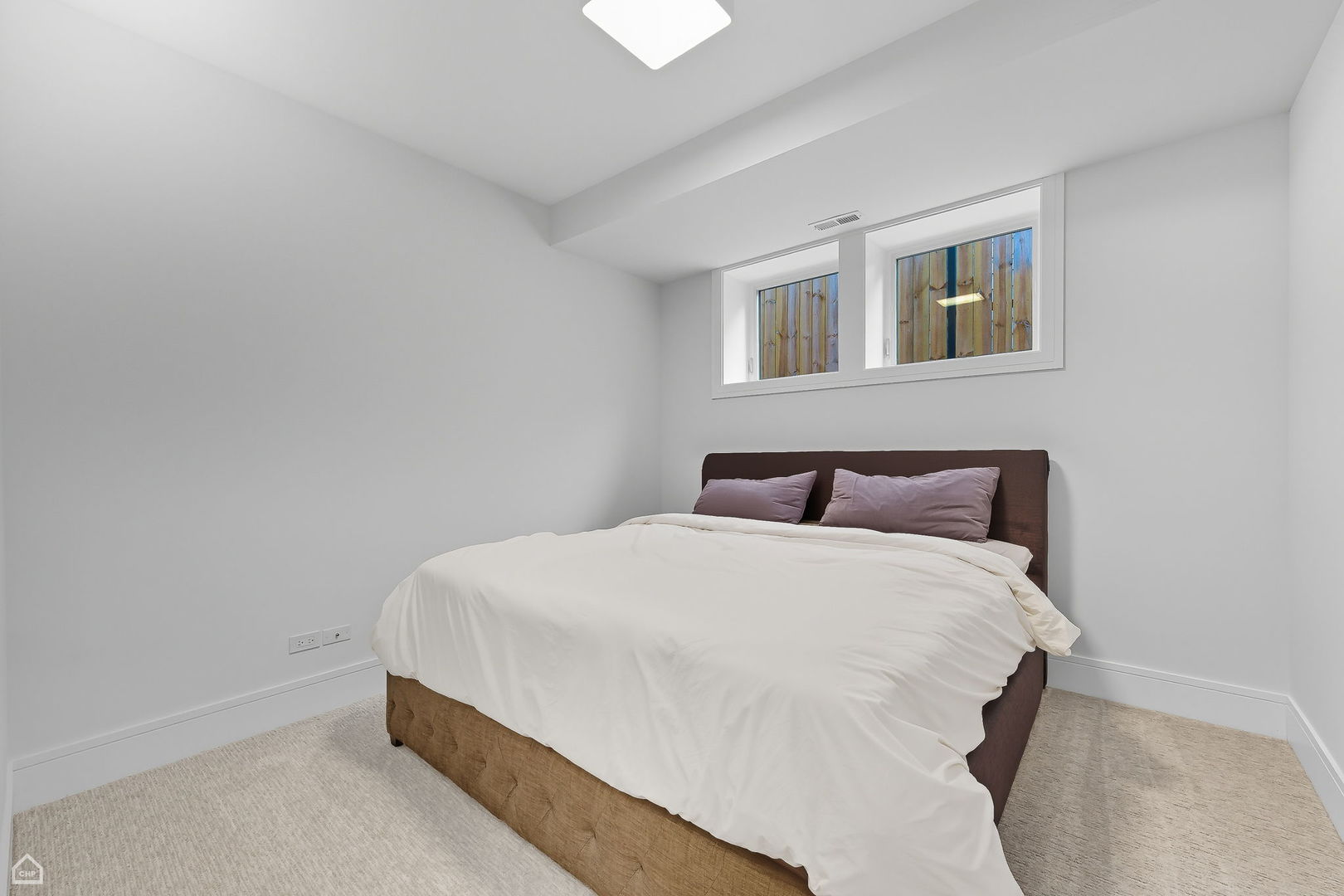 FULL WALK THRU VIDEO ON VTOUR BUTTON – WALK THE HOUSE FROM YOUR CHAIR. Amazing single family home in prime Logan Square location on an extra wide lot. Modern white board and batten facade with black accents and limestone entry. Spacious, extra wide floor plan with 6 bedrooms. Sun filled main level with 10′ ceilings and white oak hardwood flooring. Combined living/dining room with large windows offering ample natural light and wood burning fireplace with gas log. Chef quality kitchen featuring professional grade appliances, large island with bar seating, shaker cabinetry with under counter lighting, quartz counters and backsplash, butler pantry with beverage center, and pantry closet. Adjoining family room with steam fireplace, built-ins, and large windows overlooking the backyard. Spacious primary bedroom features 12′ vaulted ceilings, two walk-in closets, and inspiring master bath with freestanding soaking tub, frameless glass shower, oversized vanity with dual sinks and quartz countertops, and heated flooring. Two additional bedrooms, full bath with dual vanity, tub and heated flooring, laundry with washer/dryer, and zoned heating/cooling complete the upper level. 9ft ceilings in the basement with radiant heated flooring throughout includes recreation room with wet bar + beverage center, two guest bedrooms, full bath, two storage spaces, mechanicals, and second laundry with hook-up and sink. Statement lighting, designer fixtures and finishes, metal railings, coffered ceilings, custom millwork, pre-wiring for surround sound, and skylights. Fully enclosed landscaped yard with rear paver patio and detached two-car garage featuring roof deck with composite decking. Awesome location in Logan Square! Easy access to all your favorite spots for food, entertainment and shopping. Conveniently located near I94, parks and public tran. Close to the Blue Line.