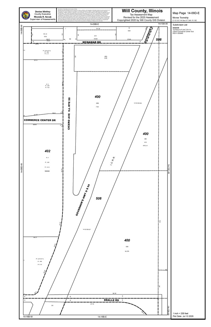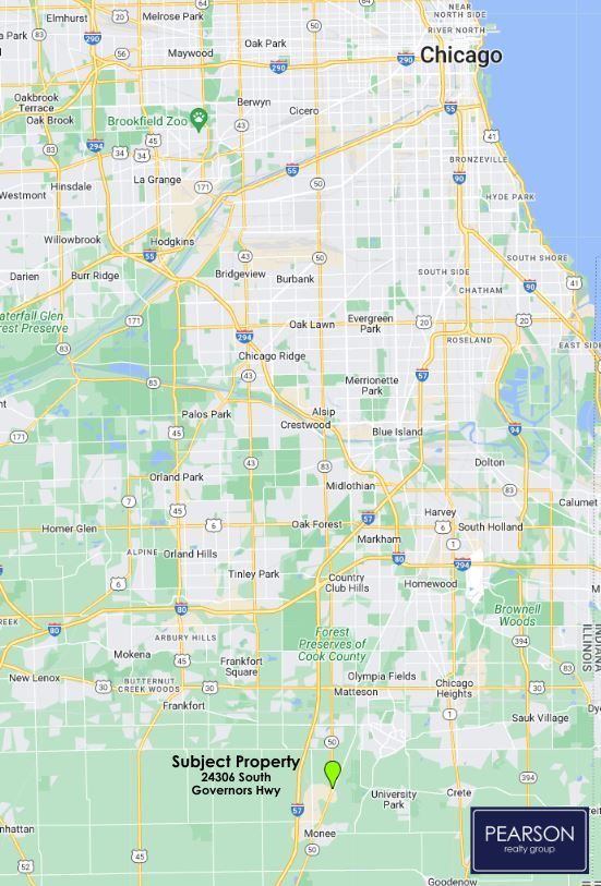 LARGE PRICE REDUCTION ANNOUNCED! +/- 8.73 acres in unincorporated Monee. This is raw land which has been leveled, with all trees/stumps removed, and has been paved over with 1 foot of asphalt grindings. There are currently 2 large shipping containers on the property with another to be added shortly. These will come with the sale, if the new owner wants them. The current owner has also added new fencing around the entire perimeter. The land is a triangular shaped lot and is extremely well situated at the junction of Cicero Ave (Hwy 50) and Governors Hwy. This lot has ingress and egress to/from both Highways. This lot is currently zoned Commercial and could serve many different uses with that designation. The seller has had discussions with the Village of University Park, which borders this property, and they have indicated that they are open to annexing this property and, if needed, change the zoning. Several other parcels in the area have been previously annexed by University Park and rezoned to Industrial to be made part of their Industrial Business District. This is a perfect location for a strip center, other commercial business, or a trucking related business, including truck sales, servicing, and parking. This is located less than 2 miles from the newer Stuenkel Rd. exit off I-57. Corporate neighbors include, 3 large Amazon Warehouses, DSC Logistics, Lineage Logistics, Caldic American, AMST (Kentucky Trailer) Dot Foods, Clorox Distribution, Old Dominion Freight Line, the Pilot Travel Center, and the Petro Travel Store and Blue Beacon Truck Wash, among others. Governors State University is located approximately 1.5 miles to the east, and the towns of Richton Park and Matteson are approximately 5 miles to the north. Peotone (site of Chicago’s 3rd airport ?) is 9 miles south. This property is located approximately 35 miles almost due south of downtown Chicago.