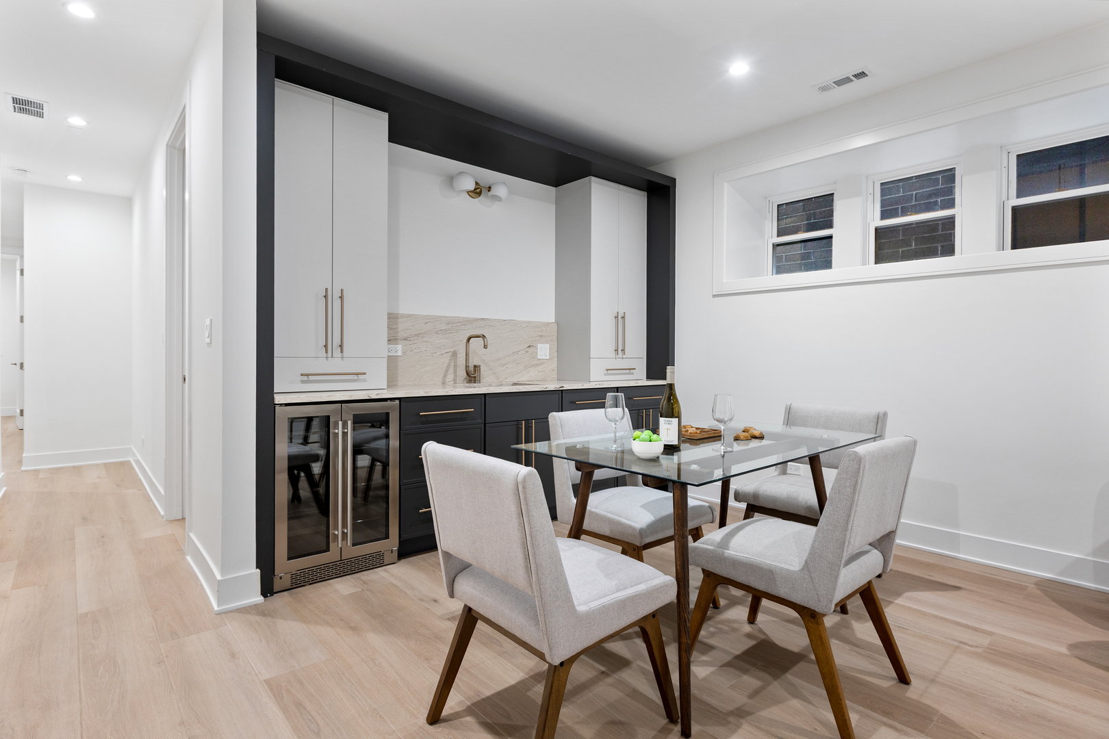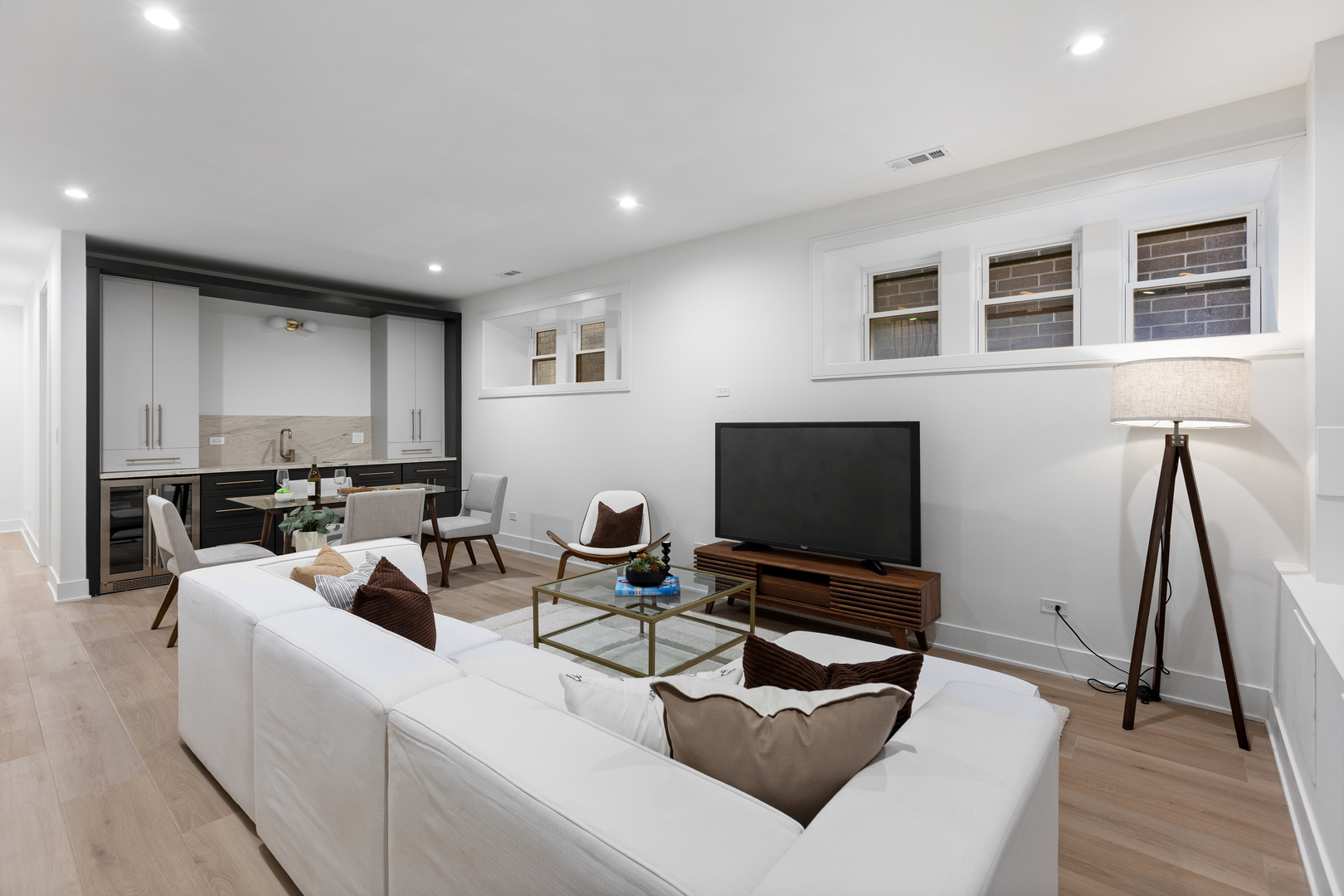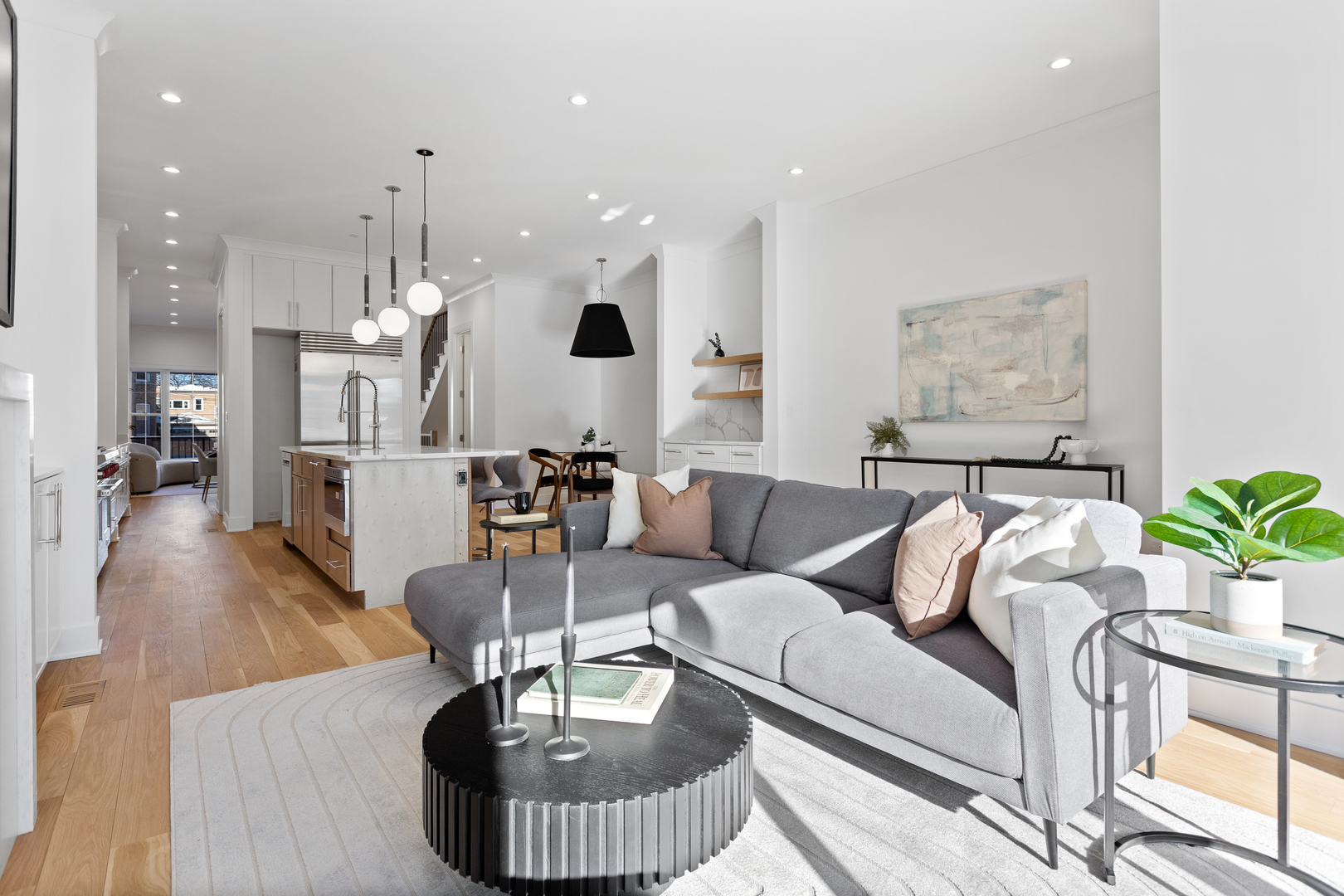 Nestled in the heart of North Center, this exquisite full gut-rehab is now complete! Located within the highly sought-after Coonley Elementary and Amundsen High School districts, this 6 bedroom, 4.2 bathroom residence spans three thoughtfully designed levels, with all new interiors within an ultra wide floor plan offering exceptional space for living and entertaining. Step inside to 10′ ceilings welcoming you into an inviting living and dining area, ideal for both intimate gatherings and larger celebrations. The kitchen is a chef’s dream, featuring a 48″ Wolf range, Sub-Zero refrigerator, quartz countertops, custom white cabinetry, and a striking white oak island. A butler’s pantry, wet bar, coffee bar, and built-in banquette seating add both style and function. Flowing seamlessly from the kitchen, the spacious family room is anchored by a sleek gas fireplace and custom built-ins, with direct access to the back deck-perfect for indoor-outdoor living. A well-equipped mudroom and a stylish powder room complete the main level. Upstairs, the second floor hosts four spacious bedrooms and three full baths, including the luxurious primary suite, a serene retreat featuring dual walk-in closets and a spa-like bath with a dual vanity, rain/steam shower, and a separate soaking tub. The second bedroom enjoys a private en-suite bath, while the remaining two share a Jack-and-Jill bathroom. A convenient second-floor laundry room adds ease to daily living. The fully finished lower level with 9′ ceilings throughout is designed for relaxation and entertainment, featuring radiant-heated luxury vinyl plank floors, a wet bar, and a large rec room. Two additional bedrooms share a Jack-and-Jill bath, while an extra half bath adds to the home’s functionality. Outside, enjoy summer evenings in the private backyard or on the rooftop deck of the newly built two-car garage. Just steps from the riverwalk path and Welles Park plus top-rated restaurants & bars like Kraken Sushi & Gideon Welles, Lincoln Square boutique shopping, and recreational hubs like Lil’ Kickers, IK Gymnastics, and Goldfish & Big Blue Swim Schools, this home offers the ultimate urban lifestyle in one of Chicago’s most desirable neighborhoods.