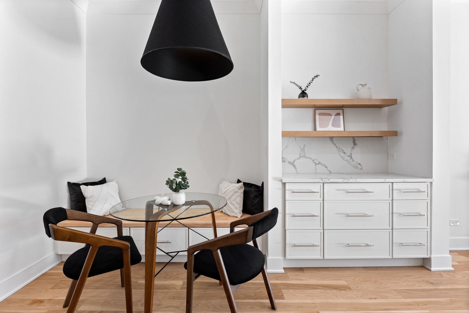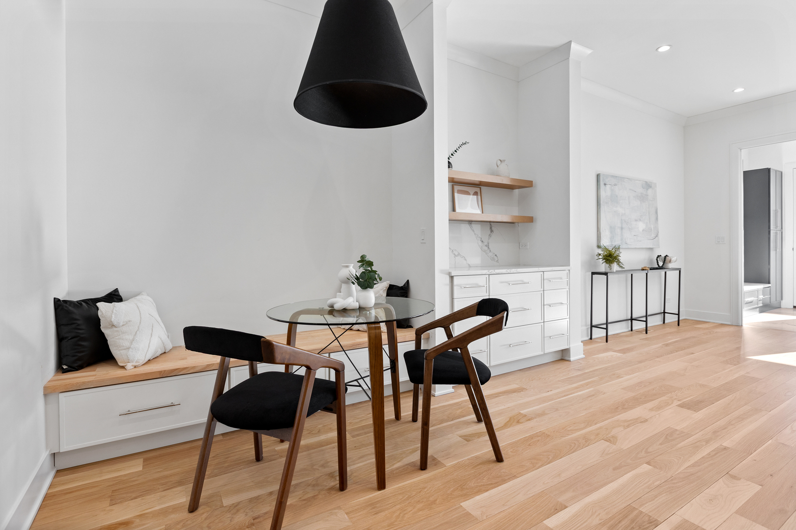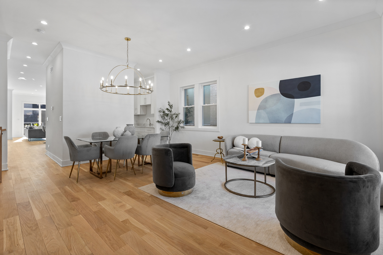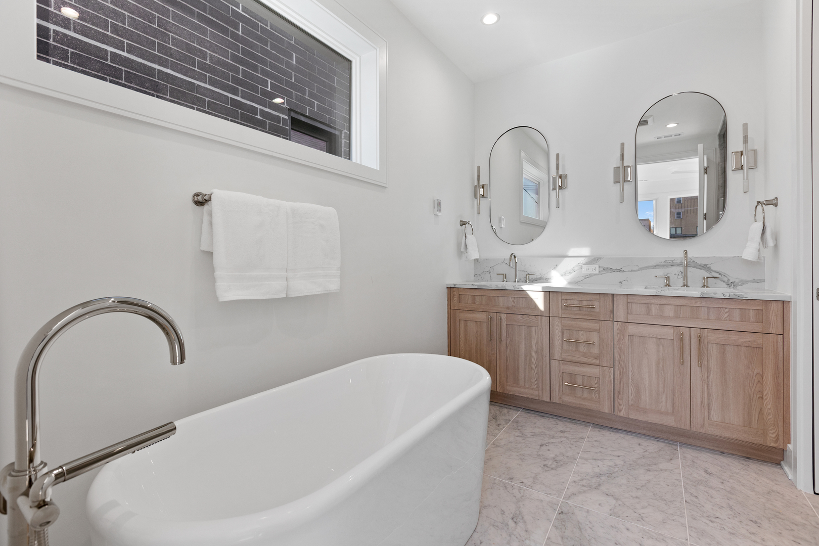 Nestled in the heart of North Center, this exquisite full gut-rehab is now complete! Located within the highly sought-after Coonley Elementary and Amundsen High School districts, this 6 bedroom, 4.2 bathroom residence spans three thoughtfully designed levels, with all new interiors within an ultra wide floor plan offering exceptional space for living and entertaining. Step inside to 10′ ceilings welcoming you into an inviting living and dining area, ideal for both intimate gatherings and larger celebrations. The kitchen is a chef’s dream, featuring a 48″ Wolf range, Sub-Zero refrigerator, quartz countertops, custom white cabinetry, and a striking white oak island. A butler’s pantry, wet bar, coffee bar, and built-in banquette seating add both style and function. Flowing seamlessly from the kitchen, the spacious family room is anchored by a sleek gas fireplace and custom built-ins, with direct access to the back deck-perfect for indoor-outdoor living. A well-equipped mudroom and a stylish powder room complete the main level. Upstairs, the second floor hosts four spacious bedrooms and three full baths, including the luxurious primary suite, a serene retreat featuring dual walk-in closets and a spa-like bath with a dual vanity, rain/steam shower, and a separate soaking tub. The second bedroom enjoys a private en-suite bath, while the remaining two share a Jack-and-Jill bathroom. A convenient second-floor laundry room adds ease to daily living. The fully finished lower level with 9′ ceilings throughout is designed for relaxation and entertainment, featuring radiant-heated luxury vinyl plank floors, a wet bar, and a large rec room. Two additional bedrooms share a Jack-and-Jill bath, while an extra half bath adds to the home’s functionality. Outside, enjoy summer evenings in the private backyard or on the rooftop deck of the newly built two-car garage. Just steps from the riverwalk path and Welles Park plus top-rated restaurants & bars like Kraken Sushi & Gideon Welles, Lincoln Square boutique shopping, and recreational hubs like Lil’ Kickers, IK Gymnastics, and Goldfish & Big Blue Swim Schools, this home offers the ultimate urban lifestyle in one of Chicago’s most desirable neighborhoods.