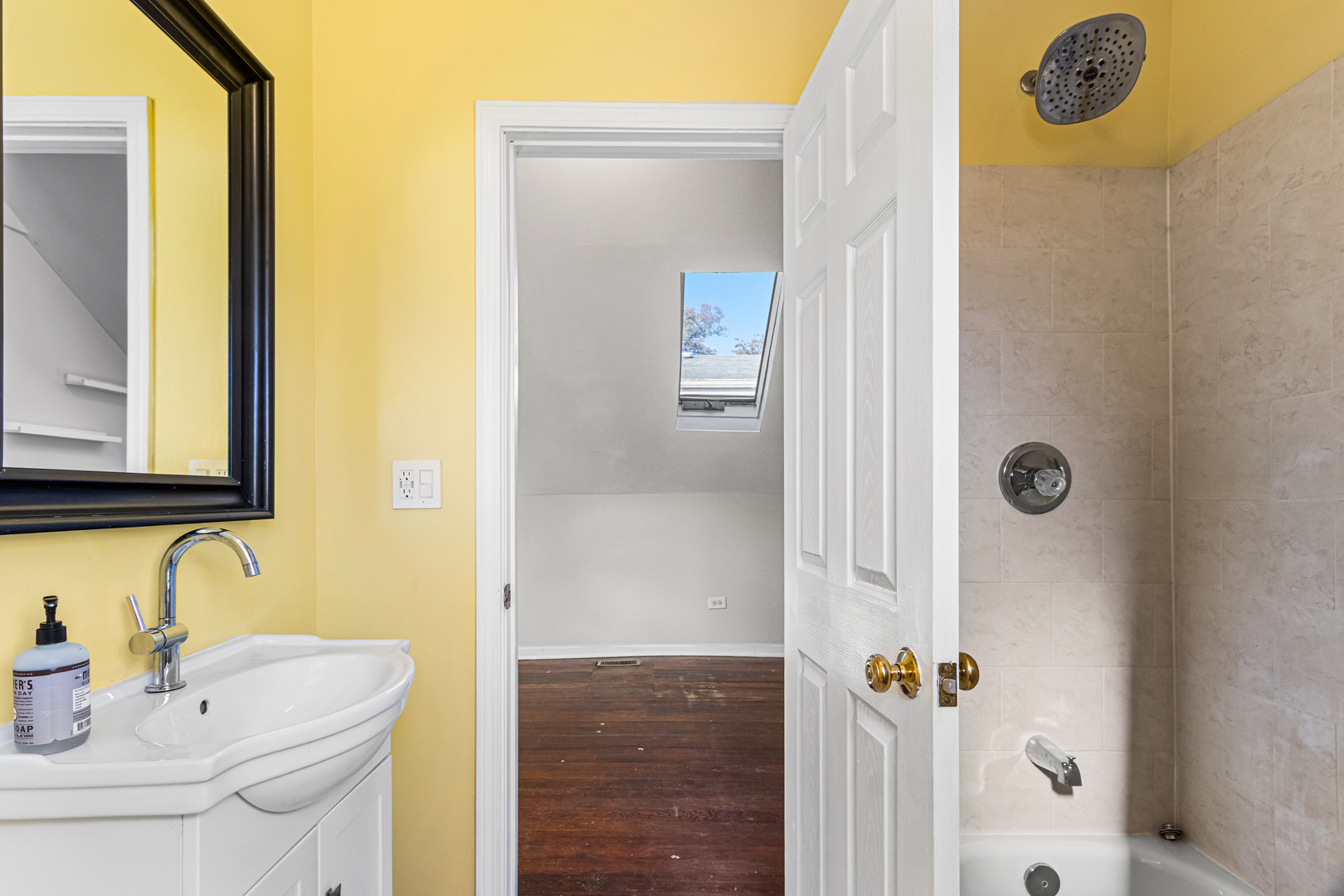 Charming Elmwood Park Home with Great Value & Curb Appeal! Step into this beautifully updated home featuring an open-concept floor plan, perfect for entertaining and everyday living. Enjoy a newer modern decor and fresh paint throughout, complemented by gleaming hardwood floors. The stylish kitchen offers shaker cabinets, granite countertops, stainless steel appliances, and a breakfast bar that opens seamlessly to the spacious living and dining area. With two full baths on the first and second floors and a versatile second-floor den or office, this home provides both comfort and flexibility. Relax on the welcoming front porch or host gatherings on the rear deck overlooking a back yard. Additional highlights include a side drive, 2-car garage, and central air conditioning. Conveniently located – just a short walk to the Metra station, popular Elmwood Park restaurants, and local amenities.
