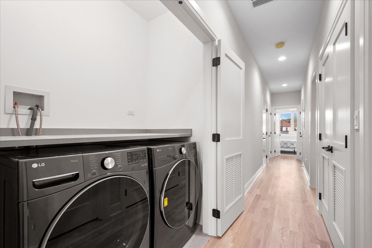 This new construction 3 bedroom, 2 bath home in Lincoln Park offers a functional and efficient floor plan with a chef’s kitchen featuring Thermador appliances, custom cabinetry, quartz and porcelain stone, and a gas fireplace, paired with custom trim and refined craftsmanship. The primary suite includes a spa-like bath with dual vanities, while additional bedrooms provide generous closet space. Outdoor living includes a front-facing deck, along with the convenience of garage parking and private storage. Conveniently located in Lincoln Park near Prescott Elementary, the Clybourn Corridor, and Wrightwood Park, the home offers easy access to public transportation, restaurants, shopping, nightlife, the expressway, and more. A perfect blend of contemporary design and everyday comfort in one of Chicago’s most desirable neighborhoods.