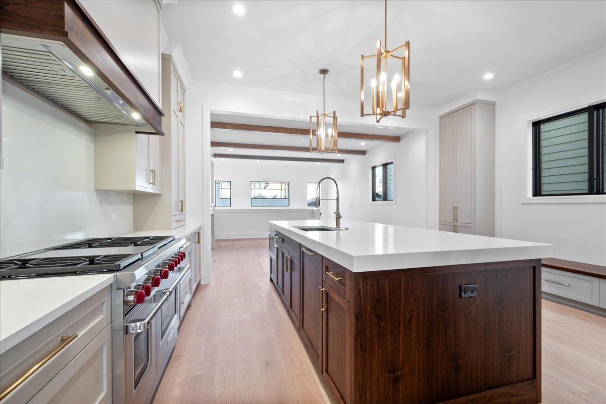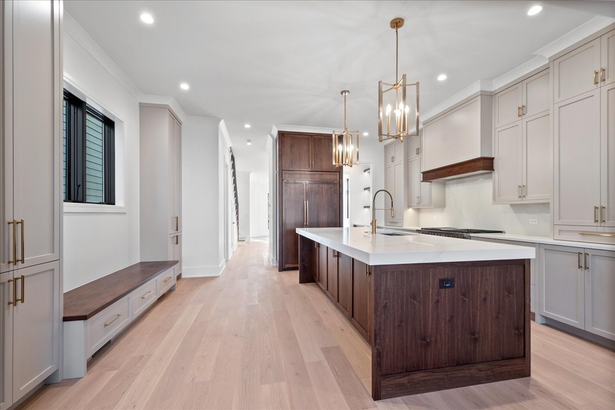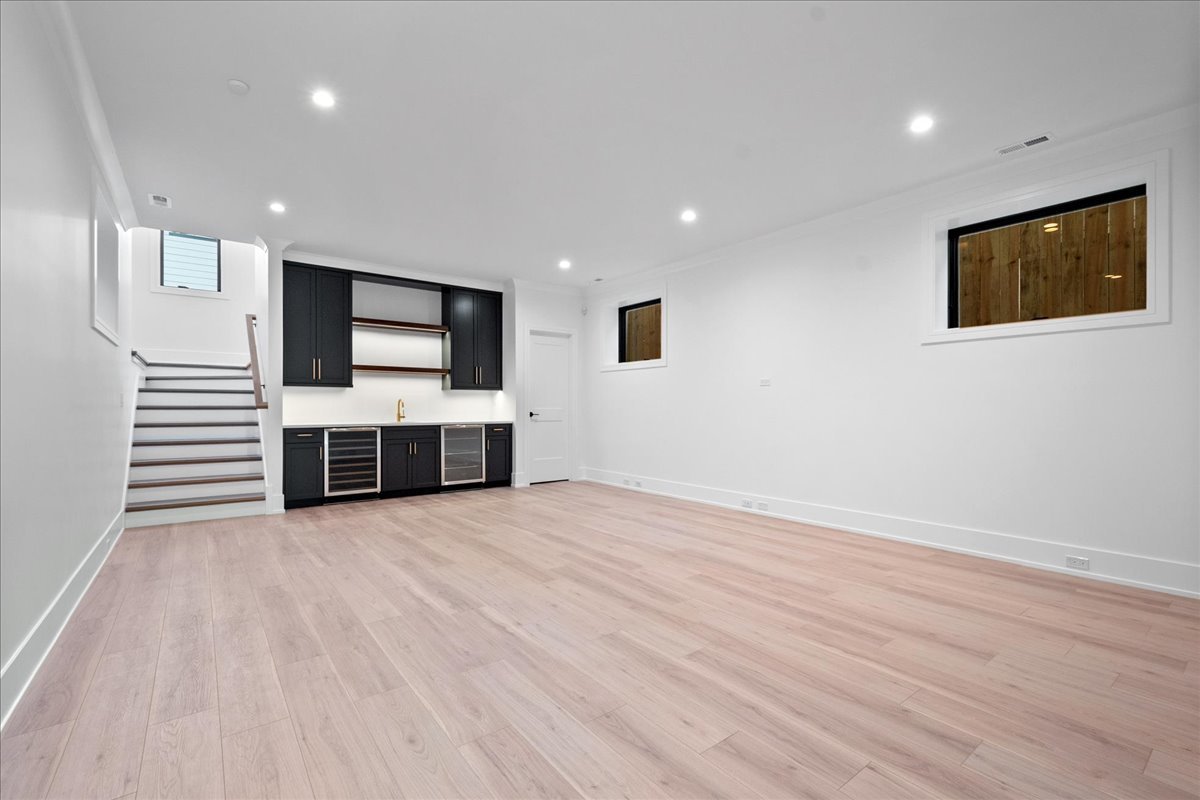 New construction 6 bedroom (4 beds up) / 4.2 bathroom home nestled on a beautiful tree-lined street in sought-after North Center and within top-rated school districts. The first floor opens to a formal living and dining area with a cozy gas fireplace, creating a warm and welcoming ambiance. The stunning chef’s kitchen is a true masterpiece, boasting an oversized island, top-of-the-line appliances, two-tone cabinets, a stylish backsplash, a custom hood, a walk-in pantry, and a separate butler’s pantry complete with a sink and wine fridge. The kitchen seamlessly flows into a spacious family room, where a second fireplace surrounded by built-in cabinets becomes the focal point. The thoughtfully designed second level is anchored by a luxurious primary suite highlighted by cathedral ceilings and dual closets, while the stunning primary bathroom includes all the spa bells and whistles such as an oversized steam shower, a separate vessel soaking tub, double vanities, heated luxury tile flooring, and vaulted ceilings. On the other end of the floor another bedroom suite awaits with a walk-in closet and en-suite bathroom offering a walk-in shower. The third and fourth bedrooms are serviced by a bathroom with dual vanity and a tub/shower combination. A convenient laundry room with front-loading washer and dryer completes the second level. Downstairs, the large recreation room offers additional entertainment space with its built-in wet bar featuring a beverage and wine fridge. Radiant heat throughout the lower level. The fifth bedroom offers a perfect guest room retreat with en-suite bathroom boasting a walk-in shower. The sixth bedroom can function well as a home office or hobby room conveniently adjacent to a half bath. This home also includes a rear patio and a garage roof deck, providing excellent outdoor living and entertaining space. Perfectly situated in a prime North Center location, residents will enjoy proximity to restaurants, shops, parks, and public transportation. Don’t miss the opportunity to make this extraordinary residence your own.