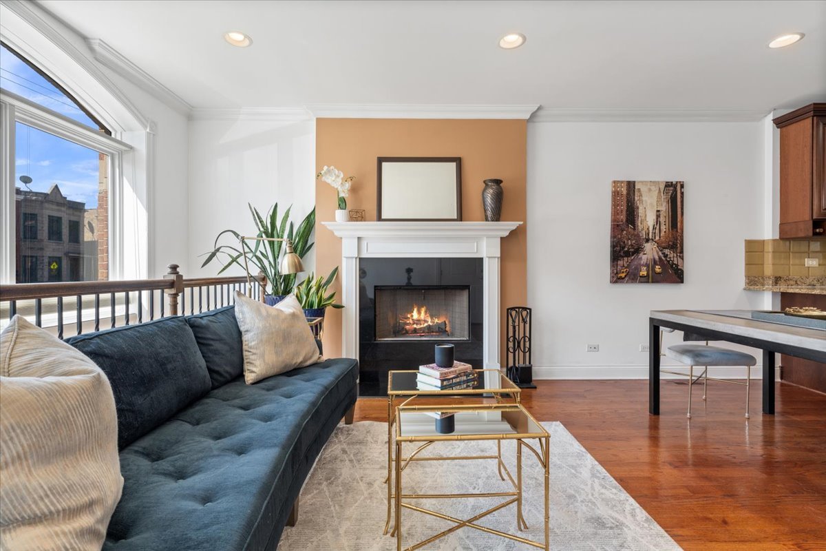 Welcome to your sun-filled sanctuary in the heart of Chicago! This spacious 4 bed/3 bath duplex down lives like a single-family home, offering the perfect blend of luxury and comfort. A dramatic wall of south-facing windows fills the open-concept living space with natural light, highlighting the hardwood floors, crown molding, and cozy fireplace. The chef’s kitchen is an entertainer’s dream, boasting high-end stainless steel appliances, granite countertops, abundant cabinetry, and an oversized peninsula that flows seamlessly into the living and dining areas. The expansive primary suite is a true sanctuary with two custom closets, a private balcony ideal for morning coffee, and a spa-inspired bath featuring steam shower, whirlpool soaking tub, and dual vanities. The lower level impresses with soaring ceilings, a second wood burning gas starter fireplace, a stylish wet bar, and two additional bedrooms with a full bath and generous storage. Perfectly designed for both everyday living and entertaining! This home offers unmatched space, style, and sophistication in a prime city location. In unit w/d, additional storage unit, and one exterior parking space are all included in the price. Walk out your door to Target, shopping, restaurants, and so much more!