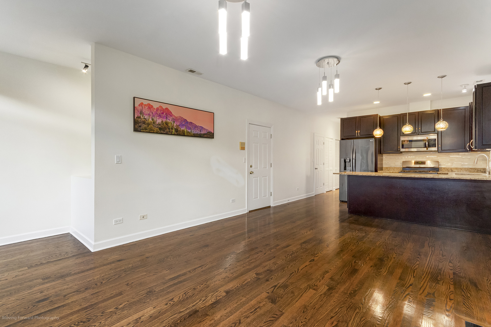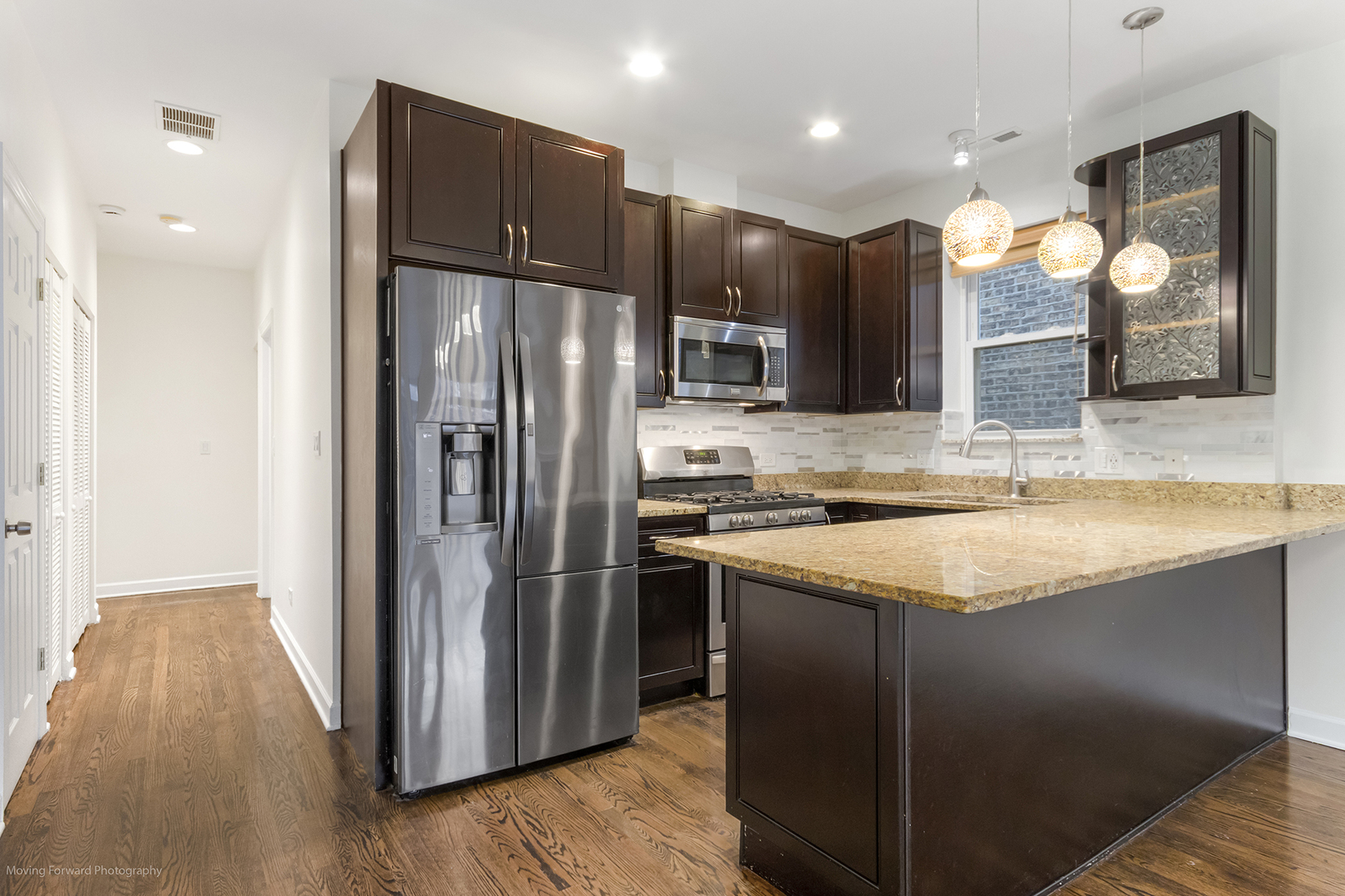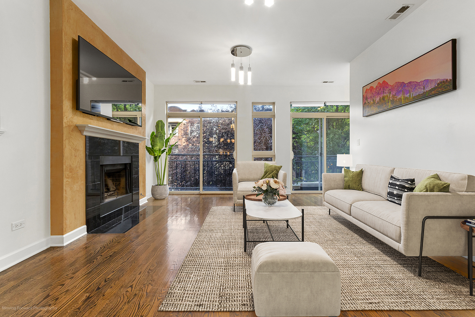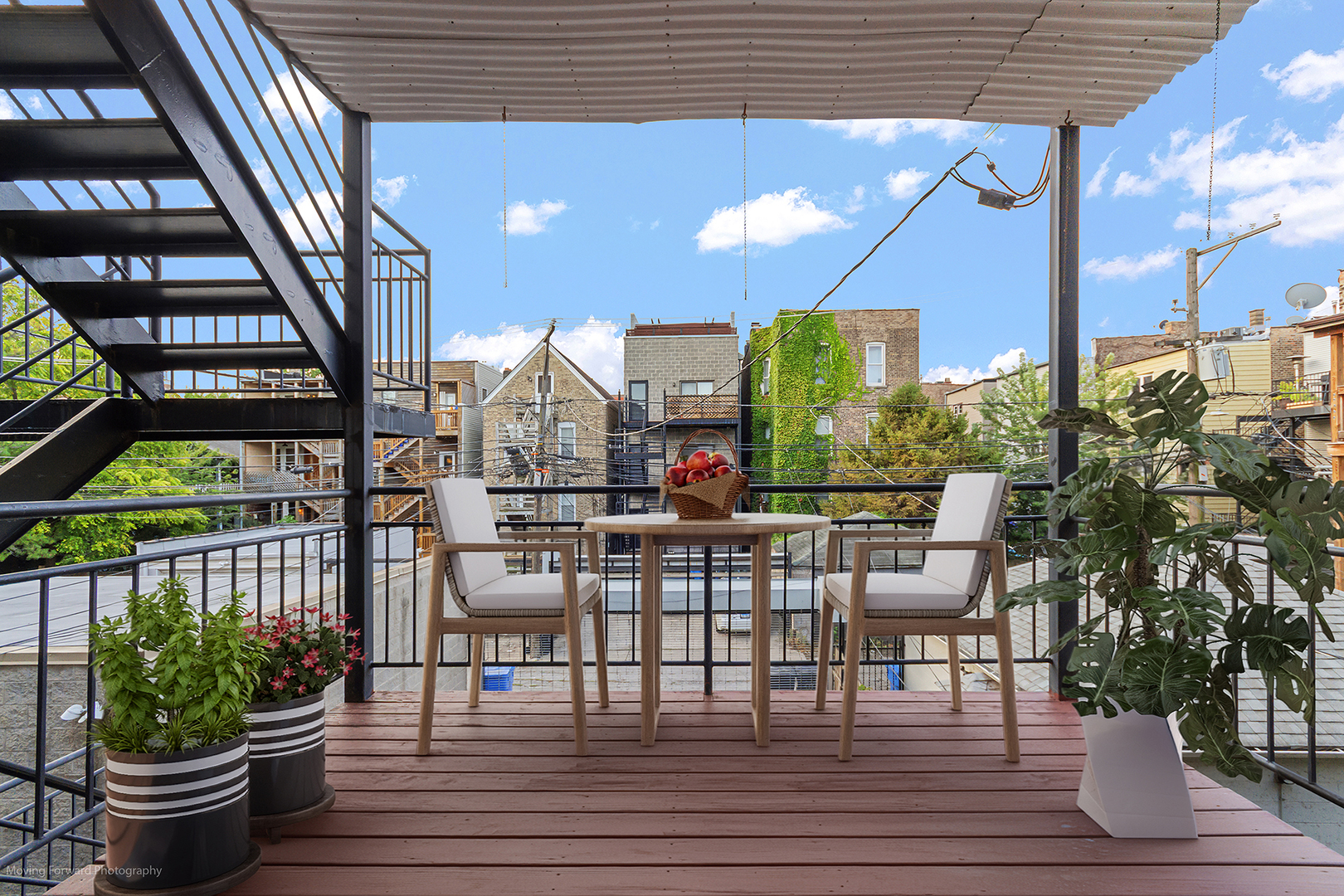 Discover your sanctuary in this beautifully renovated 2-bedroom, 2-bathroom condo located on a serene, tree-lined street in Ukrainian Village. In this cherished West Town/Ukrainian Village neighborhood, you will be just moments away from a variety of dining options, entertainment venues, peaceful parks, and local shops, all contributing to the vibrant community life you deserve. This home is filled with natural light thanks to oversized windows. It features warm dark flooring throughout, a gourmet kitchen with inviting granite countertops and stainless steel appliances, and maple cabinets that make meal preparation a joy. The thoughtful design includes stylish lighting and a comforting wood-burning fireplace, perfect for cozy evenings. The master suite serves as a personal retreat, complete with an oversized jacuzzi tub, a separate shower, and a double vanity. Enjoy your outdoor space on the large back deck, which is ready for moments of relaxation and wired for surround sound. Additionally, you’ll have the convenience of two parking spaces included.
