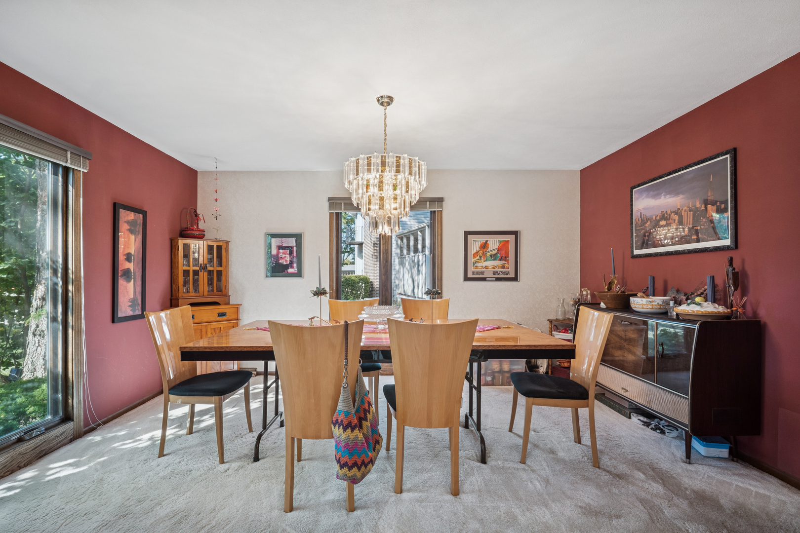 This remarkable 2-story contemporary house is located on a quiet street in a highly desirable neighborhood. This immaculate 4 bedroom, 2.5 bathroom home is perfect for any family. The home offers a spacious dining room and eating area which opens to the family room, both of which are perfect for entertaining. Upon entering the home, you are greeted with a stunning stone fireplace and beautiful beamed ceilings, adding warmth and character to the home. The home features a smart and efficient kitchen with 2 ovens and a combo microwave, convection and air frying oven, perfect for preparing your favorite meals. The first floor laundry makes laundry days more convenient. The home also features a zoom room for conducting virtual meetings and a finished basement with a wet bar, great for media play, work space, exercising, or convertible sleeping space. The home sits on a lush wooded professionally landscaped lot, offering a tranquil escape from the hustle and bustle of everyday life. In addition to its serene surroundings, the home boasts an expansive stamped concrete patio and sundeck, perfect for outdoor parties. The outdoor lighting adds a touch of ambiance to the evening gatherings. For those who appreciate a good game of golf or cross-country skiing, this home is located across from a golf course. Commuting is easy with nearby access to the commuter train and Rte.59 and Rte.20. The home is located in School District 46, making it a viable option for children of all ages. Don’t miss out on this amazing opportunity to make this beautiful and spacious home your own. Call today to schedule a tour!