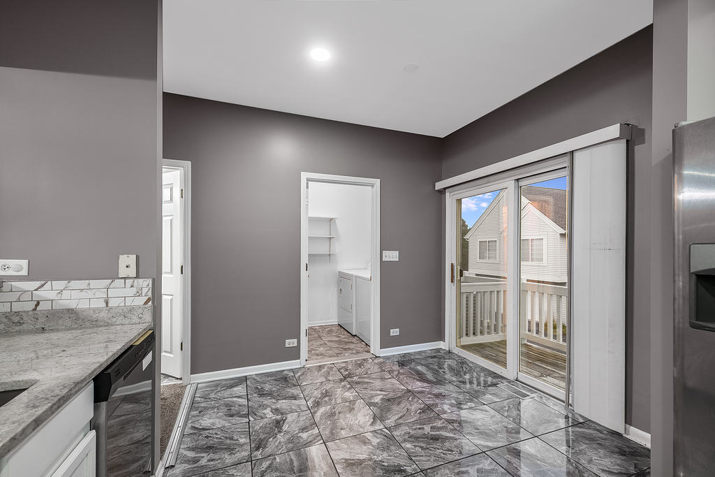 Stunning 3 Bedroom 2.1 bath tri-level townhouse in Mulberry Grove subdivision, located near restaurants, shopping, school, parks, and forest preserve and situated in a quiet cul-de-sac. All stainless steel kitchen appliances. The kitchen offers granite countertops and a sliding door that opens to a balcony. Brand New Microwave (05/21/2025), Gas Range (08/16/2025) & Dishwasher (01/31/2025). All window treatments and light fixtures stay. Lower level offers extra room perfect for family room, extra bedroom, office, or home gym. The neighborhood has several amenities, including a park and tennis courts. Laundry room on the main floor next to the Kitchen!