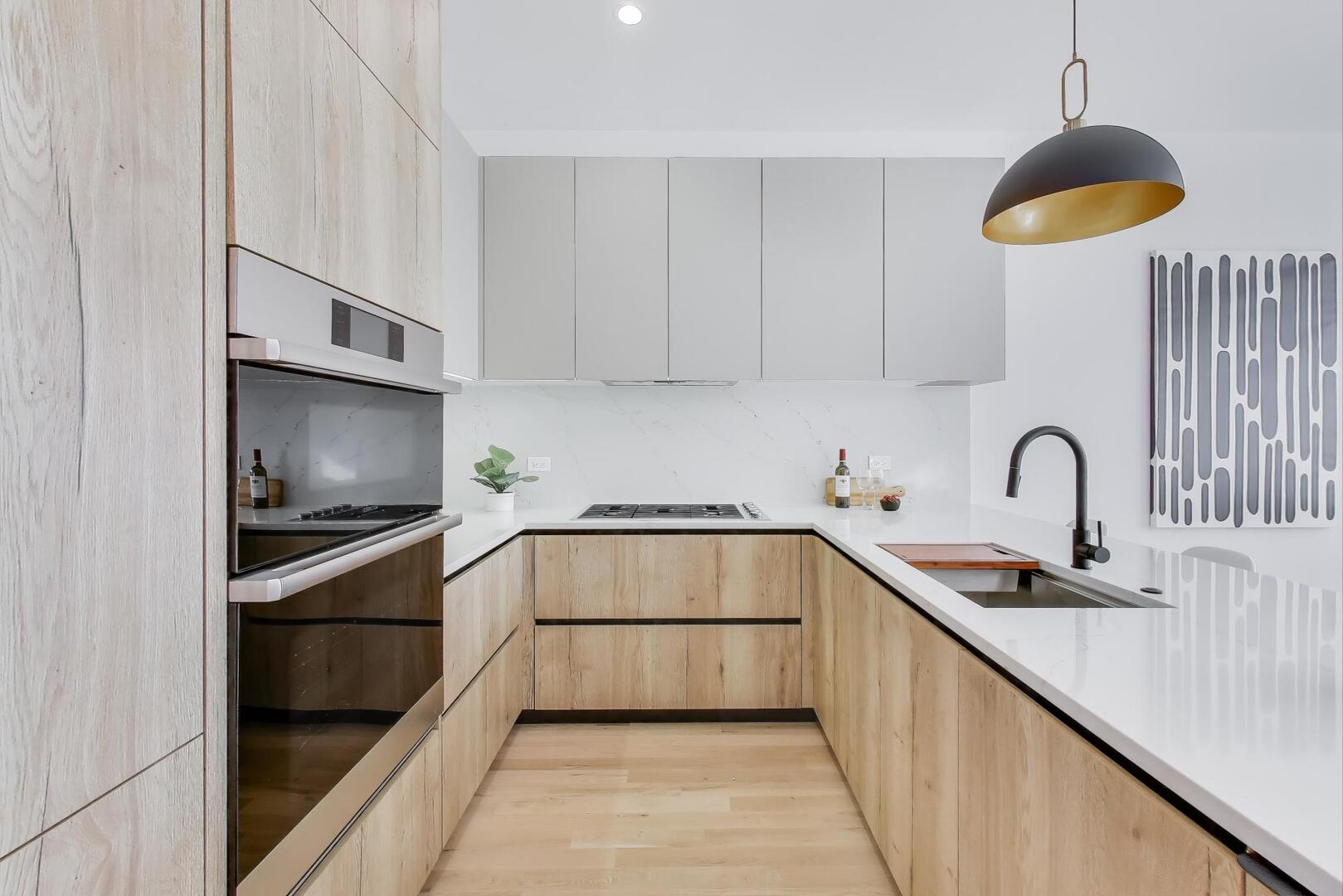 ONLY 2 UNITS LEFT! READY FOR OCCUPANCY Experience modern luxury in this stunning new construction development, perfectly positioned on a south-facing corner lot within an exclusive 6-unit building. Professionally designed PENTHOUSE with top-of-the-line finishes and meticulous attention to detail. This 2 bed/ 2 bath top-floor unit features a stylish chef’s kitchen with custom two-toned cabinetry, quartz countertops, a waterfall-edge peninsula, and high-end integrated appliances. The bright, south-facing living room boasts floor-to-ceiling windows and hardwood floors throughout. The spacious primary suite includes a walk-in closet and a spa-like bath with heated floors and designer tiles, while the second bedroom offers a large closet and access to a beautifully appointed second bath with a floating vanity and tub/shower. Enjoy incredible outdoor space with a front balcony and a private rooftop deck showcasing breathtaking city views and Chicago skyline. Includes 1 garage parking space. Please note: photos are from Unit 2E.