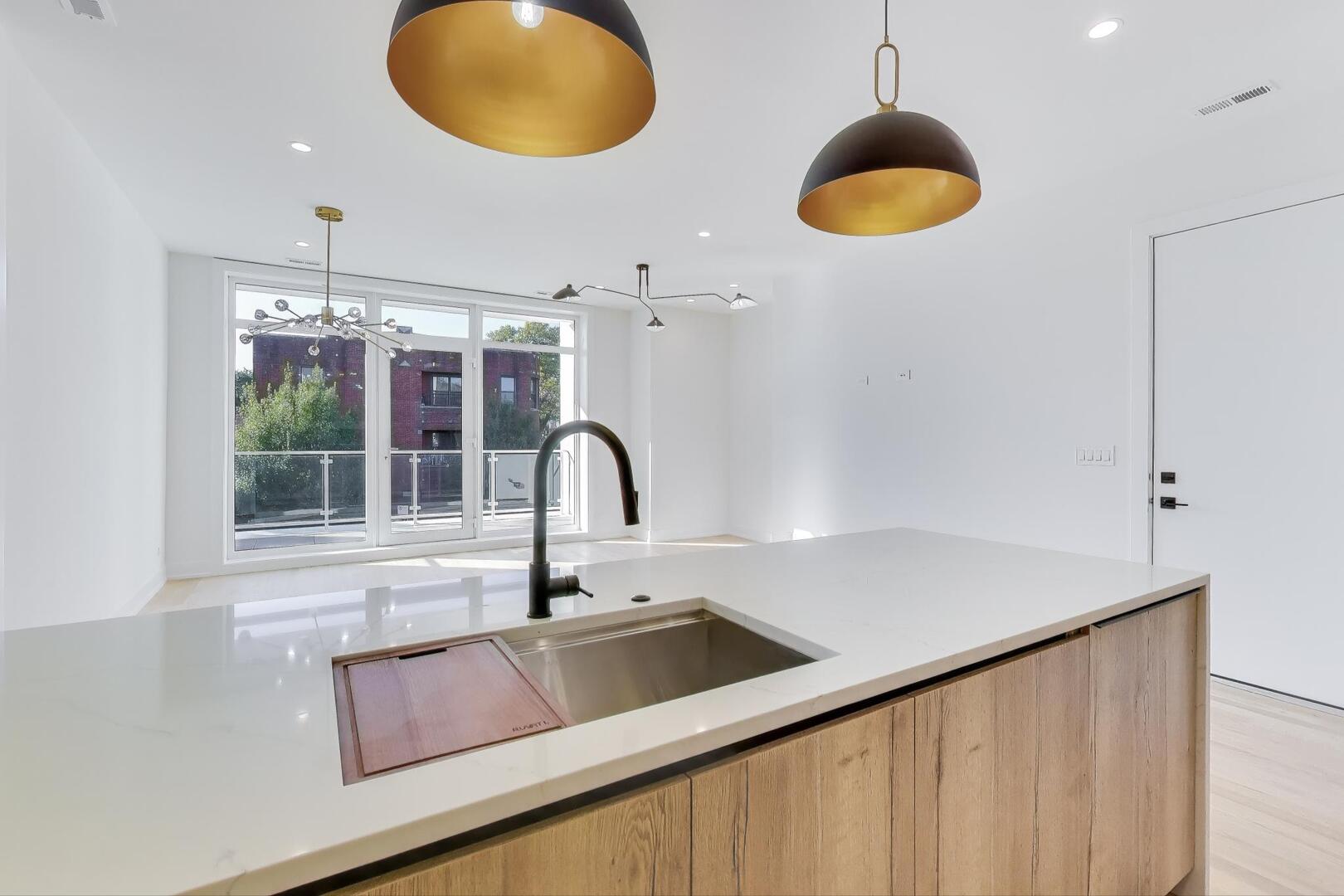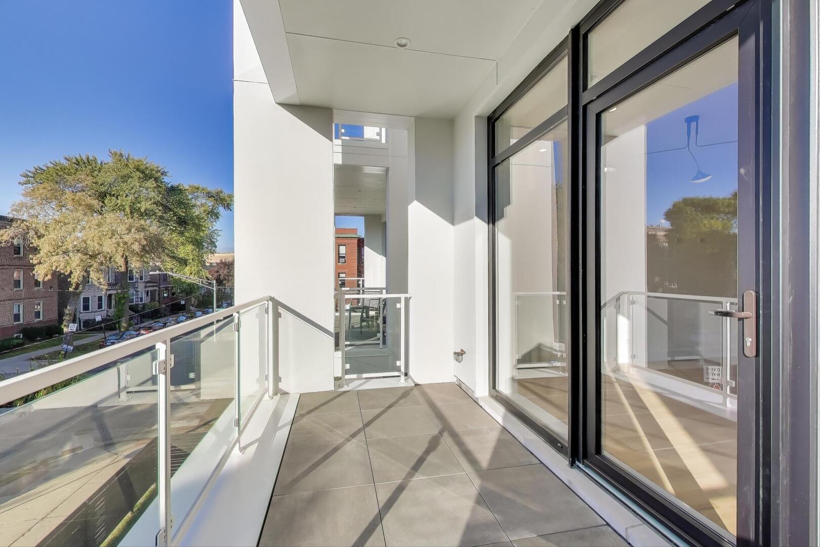 ONLY 2 UNITS LEFT! Experience modern luxury in this stunning new construction development, perfectly positioned on a south-facing corner lot within an exclusive 6-unit building. Professionally designed simplex unit with top-of-the-line finishes and meticulous attention to detail. This 2 bed/2 bath unit features a stylish chef’s kitchen with custom two-toned cabinetry, quartz countertops, a waterfall-edge peninsula, and high-end integrated appliances. The bright, south-facing living room boasts floor-to-ceiling windows and hardwood floors throughout. The spacious primary suite includes a walk-in closet and a spa-like bath and designer tiles, while the second bedroom offers a closet and access to a beautifully appointed second bath with a floating vanity and tub/shower. Enjoy incredible outdoor space with a front balcony. Includes 1 garage parking space.