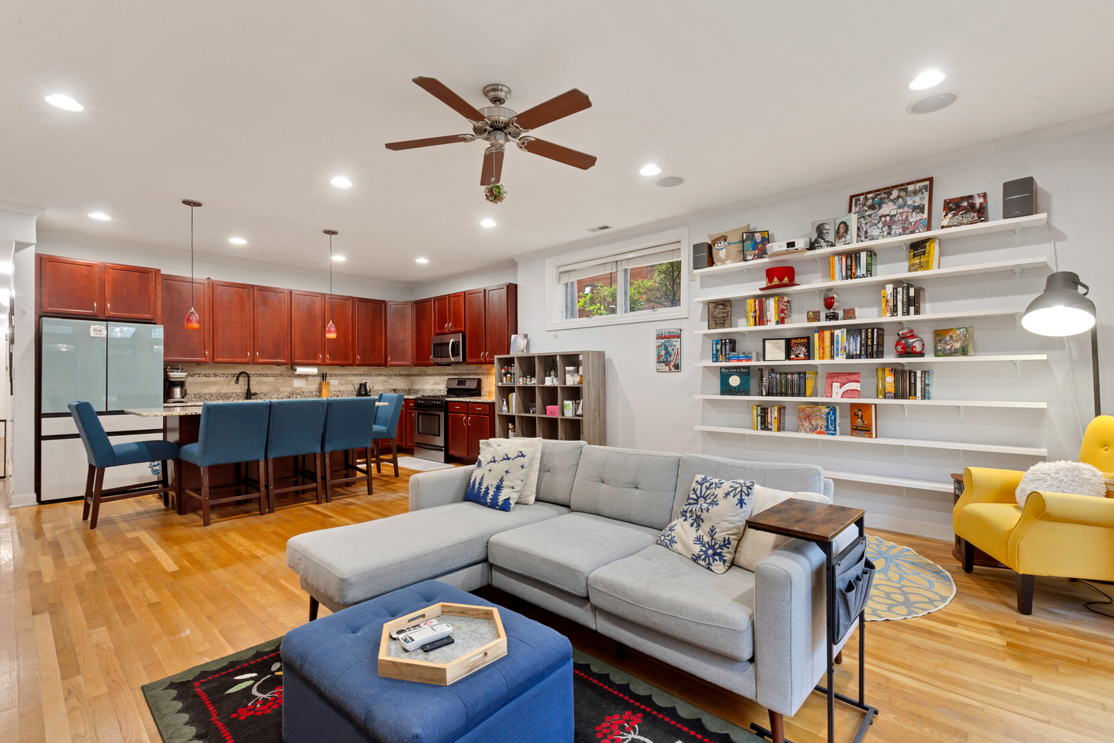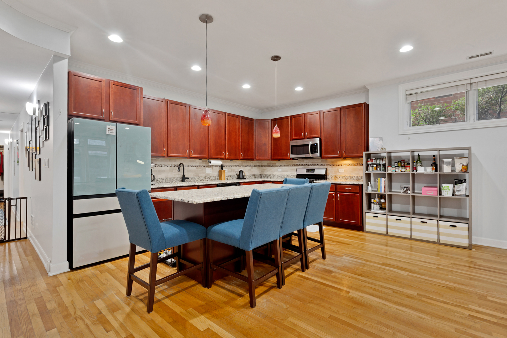 Welcome to this extra wide 2 bed/2 bath unit in Lincoln Square. This unit features high ceilings and large windows which fill this garden unit with light! The HUGE main living space has ample room for a couch and dining table and opens to the large kitchen with TONS of counterspace, cabinets and an island with room for 5 stools. There is also a gas fireplace and cozy patio space off the living room. There is a generous primary suite with well appointed ensuite bathroom, a large second bedroom and beautiful 2nd bathroom. Additionally this condo has built in speakers and a central vacuum system. This well managed 8 unit building is just three blocks to Winnemac Park and 3/4 mile to the Western Brown Line station and all that Lincoln Square has to offer! Off street parking included in the price.