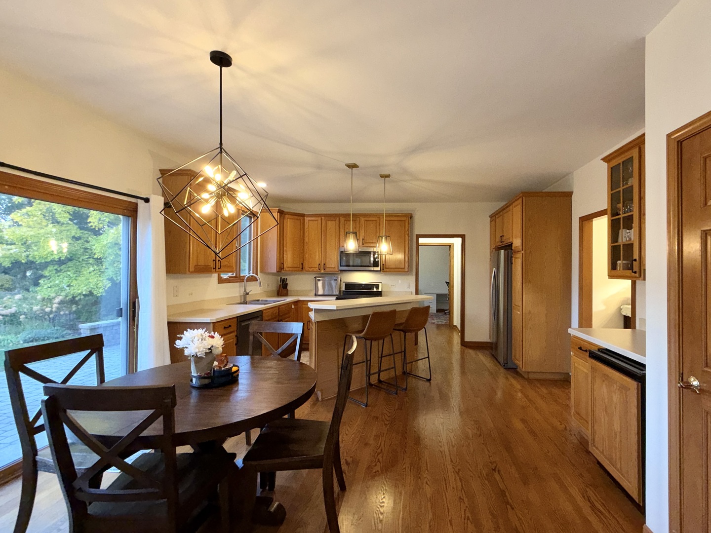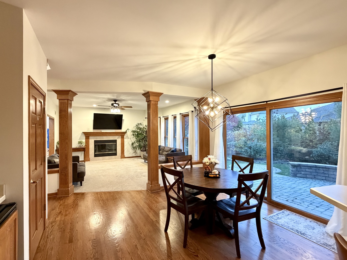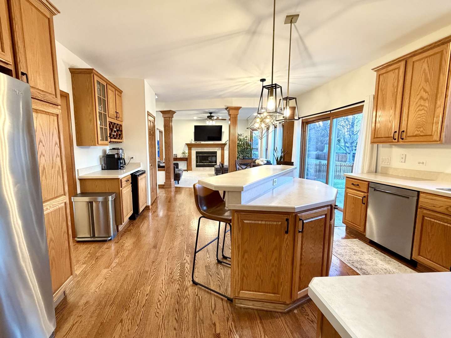 Beautifully maintained 4-bedroom, 2.5-bath two-story home in Plainfield, IL, ideally located near parks, trails, and downtown Plainfield. This inviting home features 9-foot ceilings, an open floor plan, and a spacious kitchen with oak cabinetry, newer stainless-steel appliances, island seating, and a bright dining area that flows into the family room with a gas fireplace. The main level also includes hardwood floors, a private first-floor office, and convenient main-floor laundry. Upstairs, the generous primary suite offers a 22′ x 8′ walk-in closet and a private bath with dual sinks, soaking tub, and separate shower. Three additional bedrooms provide ample space and natural light. Situated on a corner lot 1/3 acre, the fully fenced backyard features mature landscaping and a brick paver patio, perfect for outdoor entertaining. The 3-car garage with tandem fourth bay and 11-foot ceilings offers excellent storage or workshop potential. Full unfinished basement ready for future expansion. Newer HVAC, water heaters, and appliances. A rare combination of space, updates, and location.