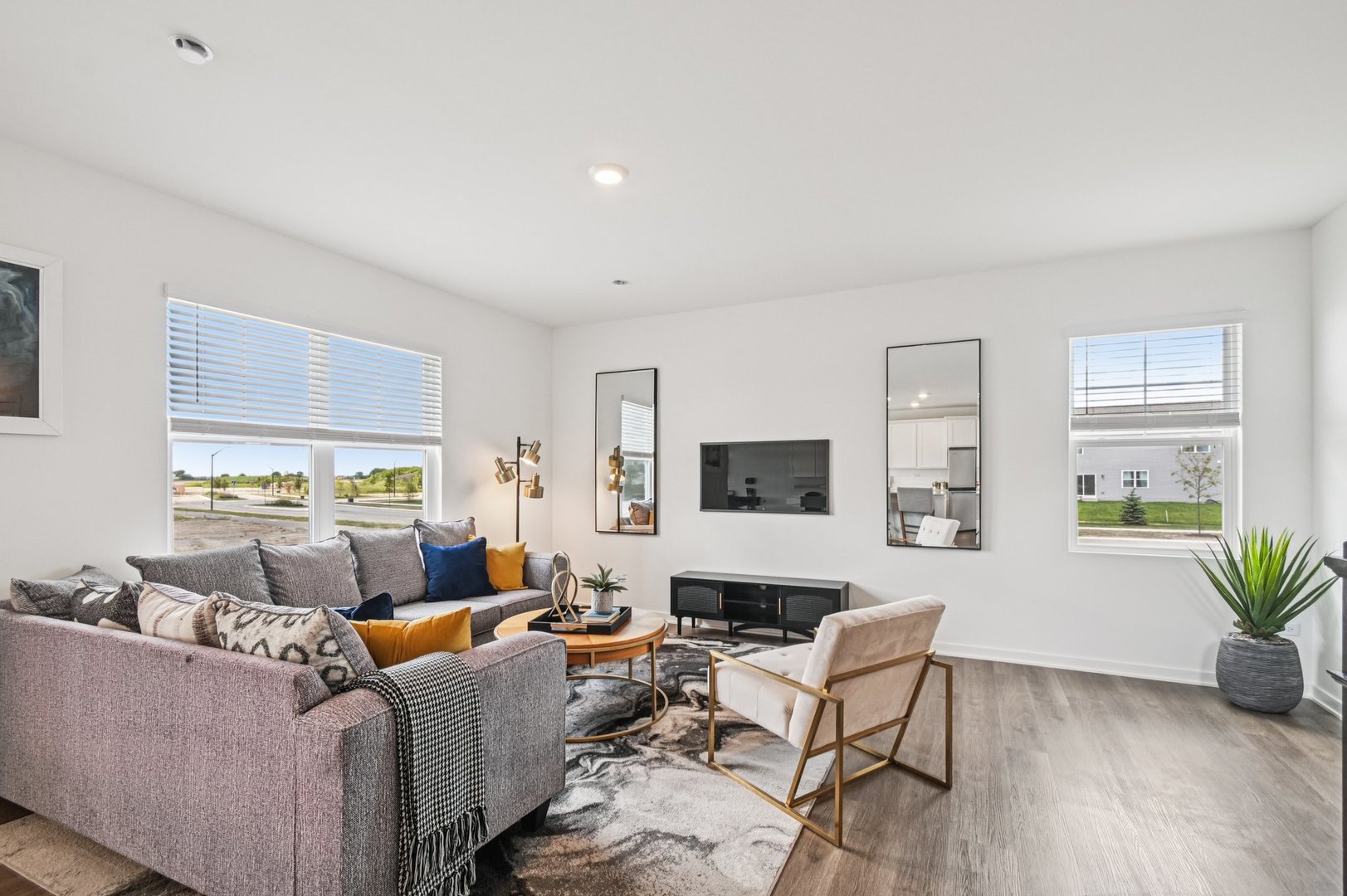 Welcome to 2465 Semillon St. the Sloan floorplan is located at the beautiful amenity filled Sonoma Trails Community in Oswego, IL. Home will be available for Summer move-in. This scenic homesite will include a fully sodded yard and landscaping package. The Sloan plan offers over 1,900 square feet of living space with 4 bedrooms and 2.5 baths. Enjoy this open concept home with natural light throughout your main level. Coming through your front door you’ll find your powder room and coat closet in your foyer. The great room, dining room, and kitchen flow effortlessly together, making it your home the perfect entertainment space. Your kitchen features 42″ designer cabinetry with quartz countertops, and a pantry. Walking up the beautiful rod iron staircase you will find your private oasis with your primary bedroom on its own side of the top floor complete with an en suite bathroom complete with a raised dual quartz vanity and walk in closet, and linen closet. Enjoy the convenience of a top floor walk in laundry room and all secondary bedrooms upstairs with a full second bathroom with a dual vanity and linen closet. Sonoma Trails is located in Oswego, this charming, historic town evokes a family atmosphere with countless options for shopping, dining and entertainment. All Chicago homes include our America’s Smart Home Technology. Builder Warranty 1-2-10. Exterior/interior photos of similar home, actual home as built may vary.