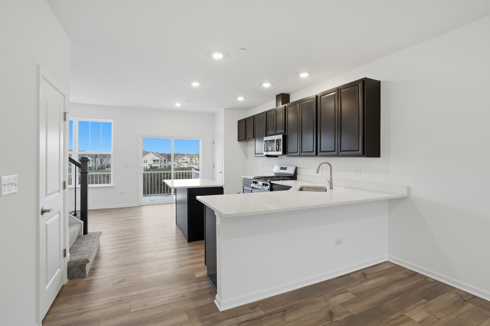 AVAILABLE NOW! Homesite #0604 Discover the Amherst, a refined three-story urban townhome offering three bedrooms, two full baths, and a half bath-perfectly tailored for modern living. The main level boasts a bright, open-concept layout that includes a spacious great room, elegant dining area, and a stunning kitchen with an oversized quartz island, 42″ upper cabinets, and stainless steel appliances. Upstairs, enjoy a serene owner’s suite featuring a walk-in closet and spa-like bath with dual white undermount bowls and a walk-in shower. Two additional bedrooms, and a full bathroom complete the upper level. The entry-level flex space provides versatile functionality – ideal as a home office, workout room, or media space. This home features luxury vinyl plank flooring, quartz countertops, LED lighting, and decorative railings elevate the aesthetic. *Photos are not this actual home* Welcome to Harvest View – Where Nature Meets Community. Harvest View is a thoughtfully designed townhome community nestled in the heart of West Dundee, featuring 4.6 acres of open space and scenic detention ponds that blend natural beauty with everyday living. Just moments away, the West Dundee Riverwalk stands as the crown jewel of the area. This beautifully landscaped riverside path features charming bridges, tranquil views, and a vibrant lineup of community events. More than just a walkway, the Riverwalk offers a lifestyle-inviting you to relax, connect, and immerse yourself in the neighborhood’s picturesque waterfront setting. Outdoor enthusiasts will love living near Grafelman Park and Randall Oaks Park, where hiking trails, wildlife encounters, and green open spaces provide endless opportunities to explore and unwind. Whether you’re seeking adventure or a peaceful retreat, West Dundee has something for everyone-making Harvest View the perfect place to call home.
