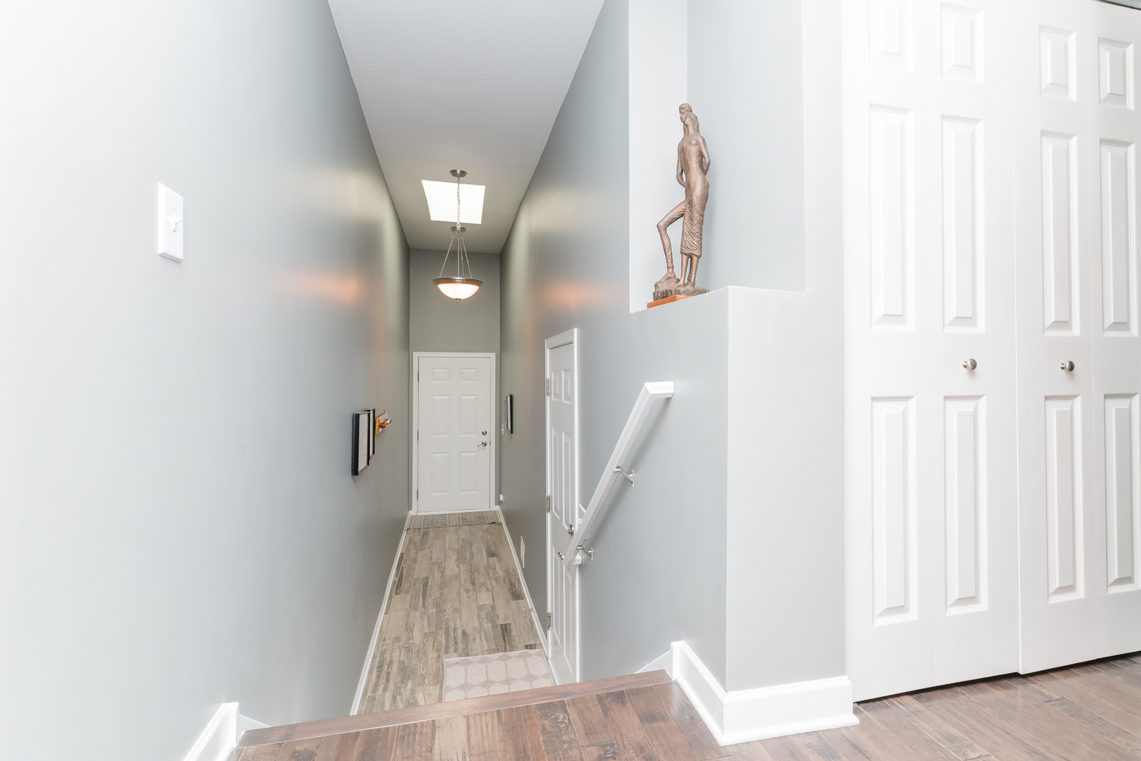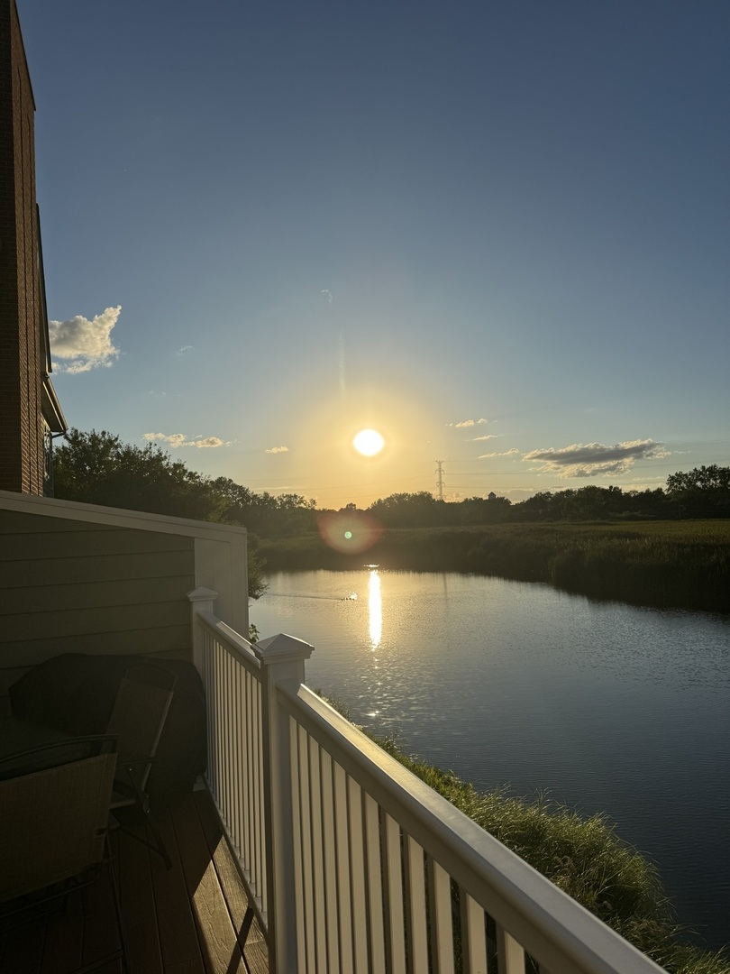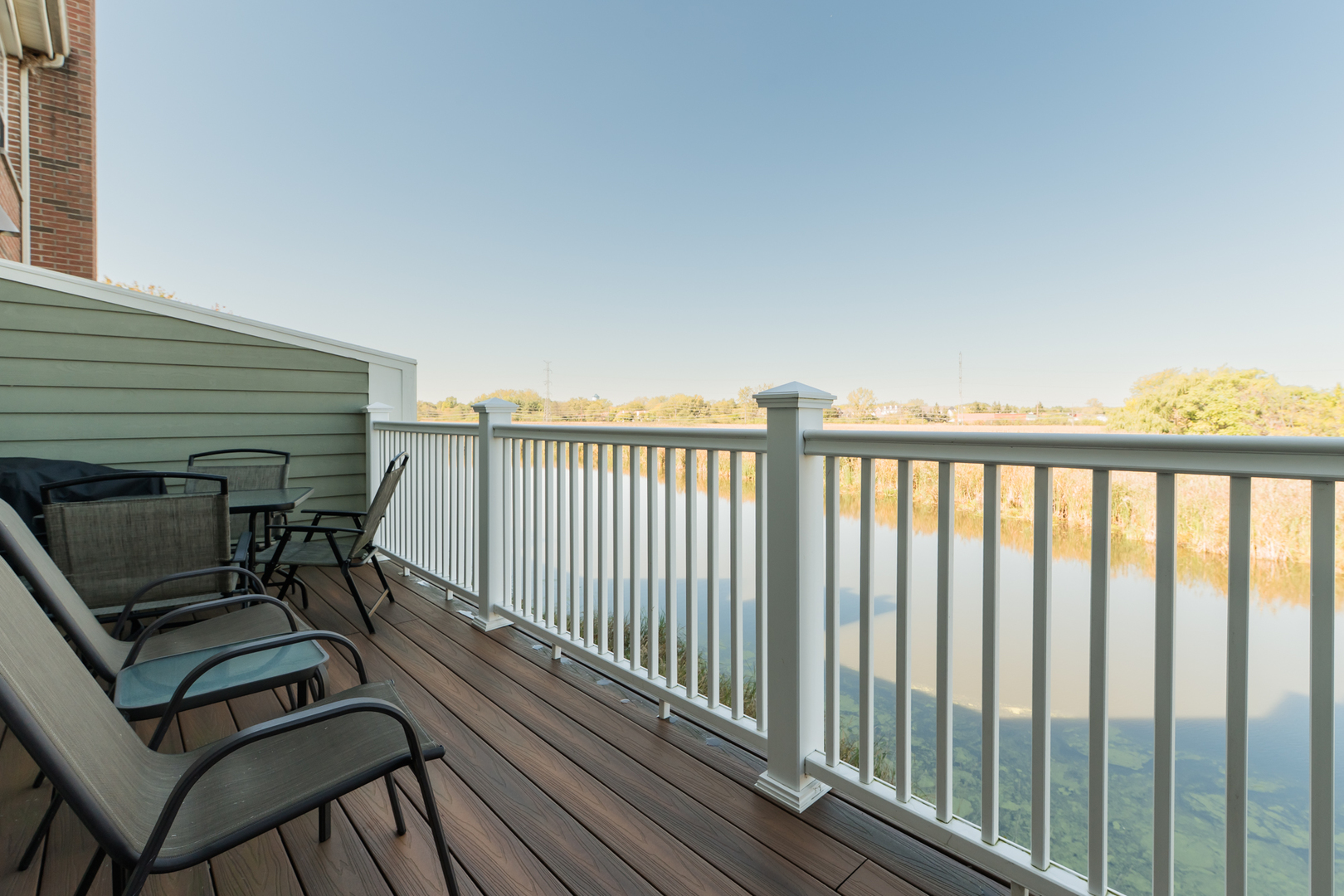 Luxury townhome with pond views! Open floor plan with granite kitchen, 42″ maple cabinets, stainless appliances, tile backsplash, pantry & skylight. Living/dining room features fireplace & sliders to deck overlooking water. Vaulted primary suite with walk-in closet & spa bath. Second ensuite bedroom plus loft & laundry upstairs. Walkout lower level with full bath & walk-in closet-perfect 3rd bedroom or family room. Updates include new flooring, new water heater & custom blinds. Walk to train, shopping & dining!