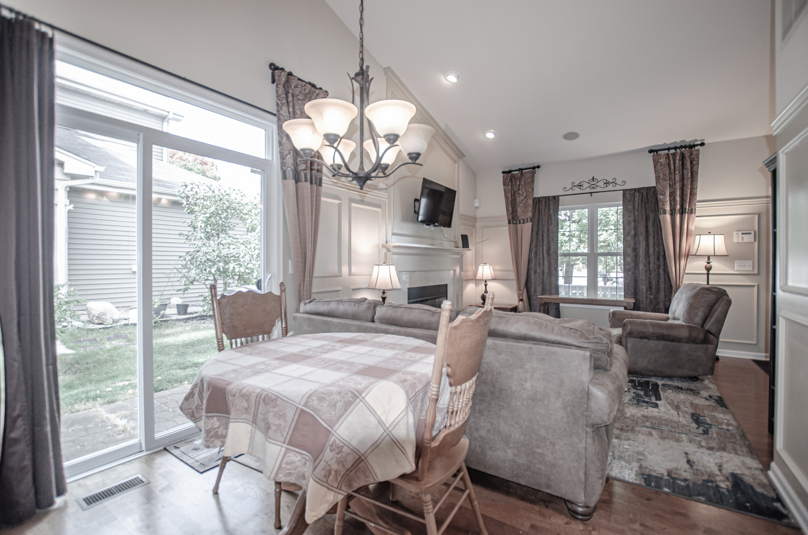 Welcome to this beautifully maintained former model home, a rare find in the desirable community. This Austin ranch-style attached residence offers the perfect blend of comfort, convenience, and style-an ideal fit whether you’re searching for a first home, planning to downsize, or simply want to enjoy a low-maintenance lifestyle without sacrificing space and elegance. Inside, you’ll be welcomed by an inviting open floor plan designed with both functionality and entertaining in mind. The home features 2 spacious bedrooms and 1.5 baths, with thoughtful touches throughout. You’ll notice the cathedral ceilings that create a sense of openness, hardwood floors that bring warmth and character, and custom window treatments that complement the professionally designed decor. Built-in features add charm and practicality, while the gas fireplace in the living area sets the perfect ambiance for cozy nights at home. The heart of the home is the dining room, where a sliding glass door opens to a brick paver patio and side yard, extending your living space outdoors for barbecues, morning coffee, or simply enjoying the fresh air. The second bedroom, which can also be used as a den or home office, features its own sliding door leading to a private 10×10 wood deck, offering yet another option for relaxation and outdoor enjoyment. Beyond the home itself, this vibrant community provides an array of amenities to enhance your lifestyle. You’ll have access to a clubhouse, playground, tennis courts, and swimming pool, ensuring there’s something for everyone to enjoy-whether it’s staying active, socializing with neighbors, or entertaining guests. Perfectly located near shopping, dining, and major transportation routes, this home offers both convenience and charm. It’s not just a place to live, but a place to thrive. Don’t miss the opportunity to make this stunning property your own. Come see it today before it’s gone!