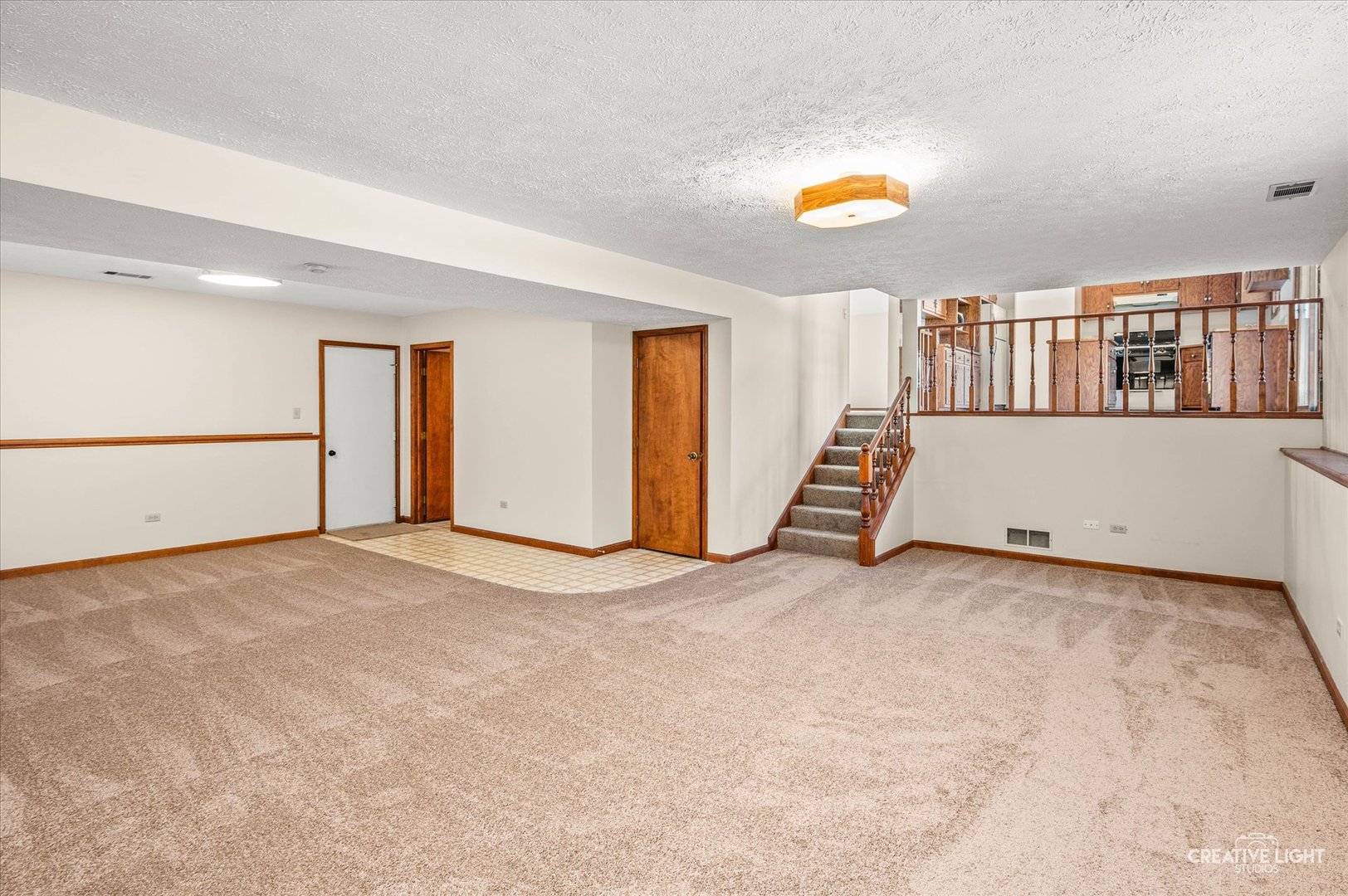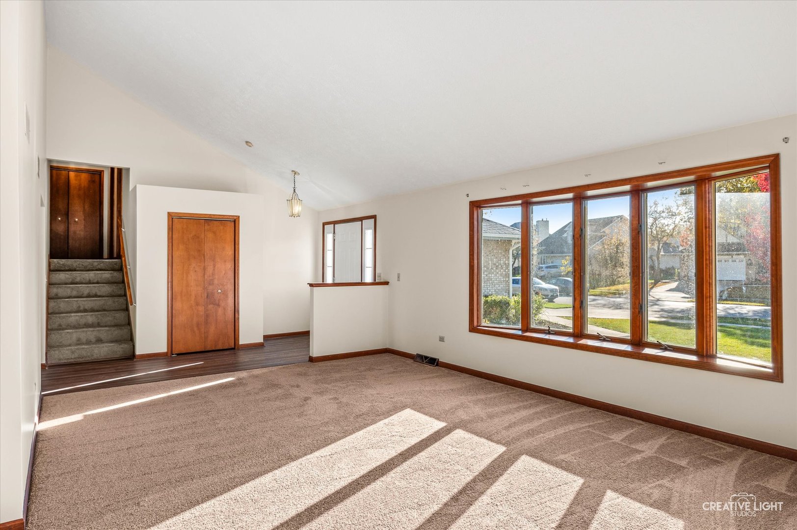 Step inside this inviting home featuring a terrific open floor plan and new flooring throughout. The vaulted living room showcases a striking bow window that fills the space with natural light, while the vaulted dining room, which overlooks the backyard, is perfect for entertaining or everyday living. The sunny eat-in kitchen offers ample space for dining and features a sliding glass door leading to the patio, making outdoor access a breeze. Relax in the spacious family room, complete with a raised-hearth brick fireplace, large windows with backyard views, and convenient access to the second full bath, 2-car garage, and basement, which is just waiting for your finishing ideas! Upstairs, the primary bedroom features a walk-in closet and a private ensuite bath. The two additional generously sized bedrooms each include spacious closets and share a full hall bath. Enjoy a large backyard perfect for gatherings, gardening, or simply relaxing outdoors. All this in a fantastic location within the popular Indian Oaks Subdivision, no HOA fees! You’ll love being able to walk to Wallin Oaks Elementary, Ira Jones Middle School, and the Avery YMCA. Plainfield North High School! Plus, Settlers’ Park and Downtown Plainfield are just minutes away.