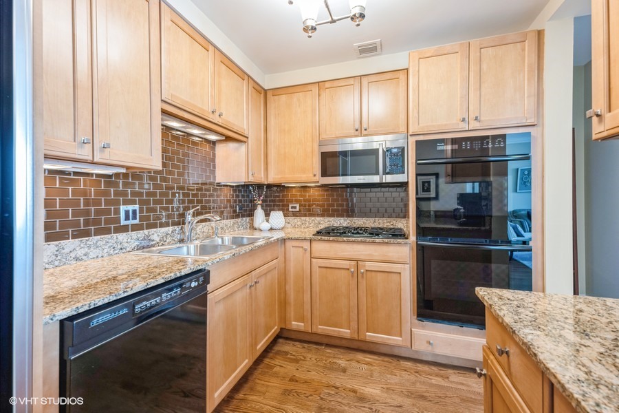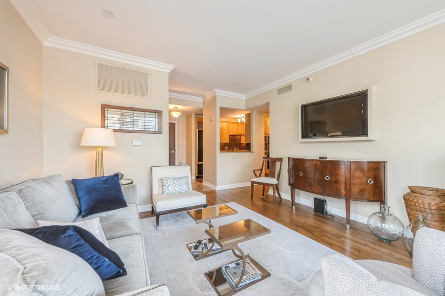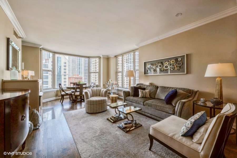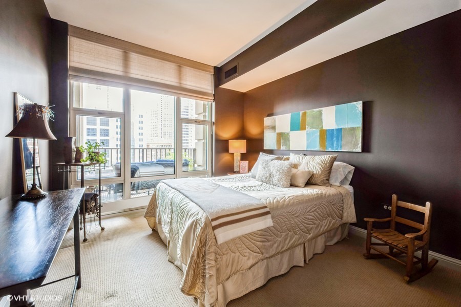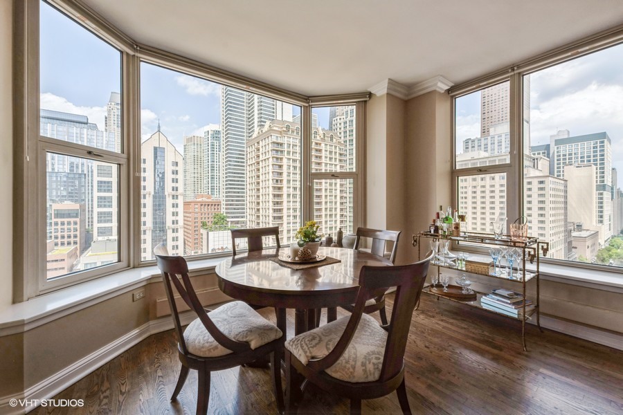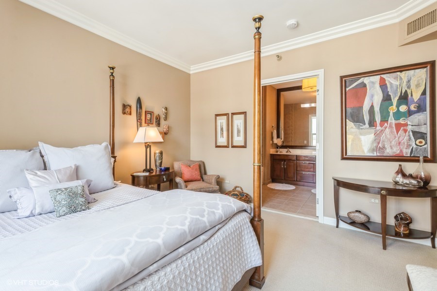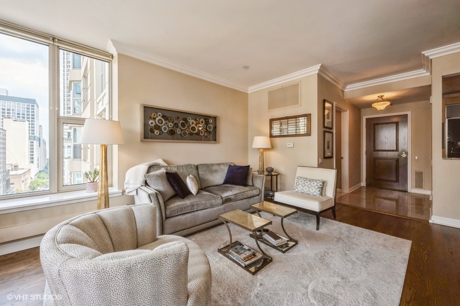 Welcome to your sanctuary in the sky-an elegant 2-bedroom, 2-bath residence designed for both lively entertaining and peaceful city escapes. Located at The Fordham, a full-service, luxury building, this split bedroom floor plan unit combines modern design with timeless comfort. Cooking is a pleasure in the open style kitchen, complete with granite counter tops, hardwood flooring, and a breakfast bar. Enjoy sweeping North & East views of Holy Name Cathedral, skyline, and lake from large windows that flood the space with natural light. Your private balcony, equipped with a gas line for outdoor grilling, is ideal for morning coffee or evening cocktails. The spacious living area features a cozy fireplace, perfect for relaxing after a long day. Generous walk-in closets and in-unit laundry add to everyday convenience. The Fordham has 24-hour security, doorperson service, dry cleaning, and a receiving room. Amenities to make your life here more enjoyable include: an outdoor garden and sundeck, wine cellar with private storage and lounge, a humidor room, indoor pool, fitness center, private theater, spa room, hospitality room, dog run, bike room and more. Shop designer boutiques along the Magnificent Mile, dine at four-star restaurants, sample the exciting nightlife and take in the cultural venues you only find in a world-class city. A secure, deeded parking space, in the attached garage, IS INCLUDED in the price. Whether you’re hosting guests or enjoying a quiet moment above the city, this unit offers the perfect balance of vibrancy and tranquility.